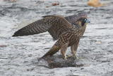 Just as I arrived this morning, I saw a bird on the beach in the distance. It didn't look quite like a gull, and as it turned out, it was one of the juveniles just hanging out. She would fly a hundred feet or so whenever a jogger got too close, but otherwise didn't seem to mind the people. At one point she flew up within maybe 25 feet of me.