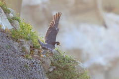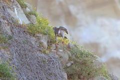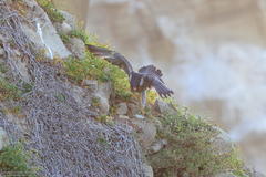 An adult was in the star pine when I arrived - not sure which one. The female flew in later and preened on the side of a cliff before flying off again.