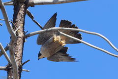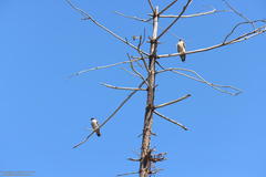 Both adults were in the star pine for a while, then both left. A little while later, the female went back to the tree.