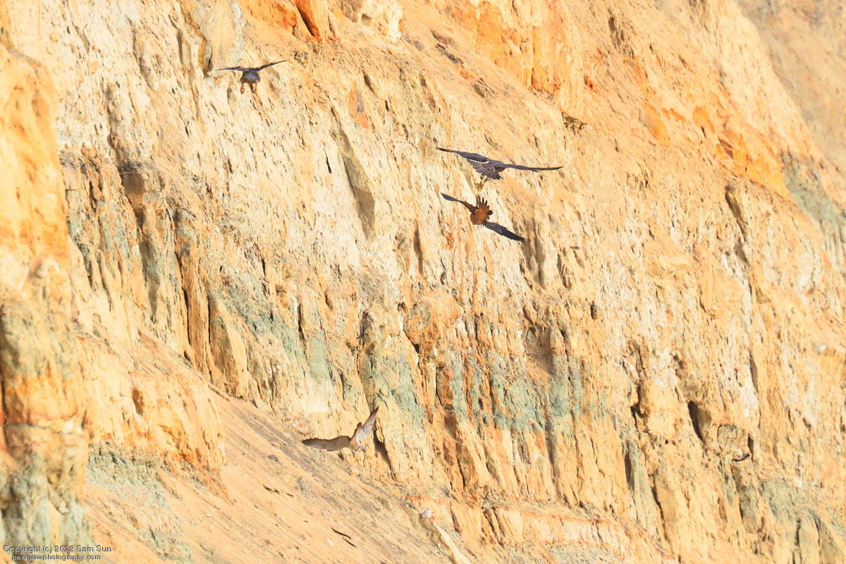 They drop the food and Dad dives for it (it's just above the bottom-center edge of the frame)