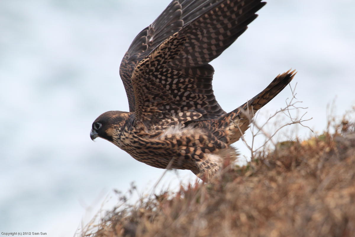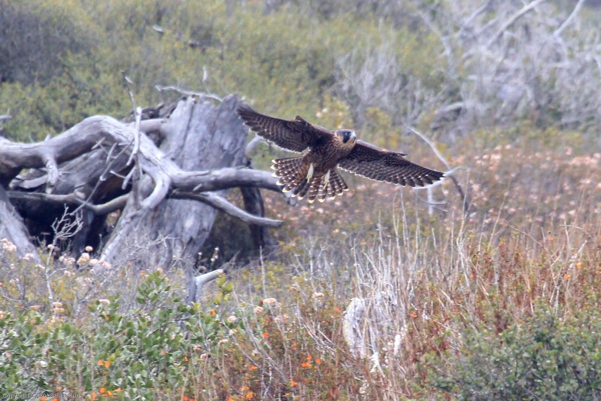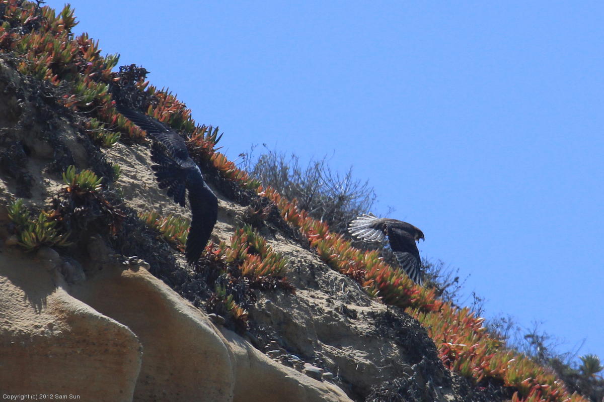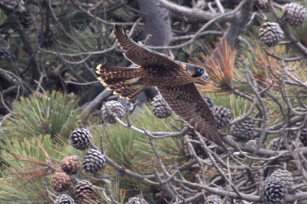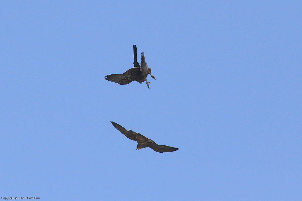 The juvenile peregrines are on the wing now.