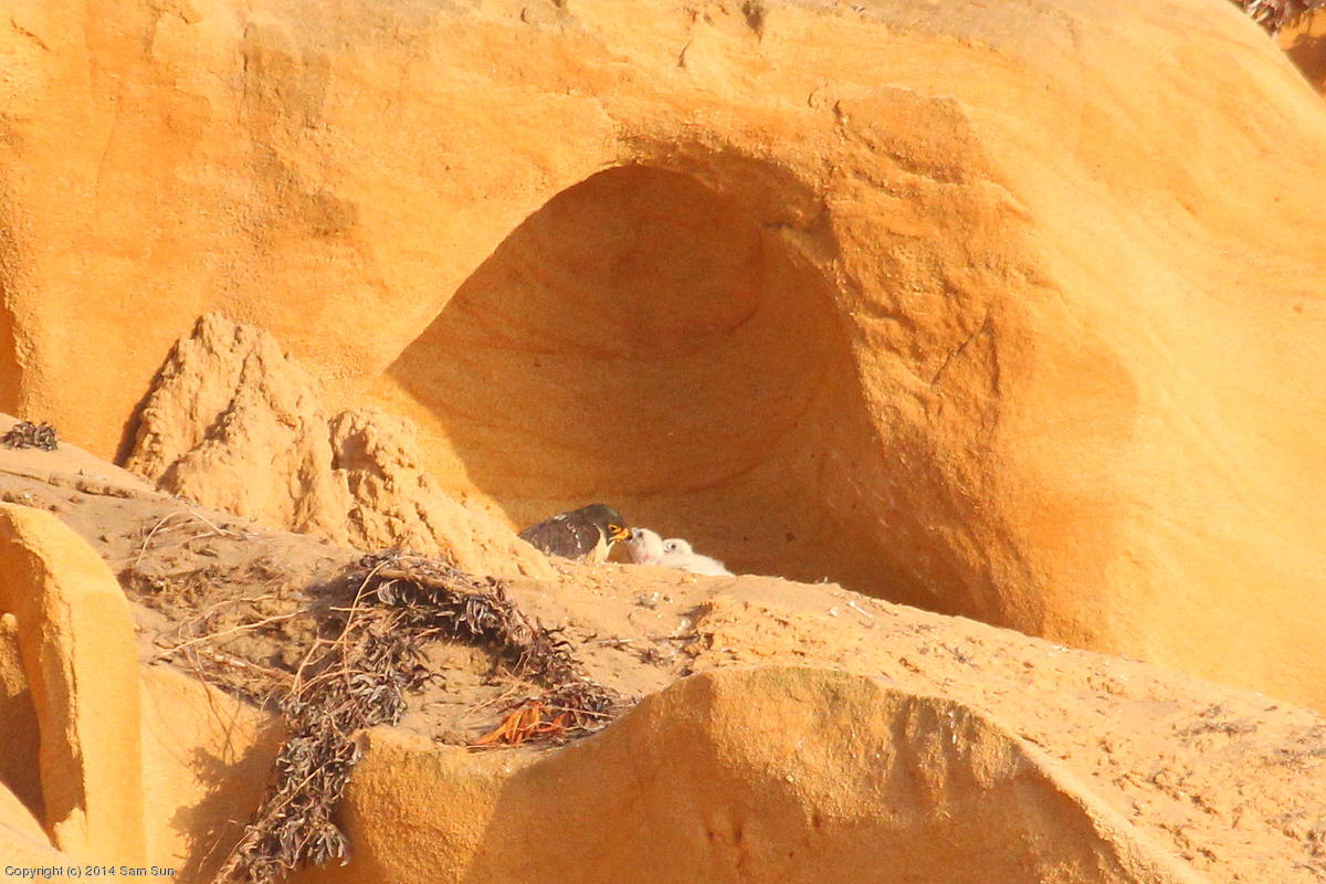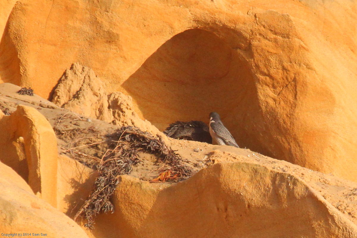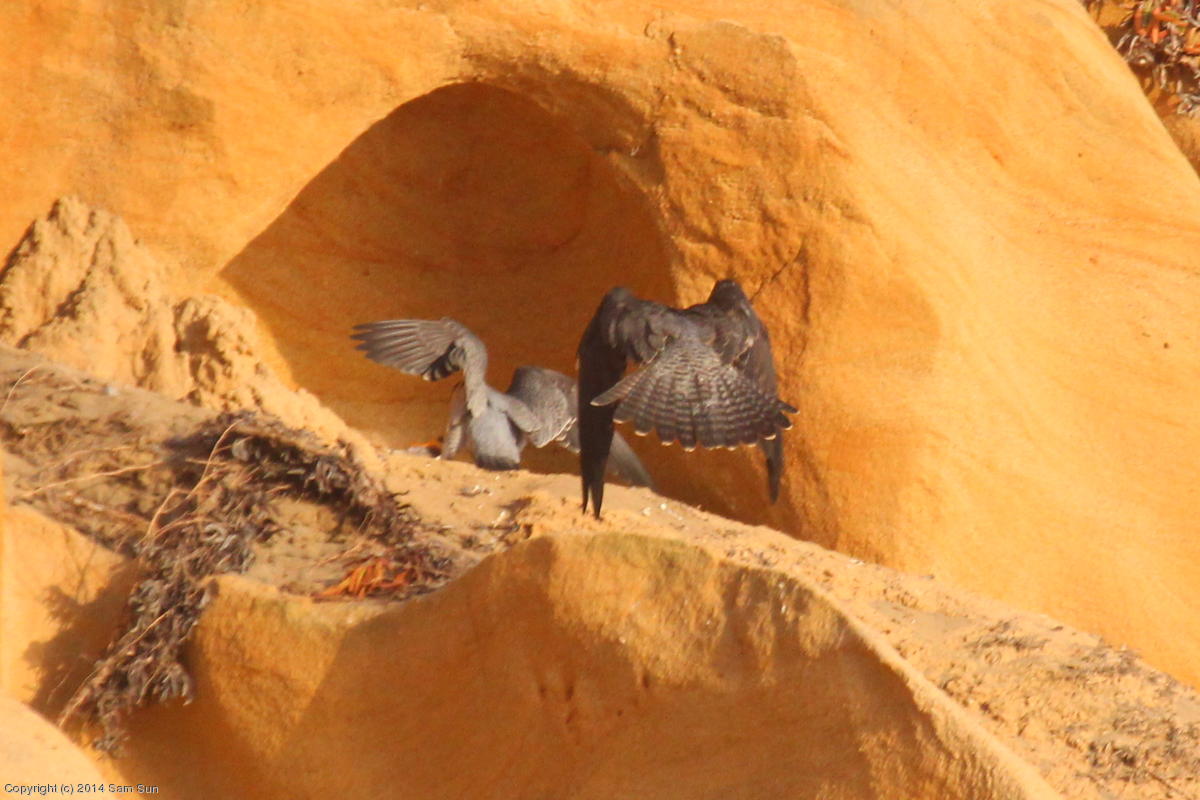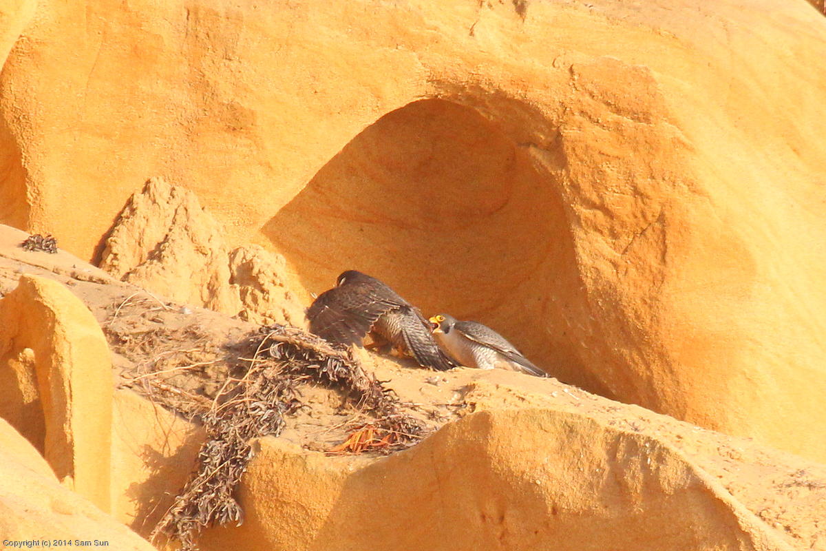 Mom is squawking at another falcon. (132k)