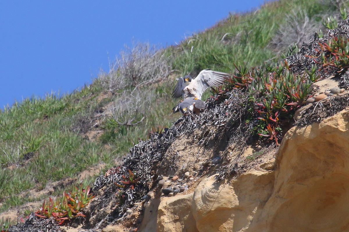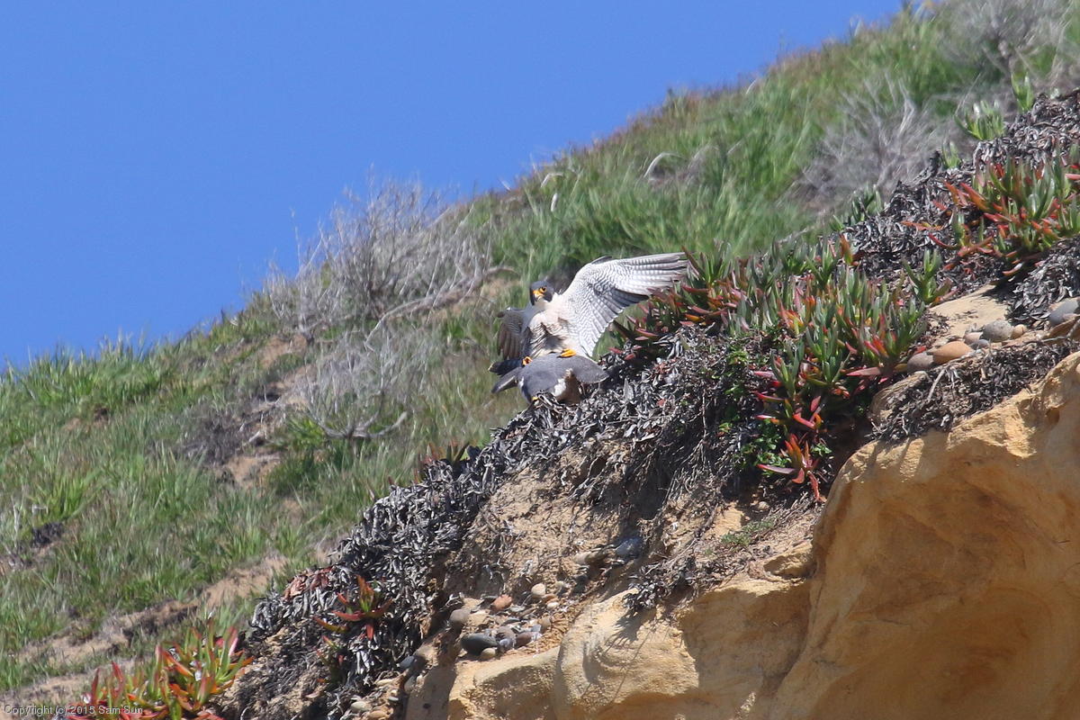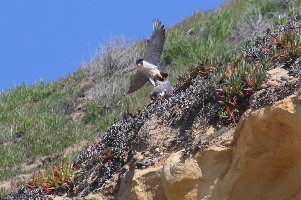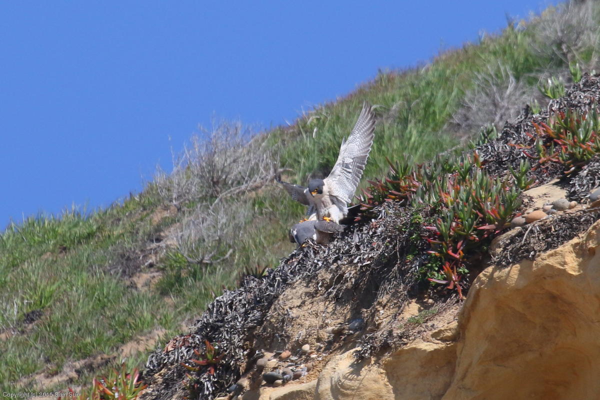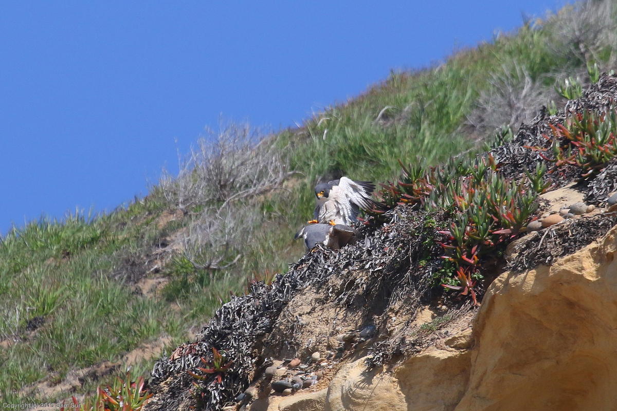 I was a peregrine pornographer again today. The mating sequence ran... 9 seconds.