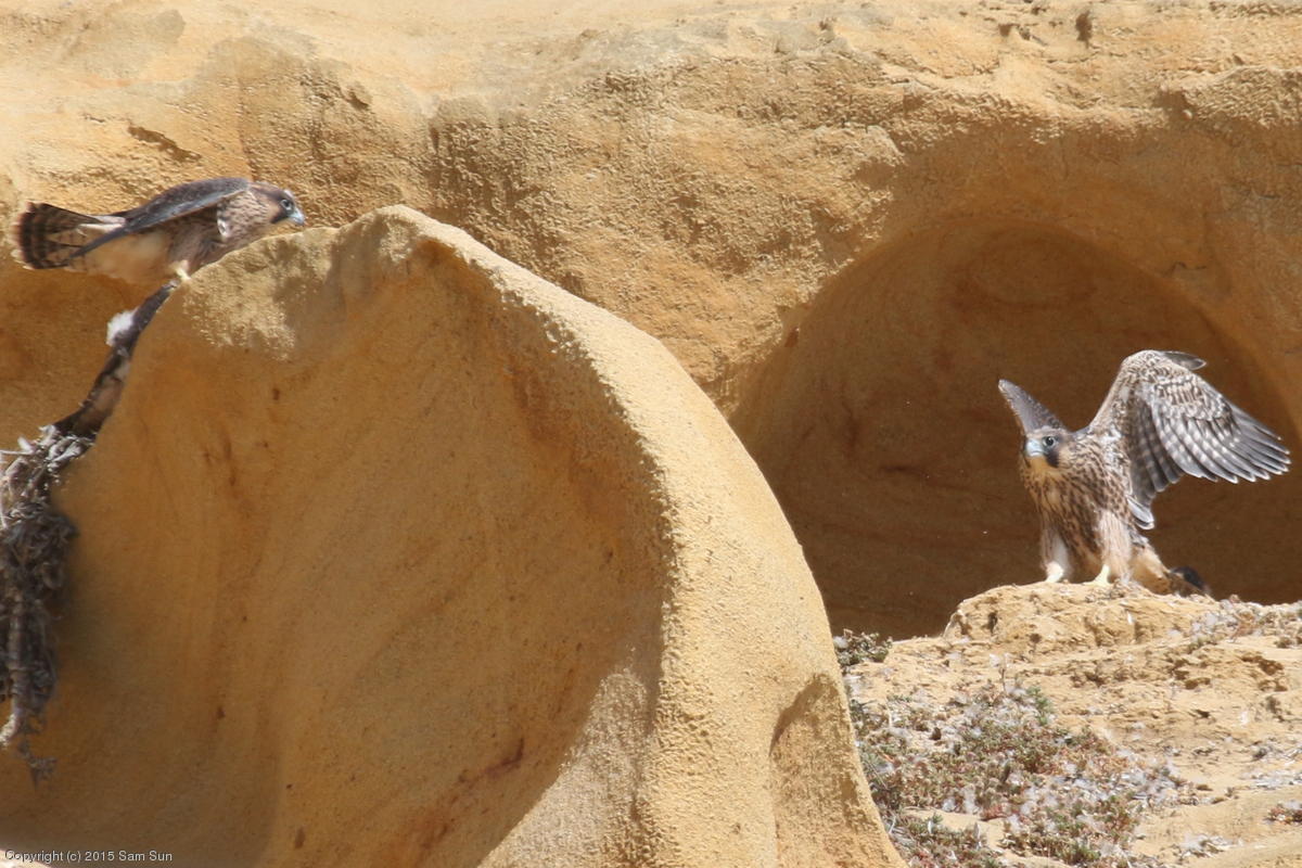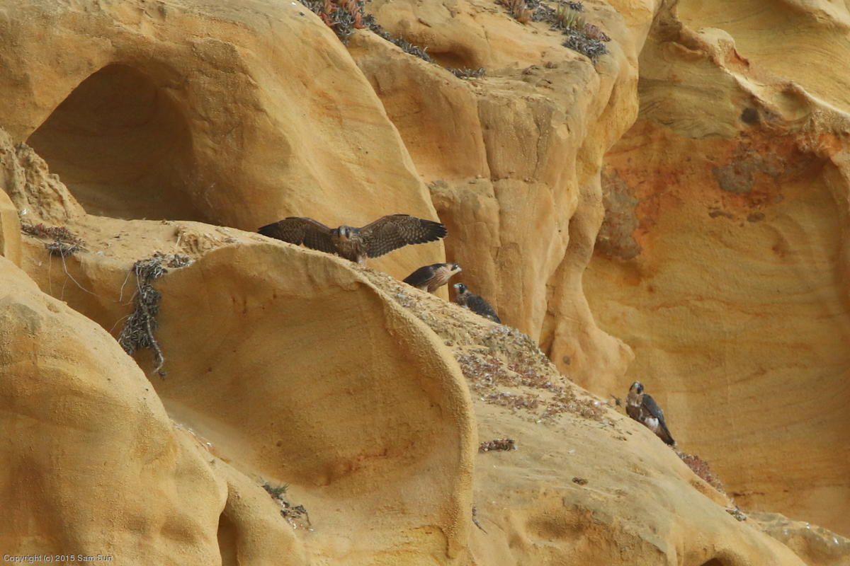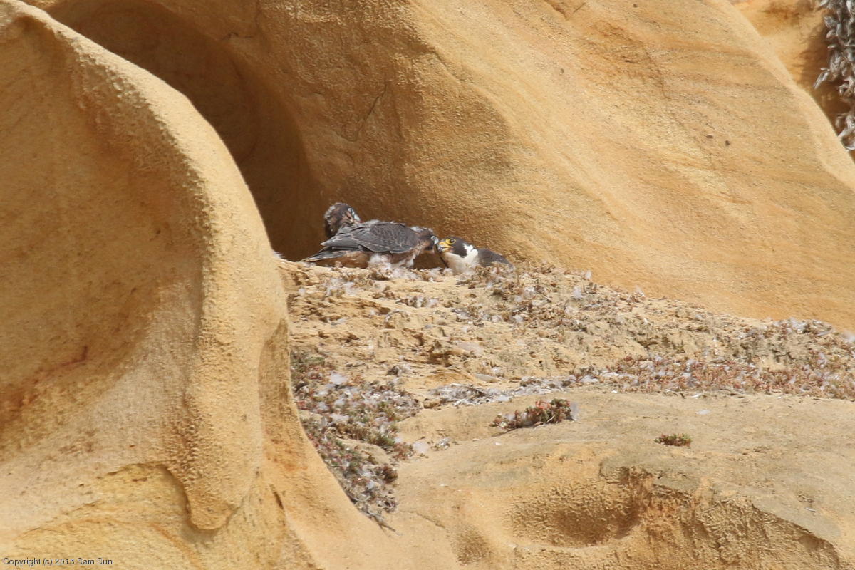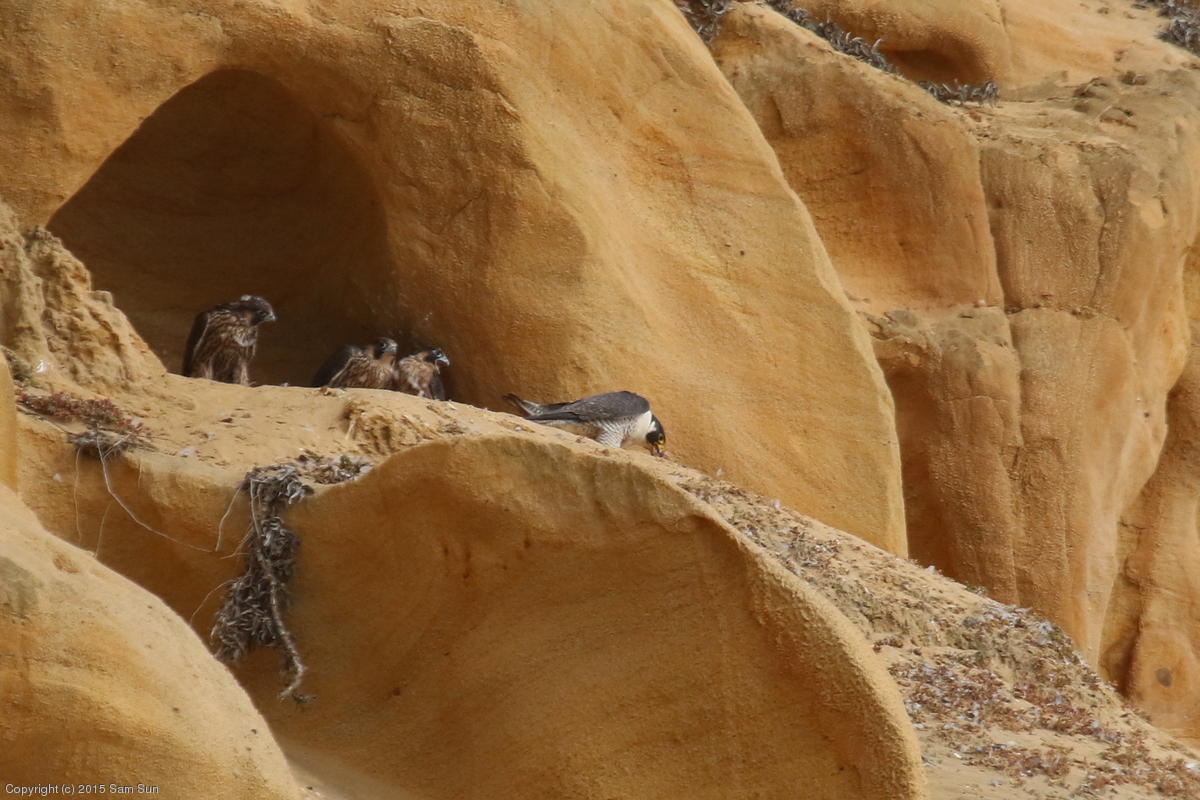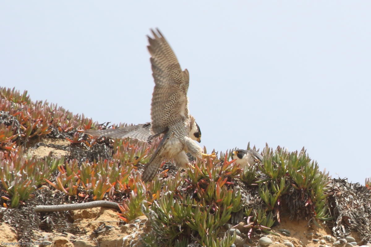 (4:10p) A sea lion came ashore and distracted me. There was some falcon activity during this time.