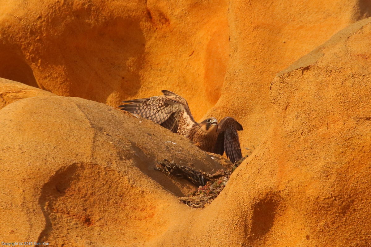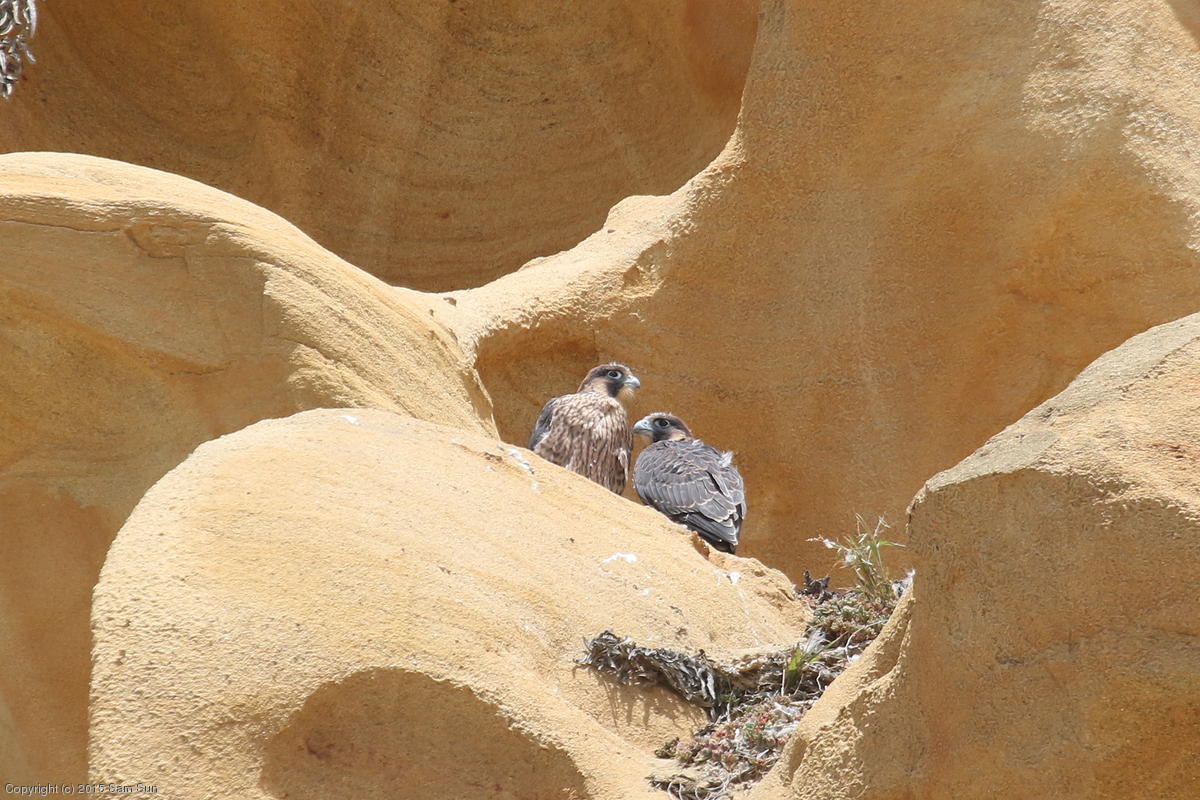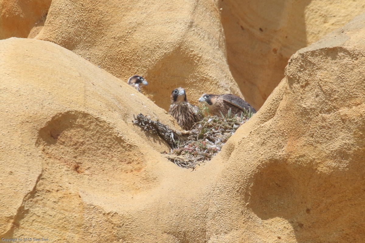 Spent all afternoon waiting for something interesting to happen. One of the juveniles took a few short-hop flights from one ledge to another. They were not fed all afternoon, until (mom?) brought some dinner in around 7:20pm