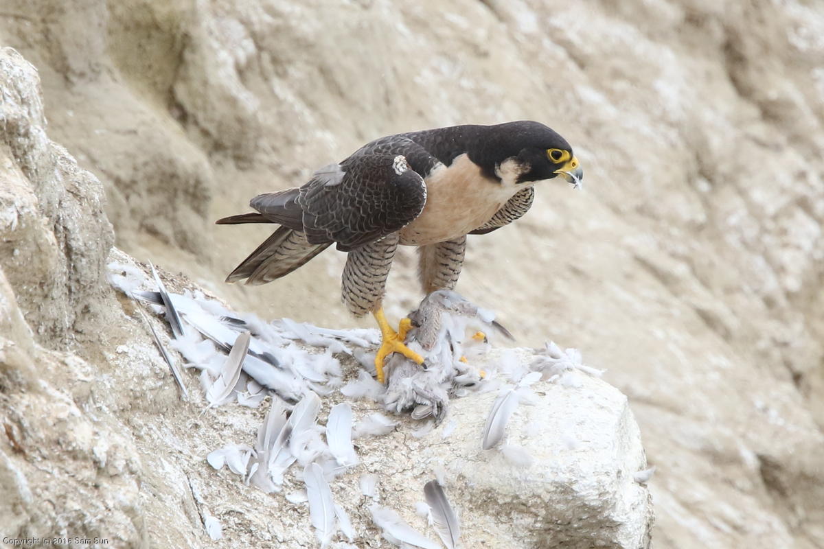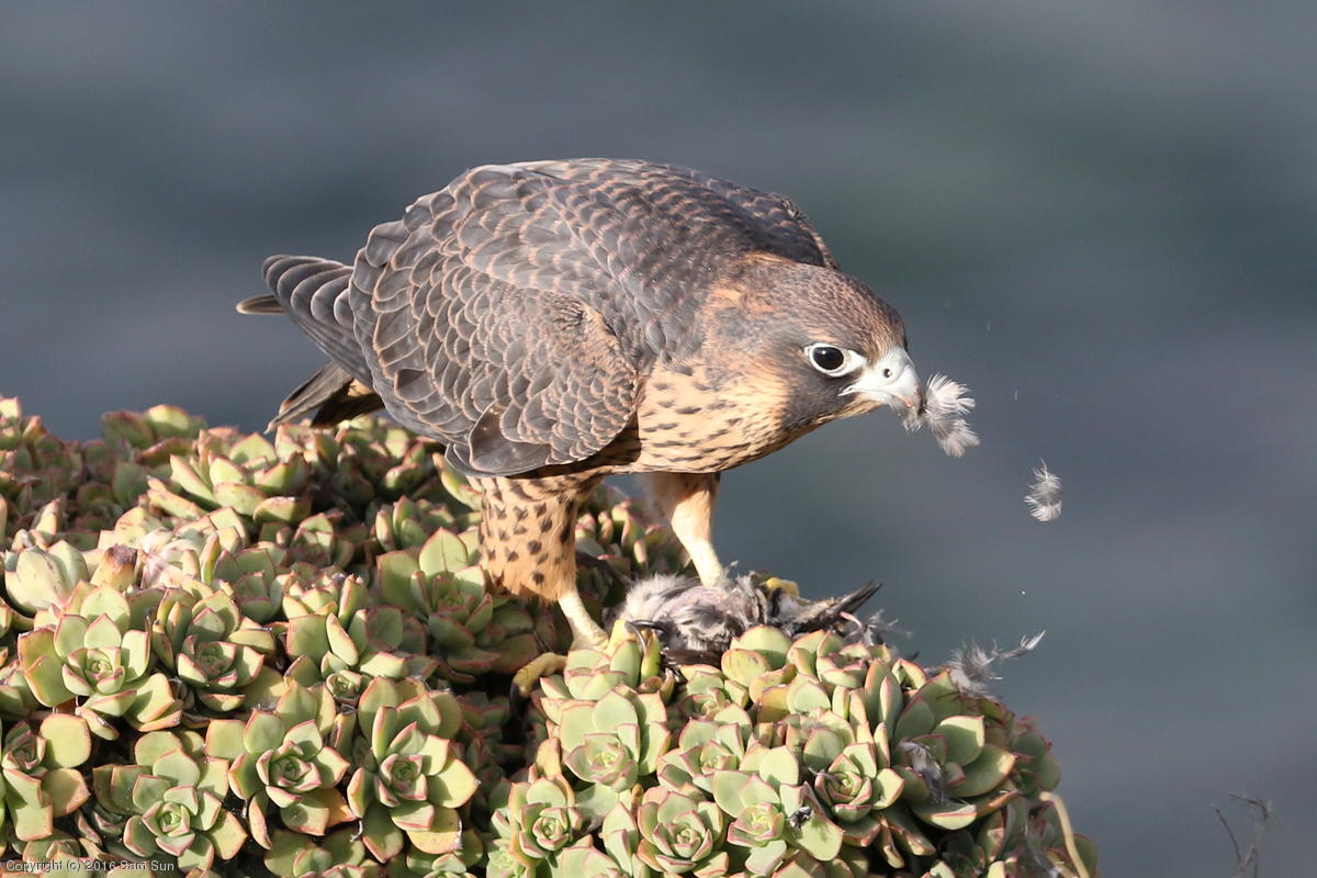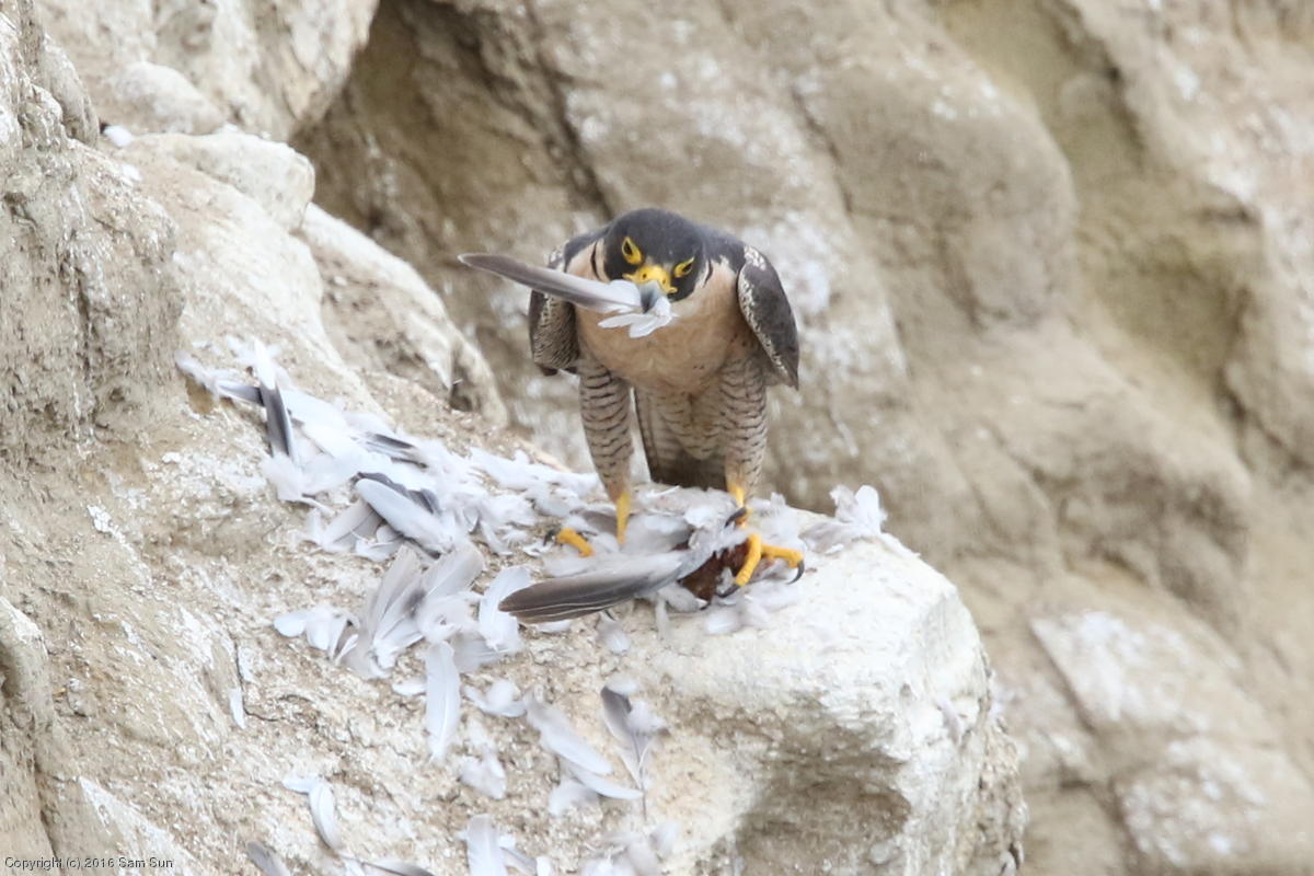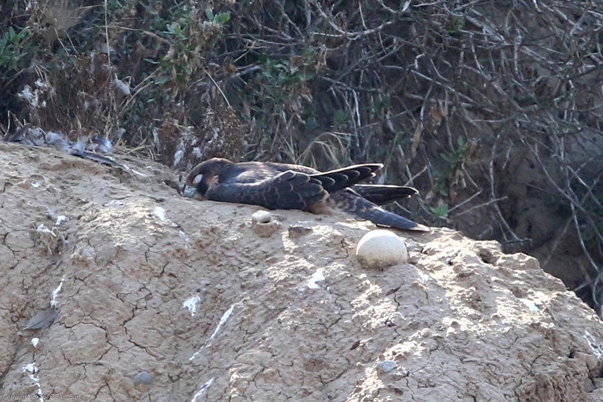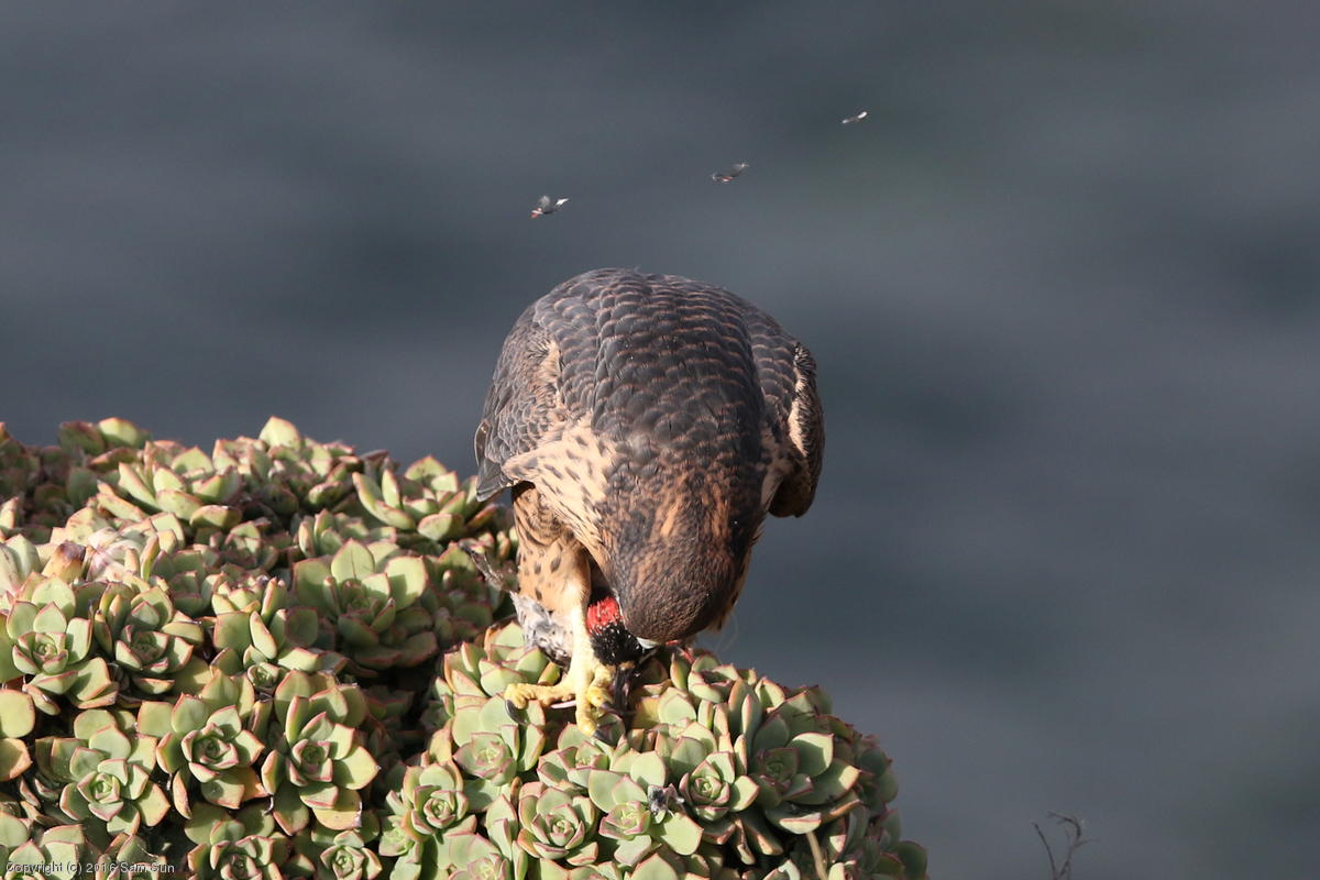 I was back in the afternoon, and got to see a juvenile plucking a bird nearby.