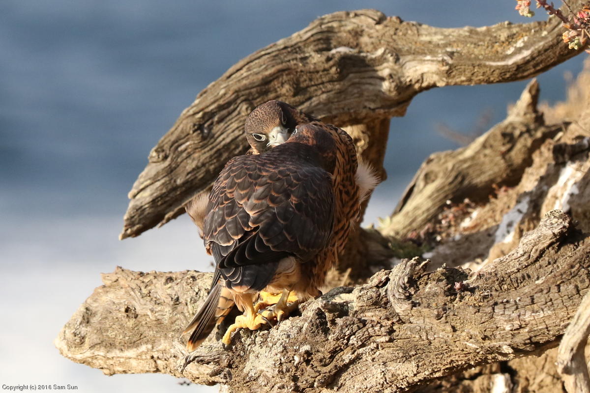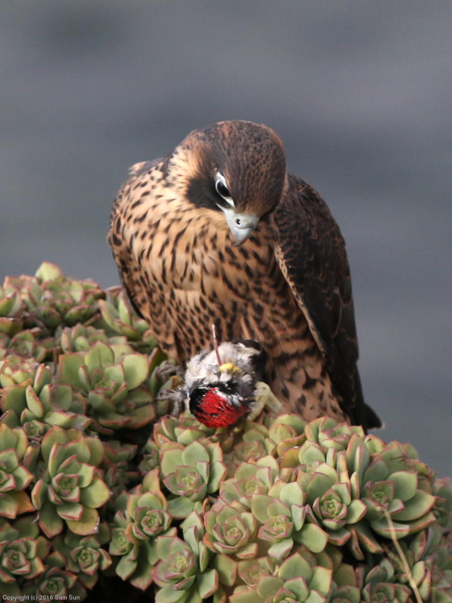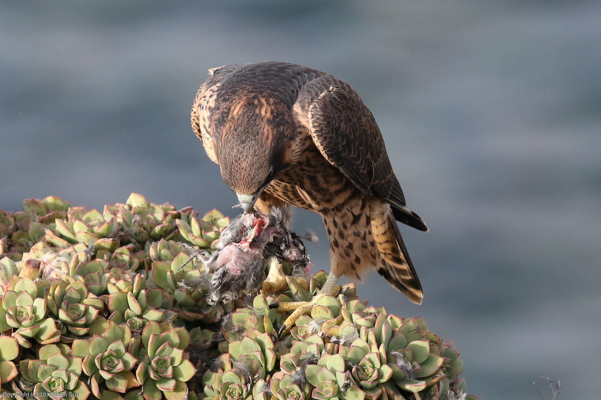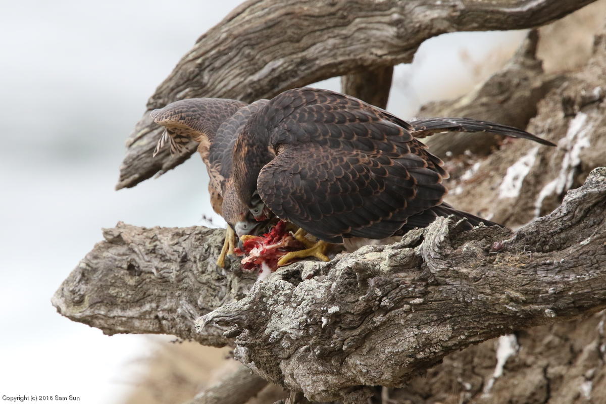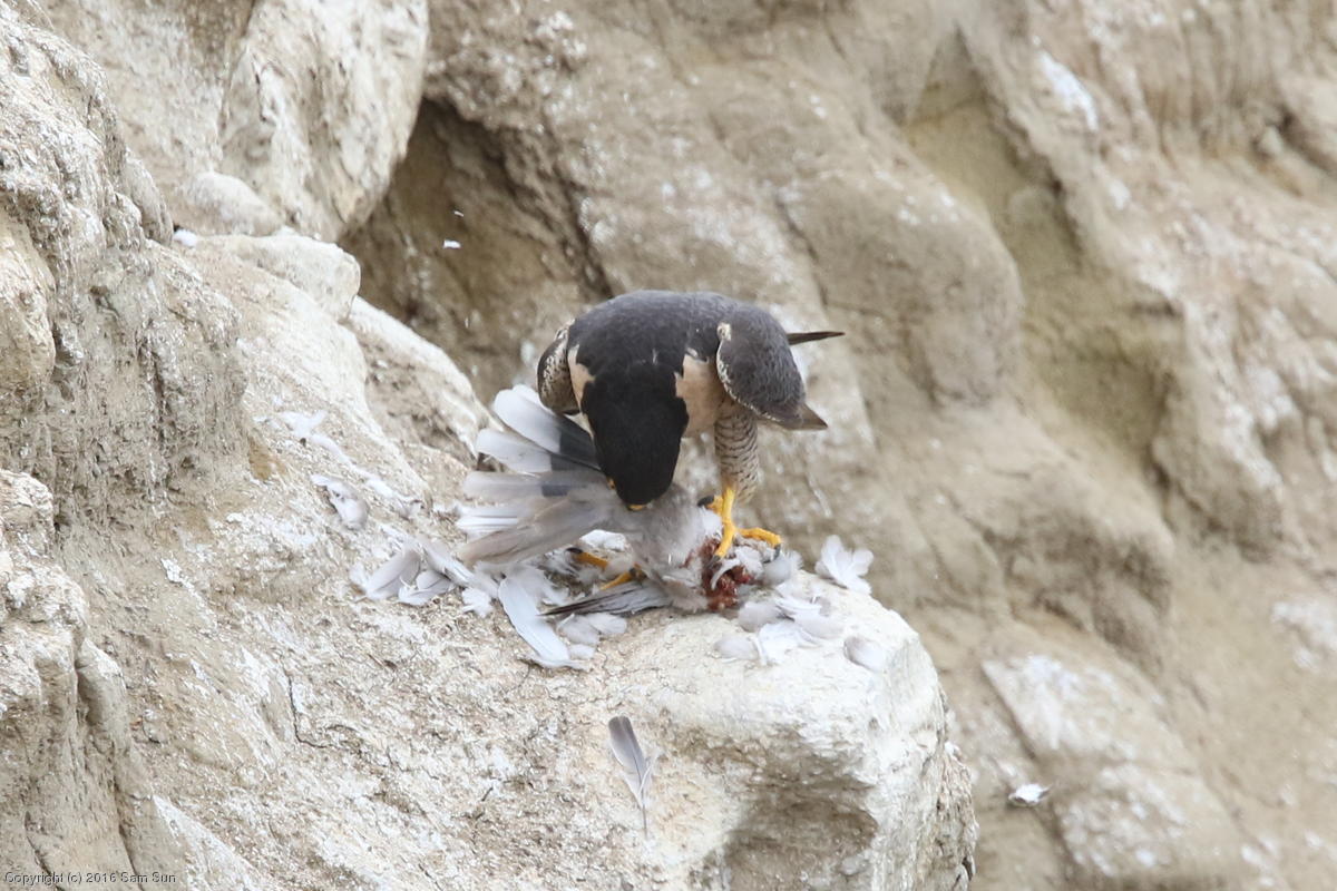 I was back in the afternoon, and got to see a juvenile plucking a bird nearby.