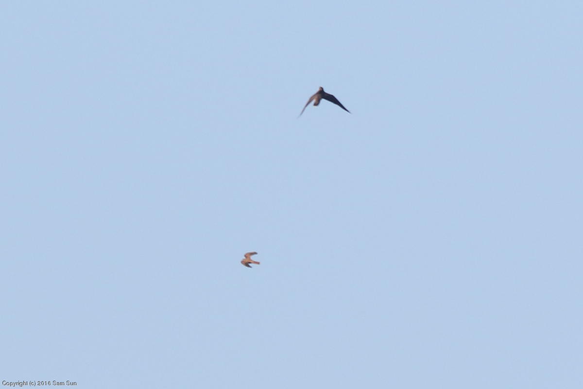 (7:53a) A kestrel gets chased by a falcon