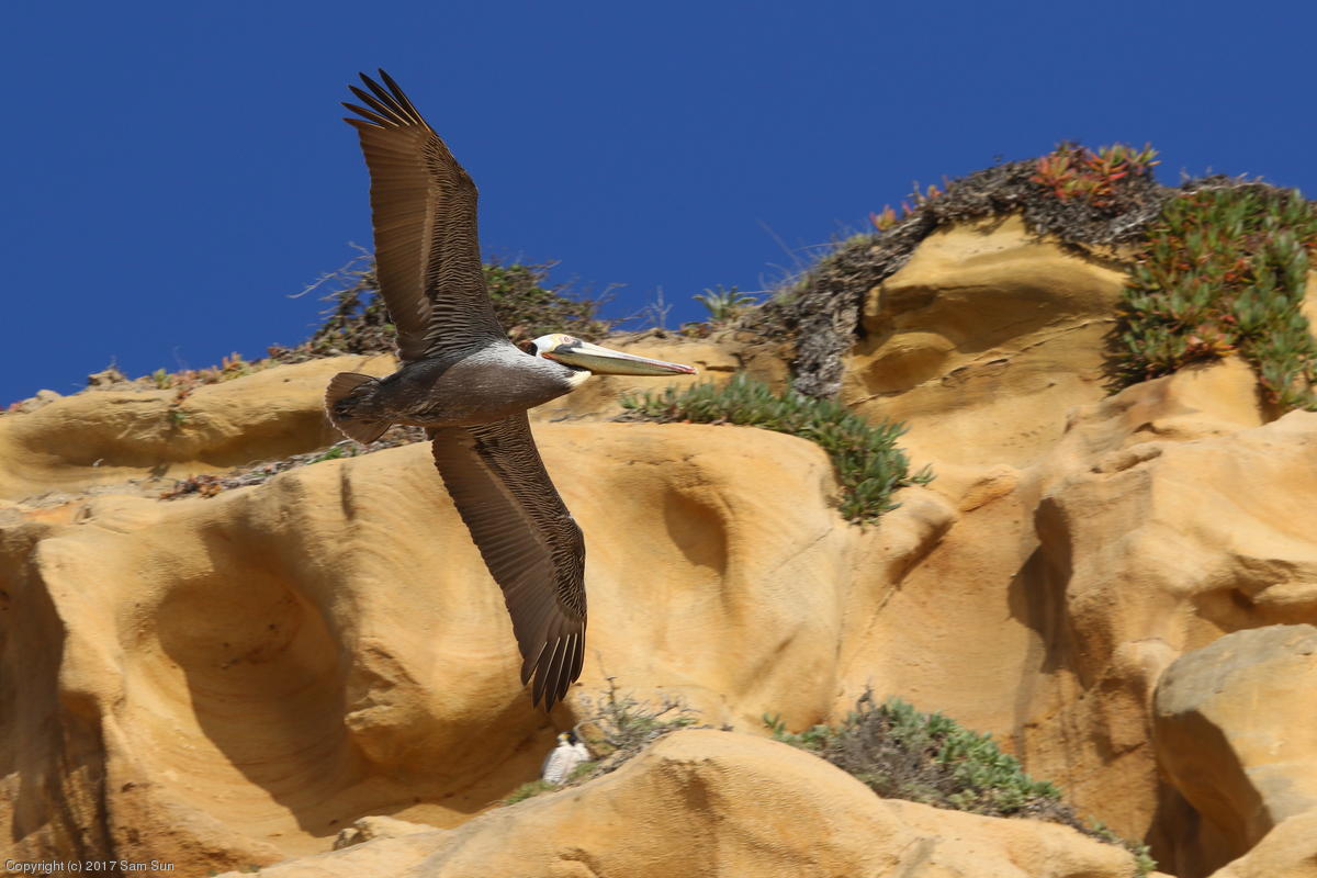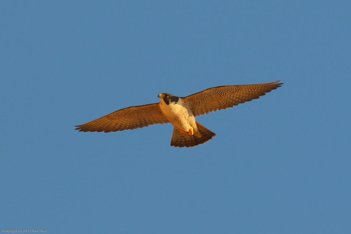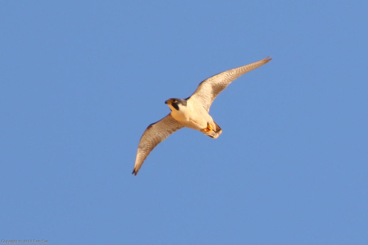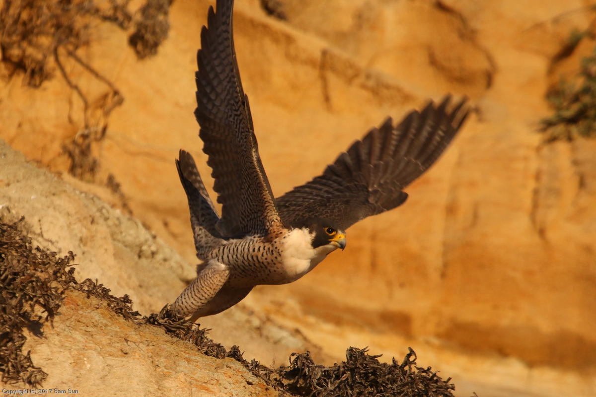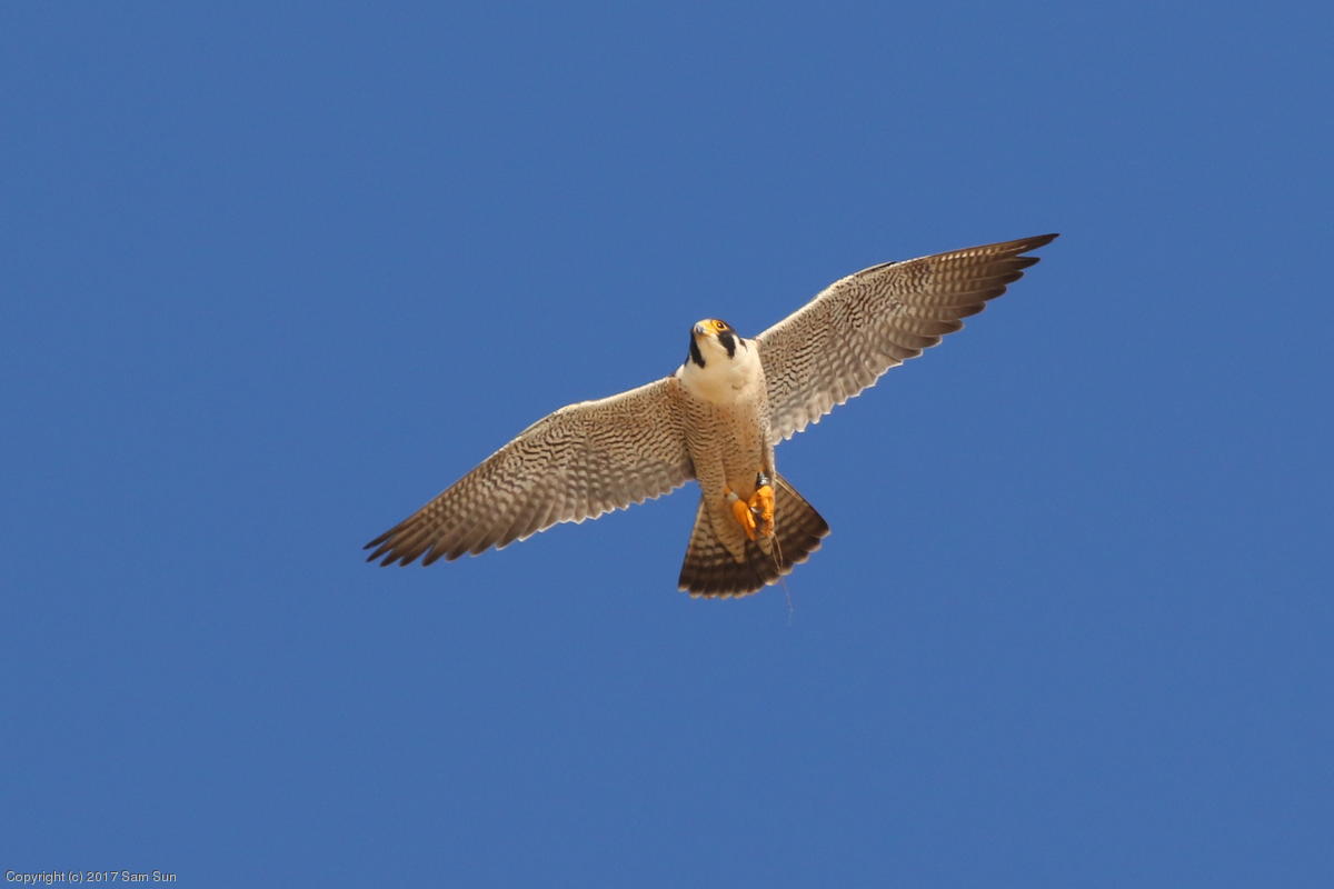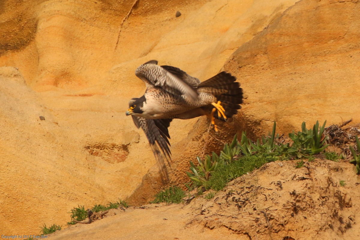 The female was perched near the nest all afternoon. The male made one flyby, with the female calling to him, but he went off towards the lagoon and didn't return before sunset. Herb Knufken reported the male's band number in September - it's a 3 year old from Lassen County.