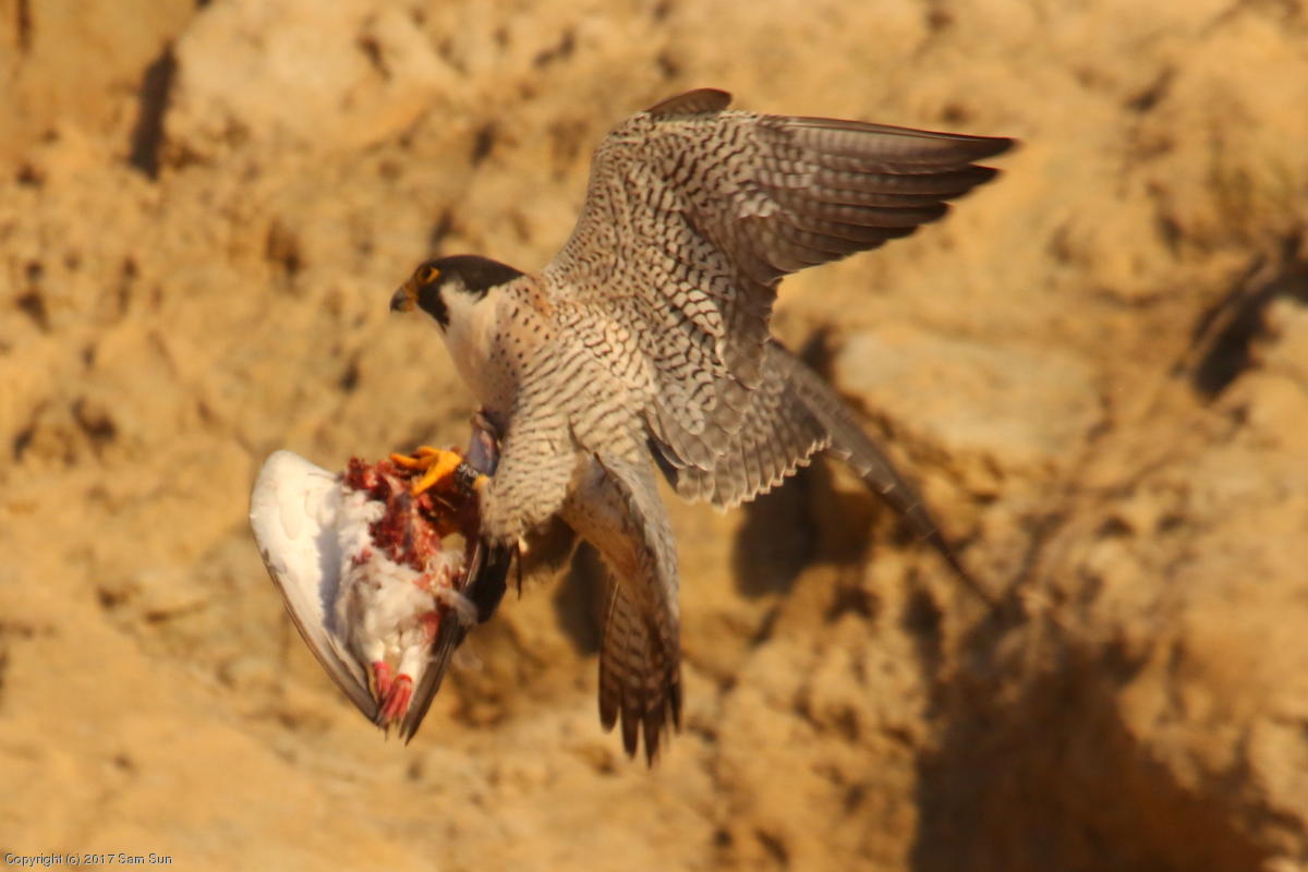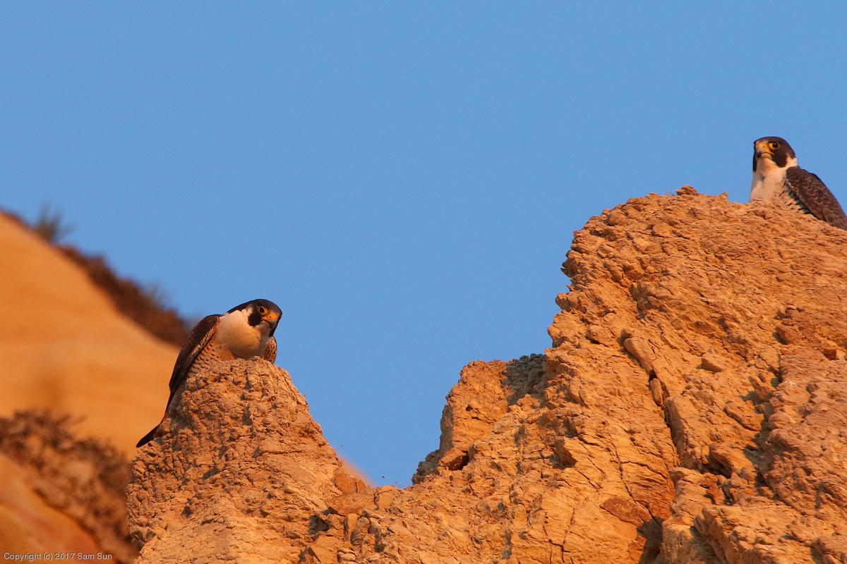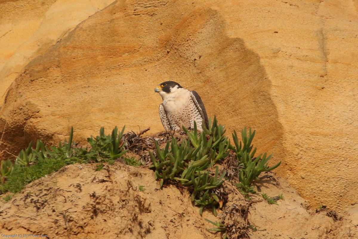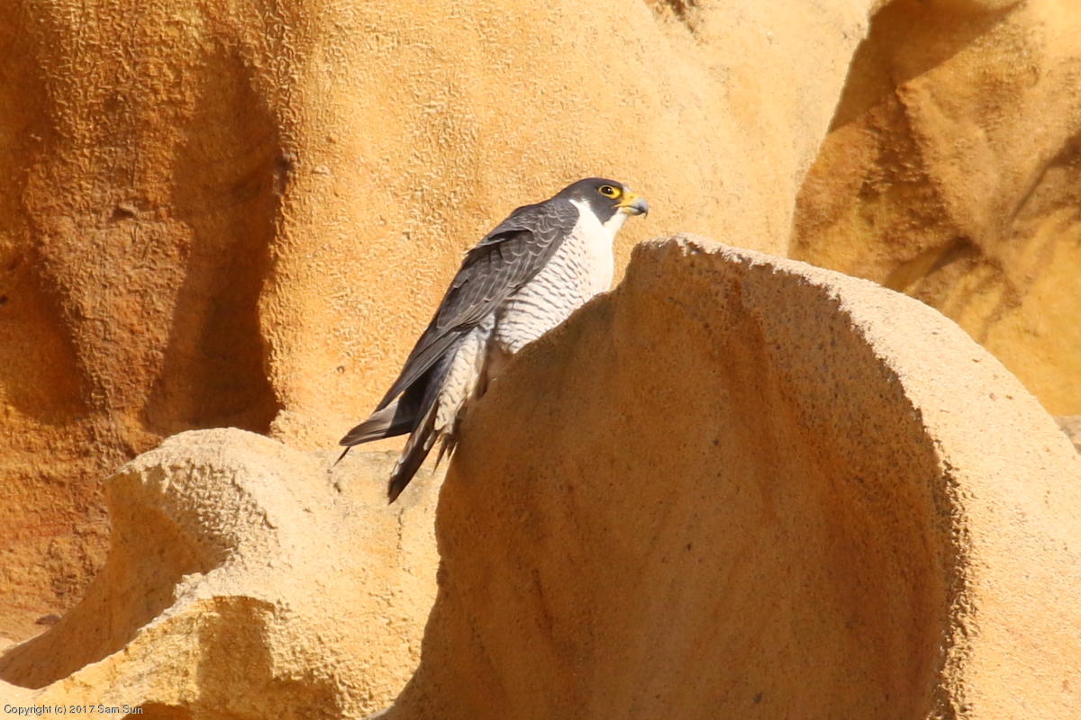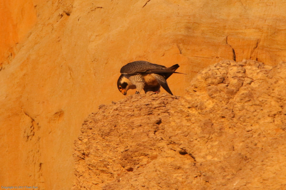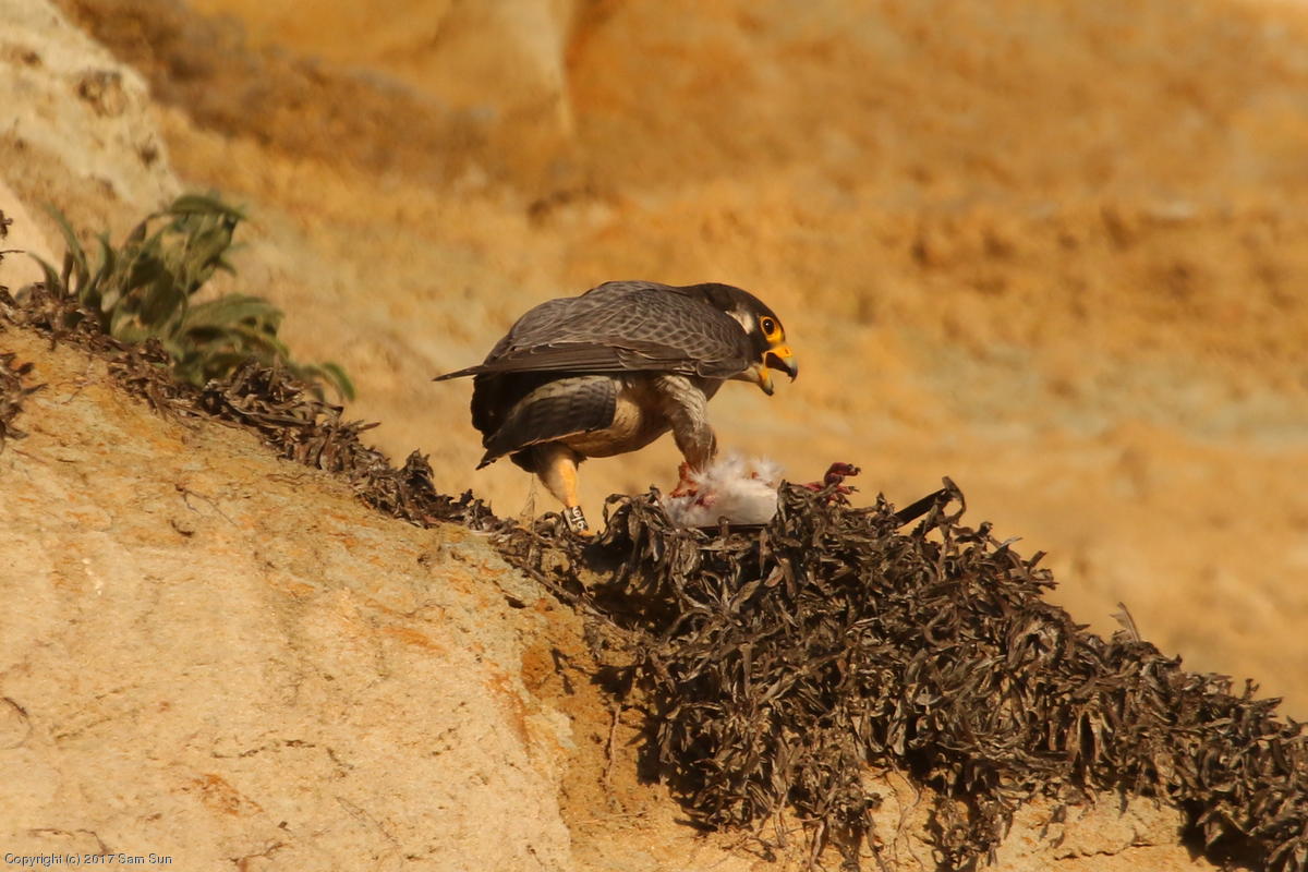 For a while, it seemed like nothing was going to happen again today. After sitting around for an hour, the female flew in the nest cave and called to the male, but he ignored her. They finally mated half an hour later, after which the male retrieved a pigeon and refused to share it.