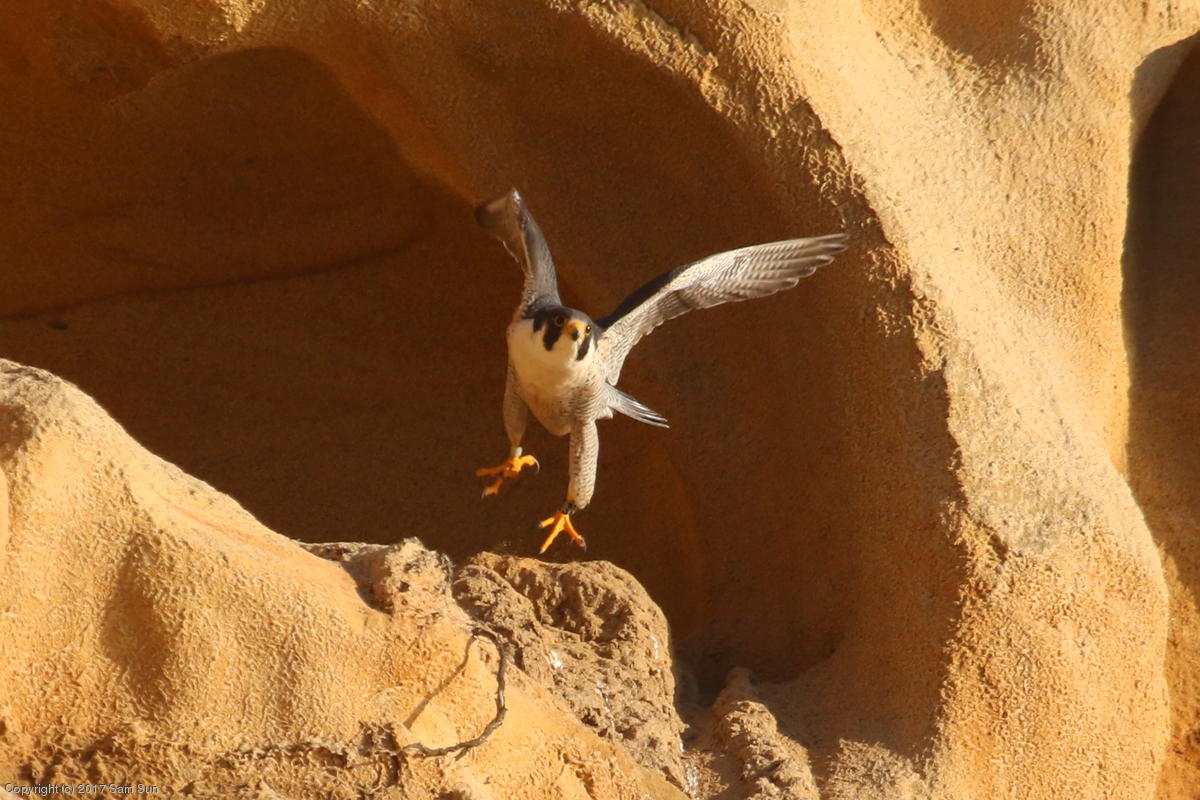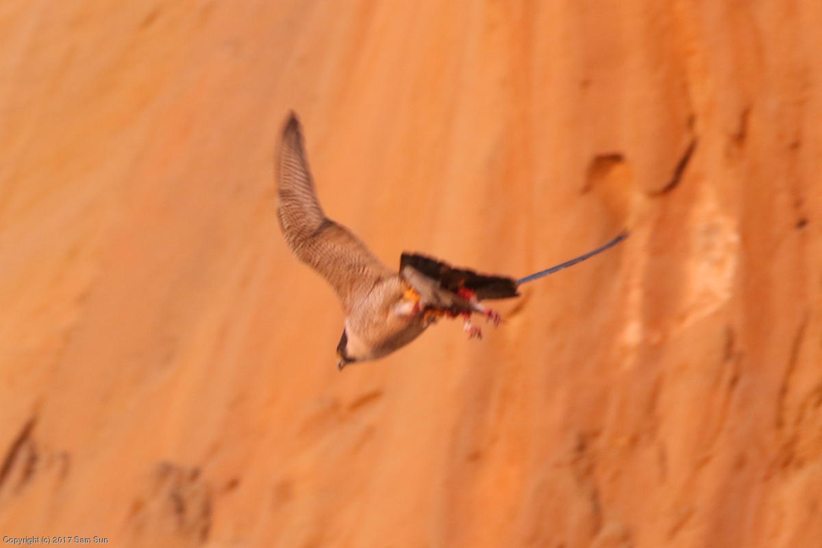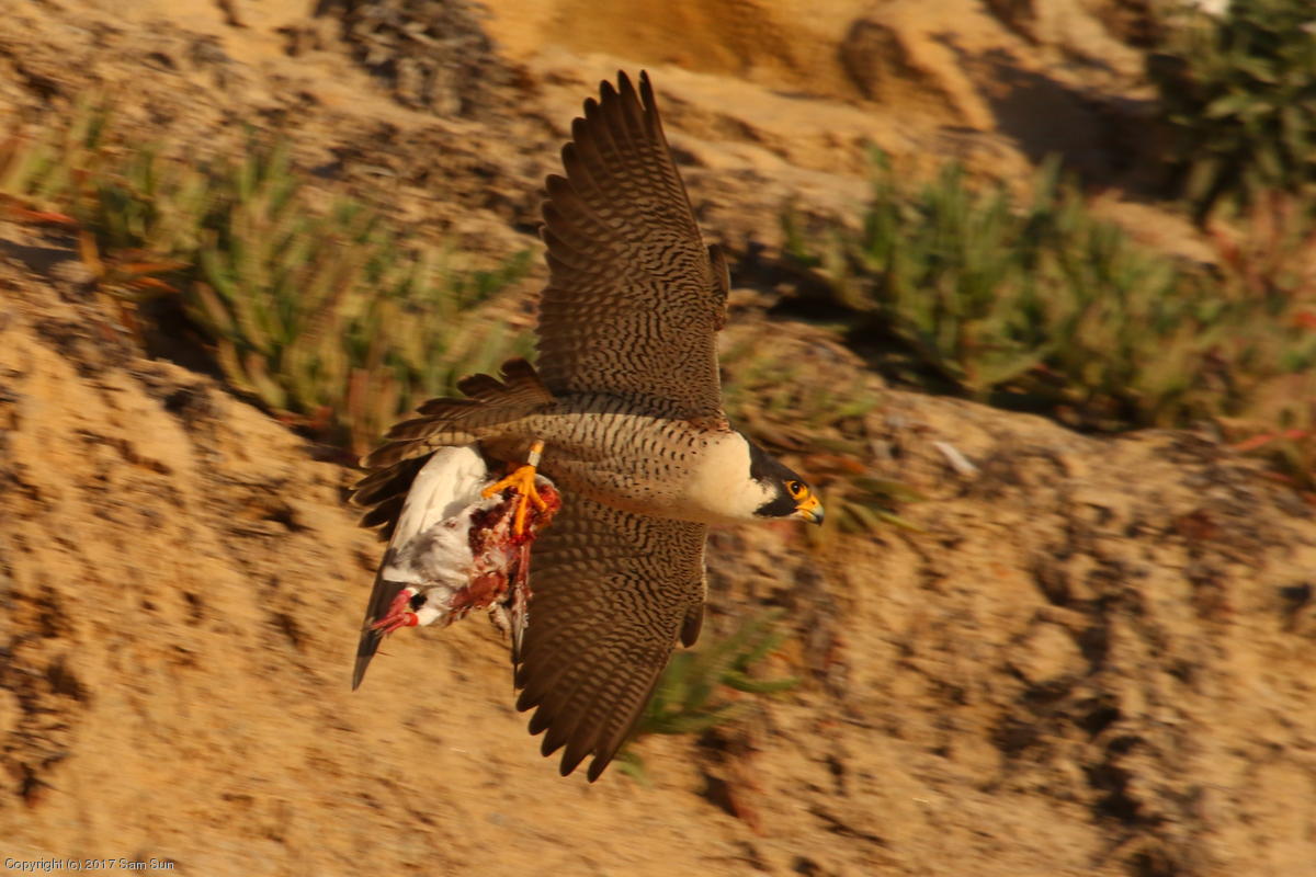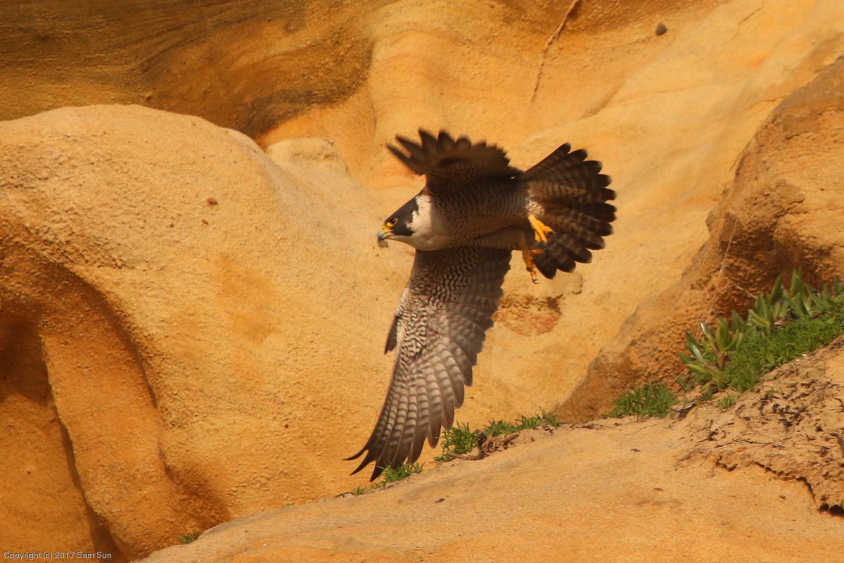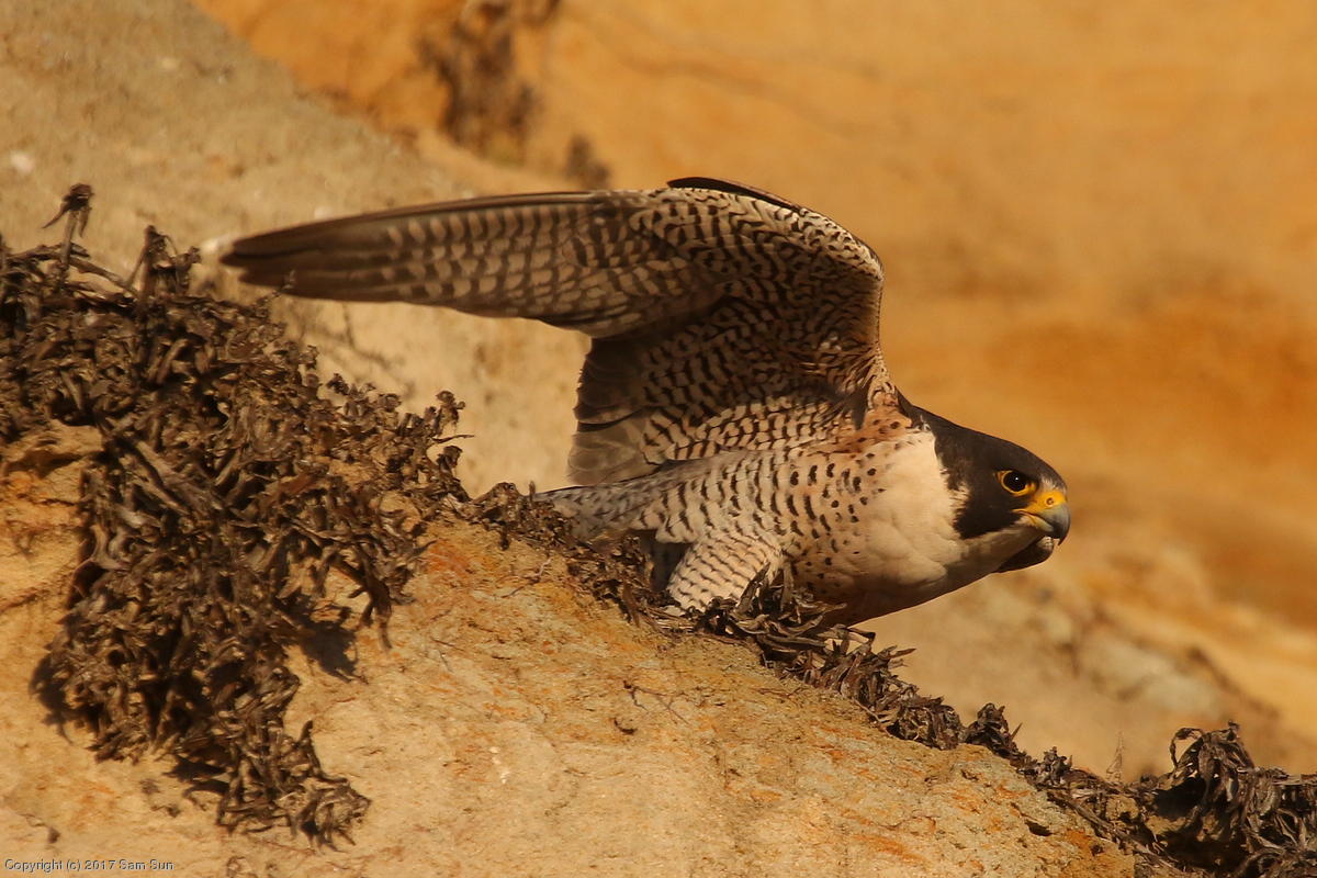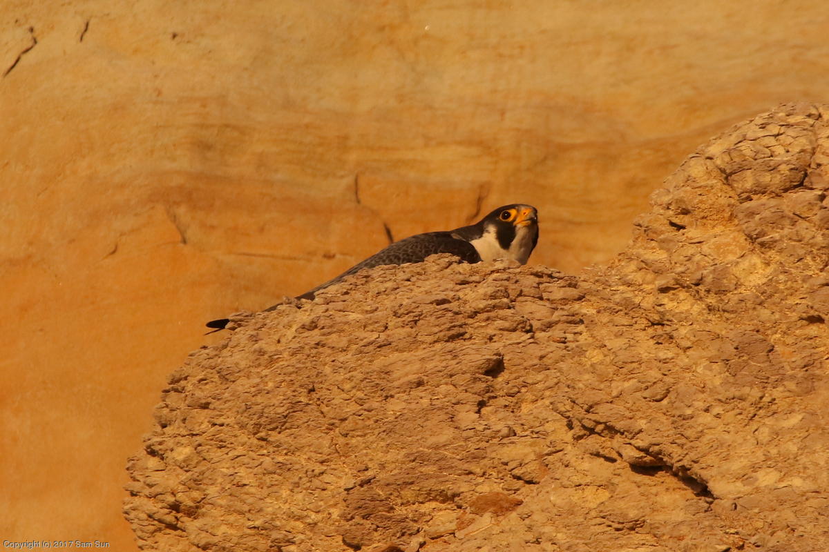 For a while, it seemed like nothing was going to happen again today. After sitting around for an hour, the female flew in the nest cave and called to the male, but he ignored her. They finally mated half an hour later, after which the male retrieved a pigeon and refused to share it.