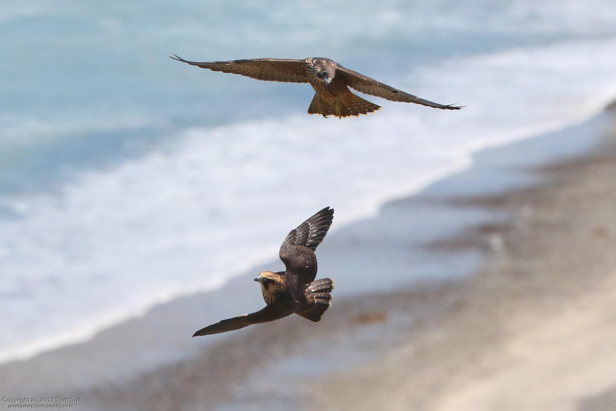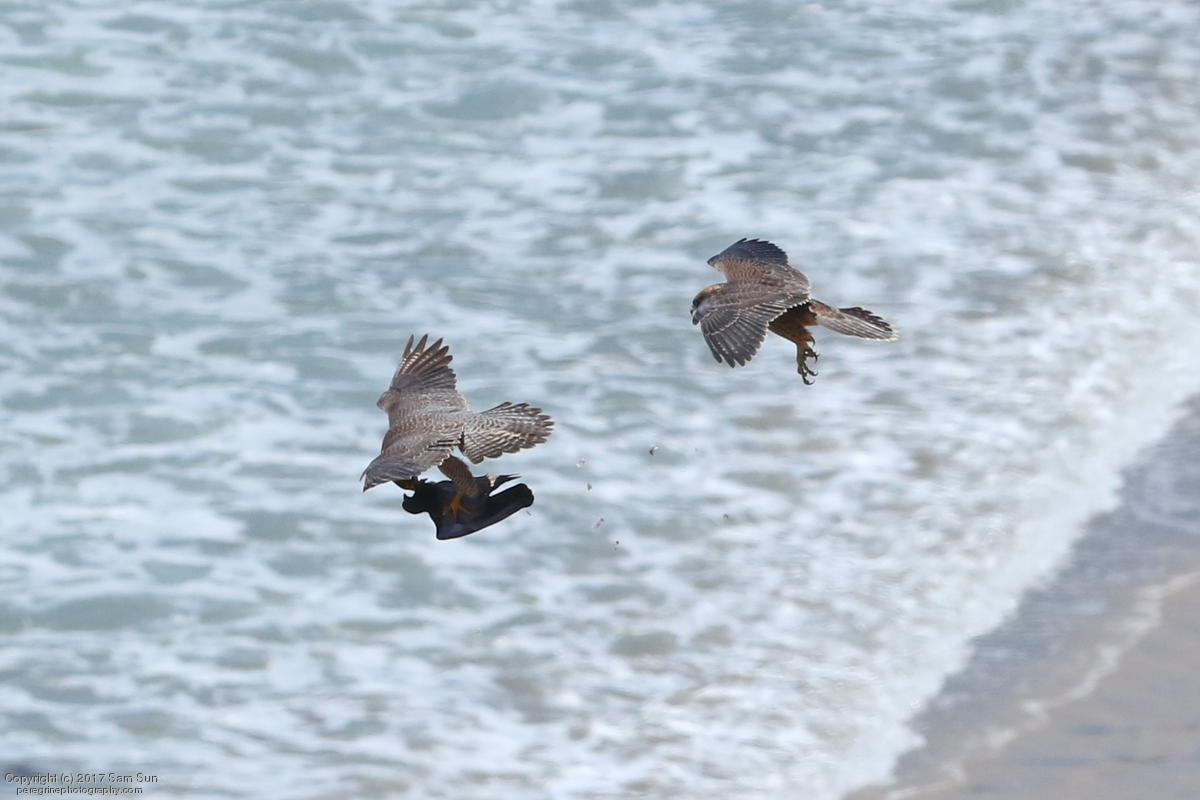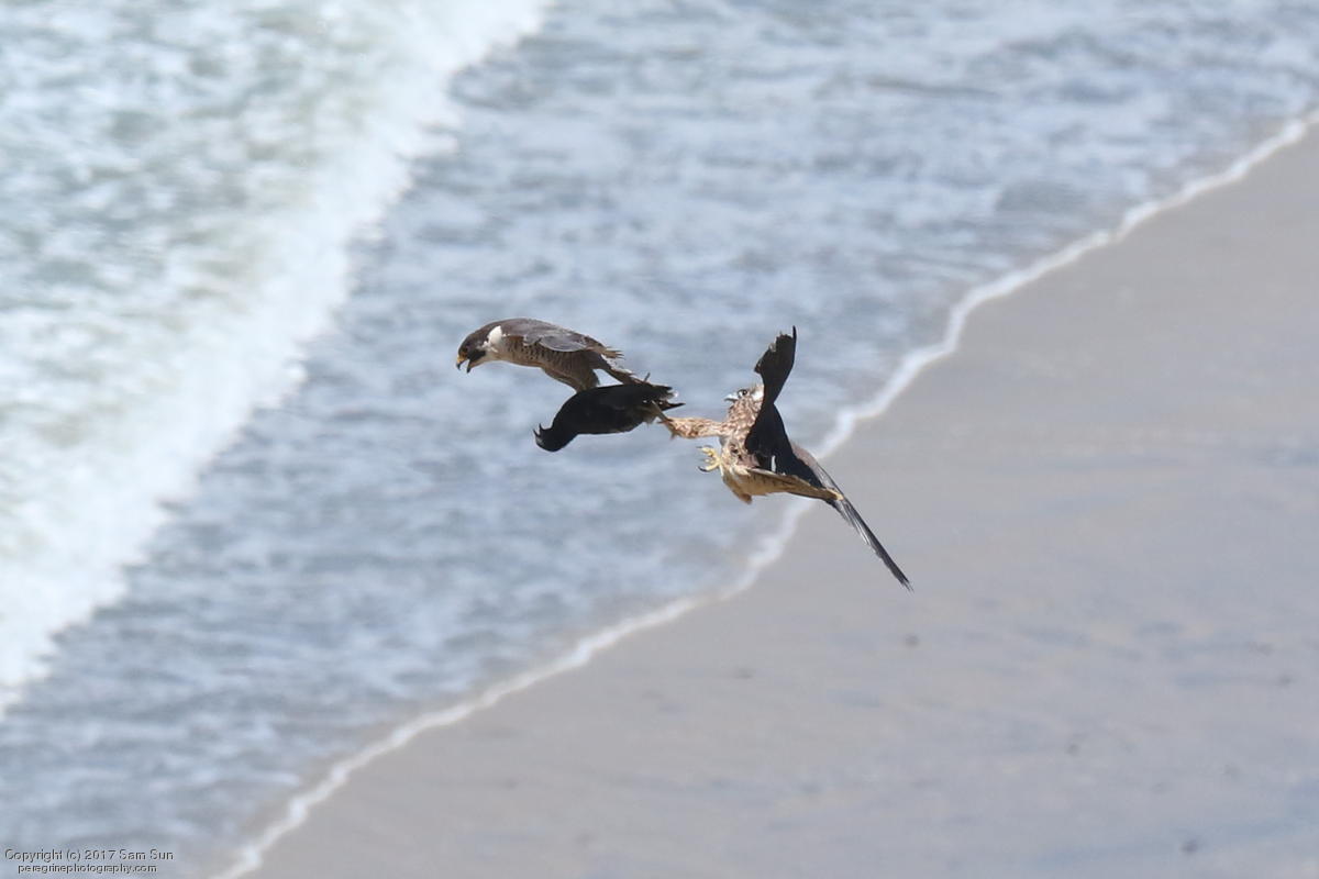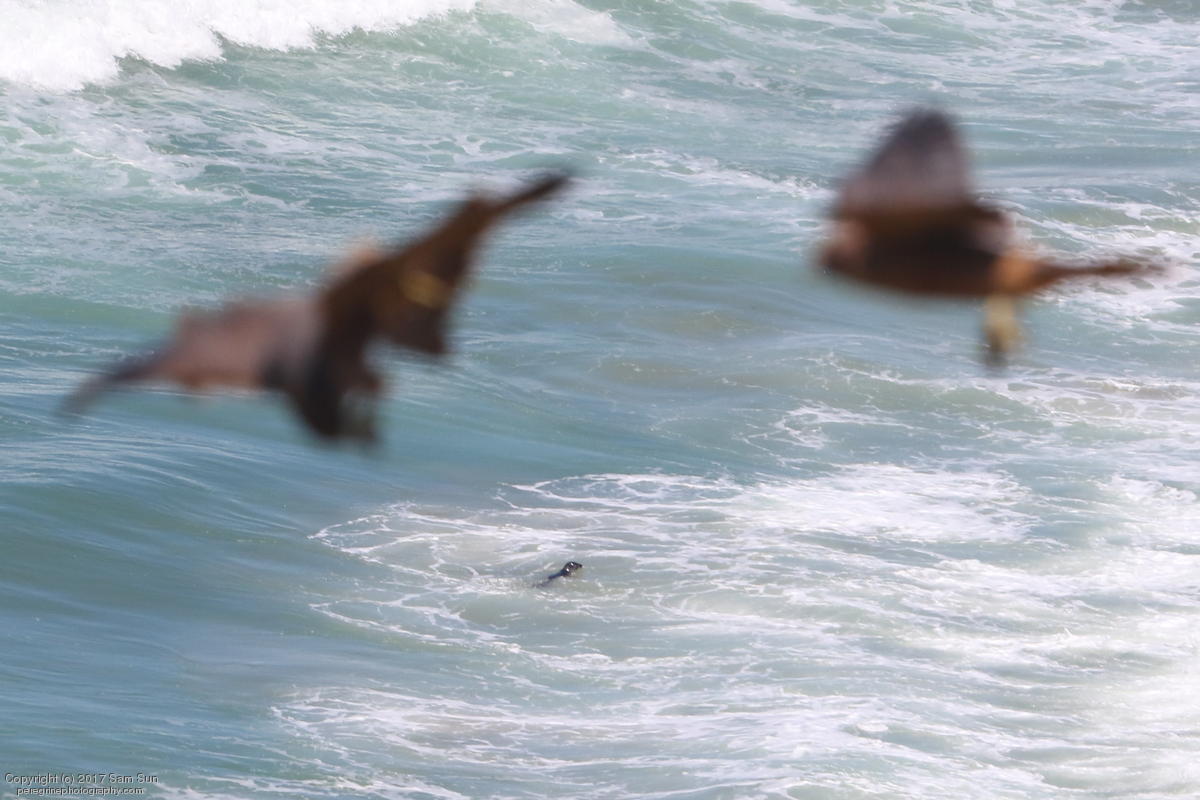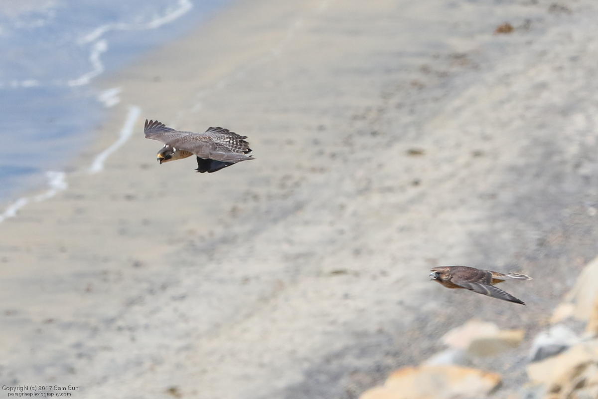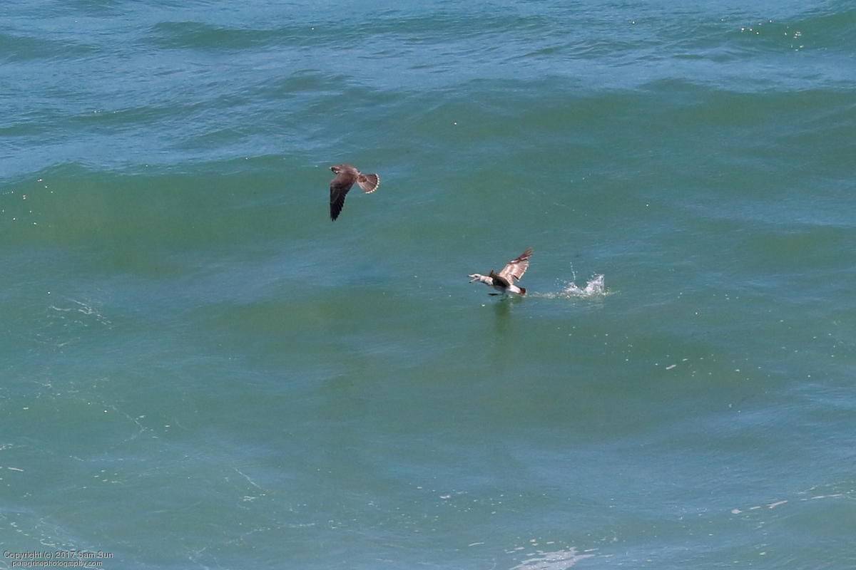 I was out at Torrey Pines for a long 10 hour day! Quite a bit of activity with a juvenile exploring the beach, some dogfights, chases, and food exchanges. A juvenile had gone swimming around mid-day yesterday, so several photographers were waiting on the beach hoping for a repeat. It seemed a bit more shy of the water today.
