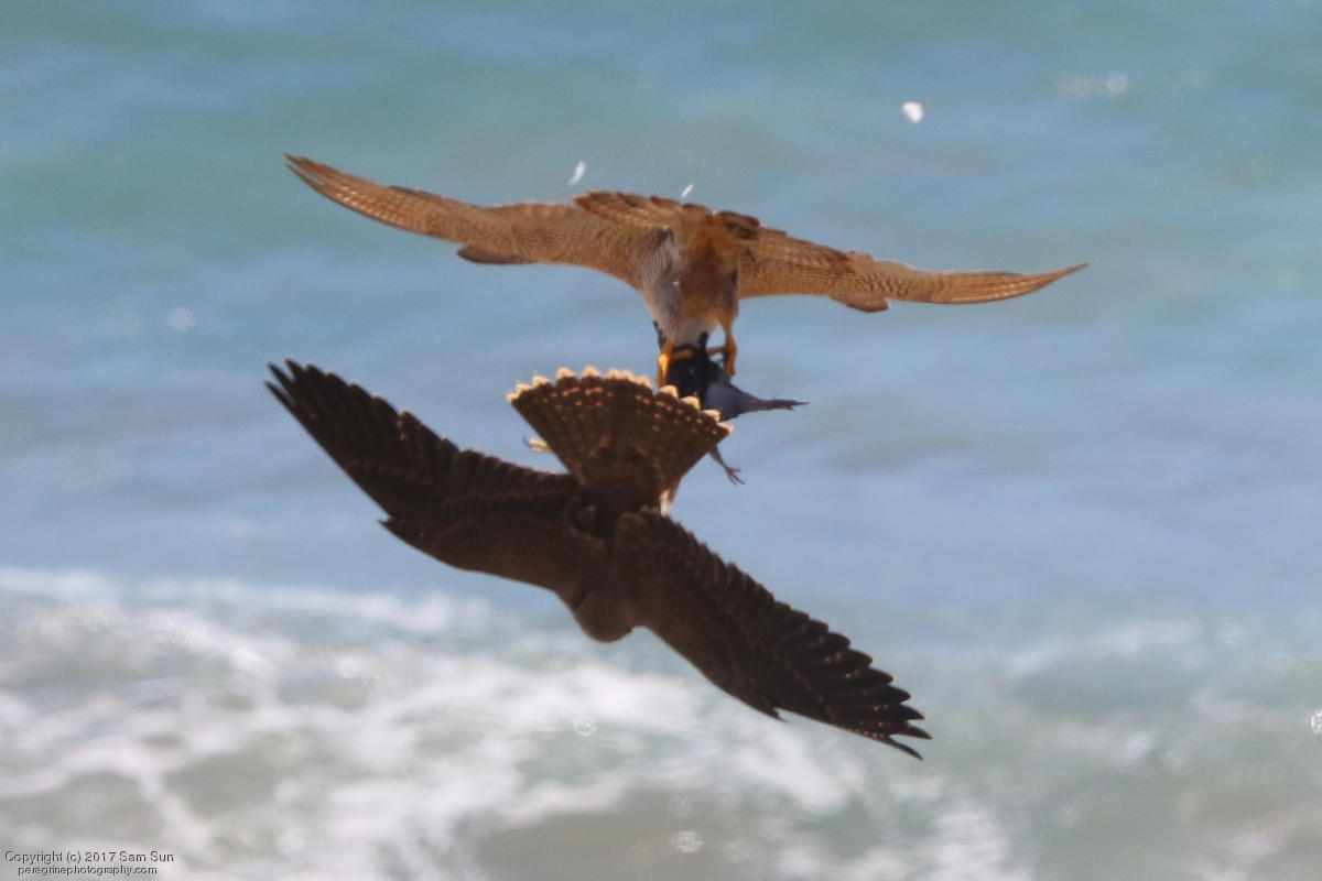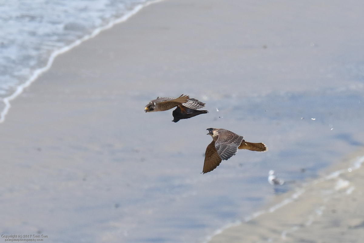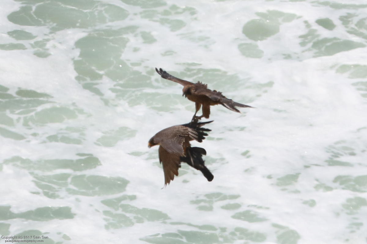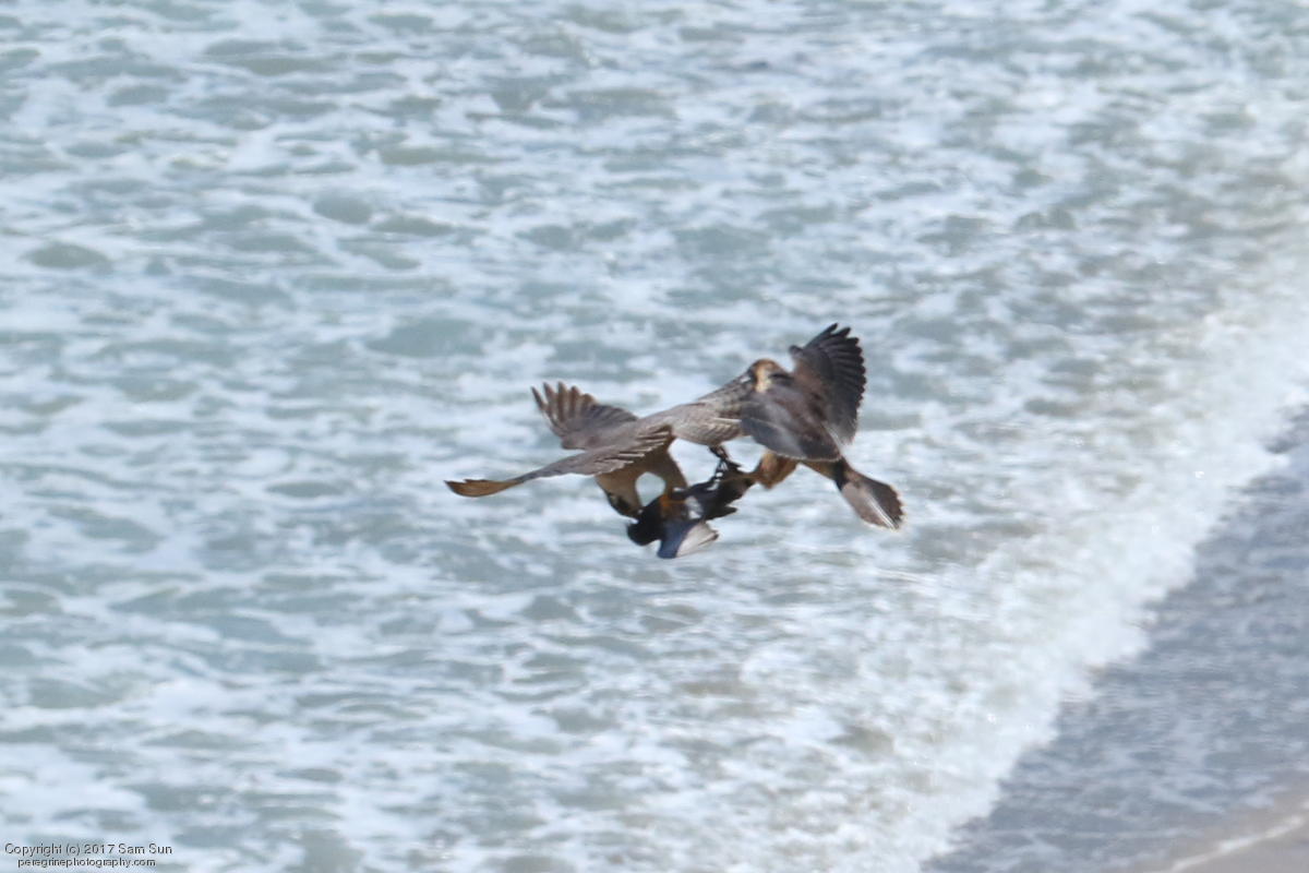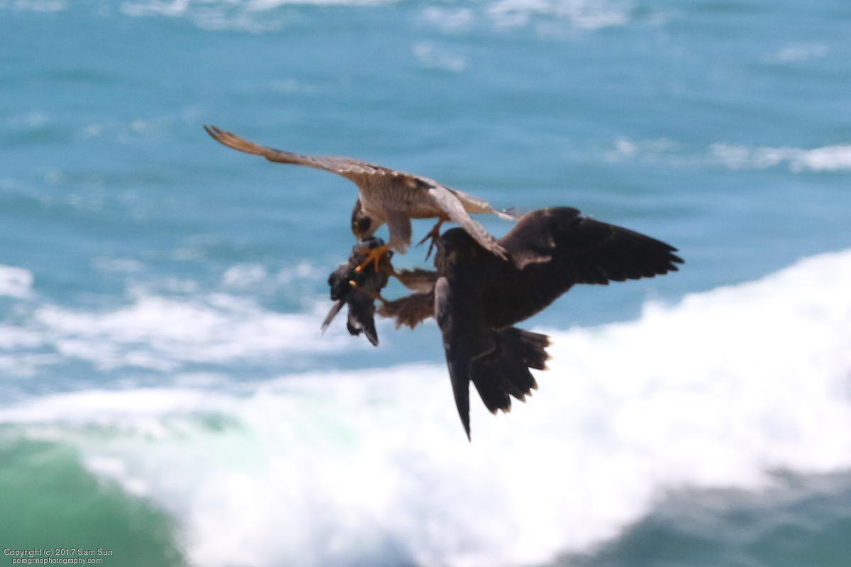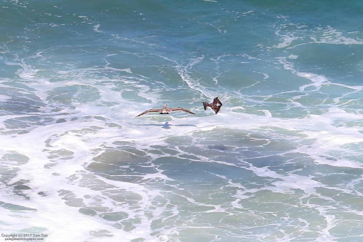 I was out at Torrey Pines for a long 10 hour day! Quite a bit of activity with a juvenile exploring the beach, some dogfights, chases, and food exchanges. A juvenile had gone swimming around mid-day yesterday, so several photographers were waiting on the beach hoping for a repeat. It seemed a bit more shy of the water today.