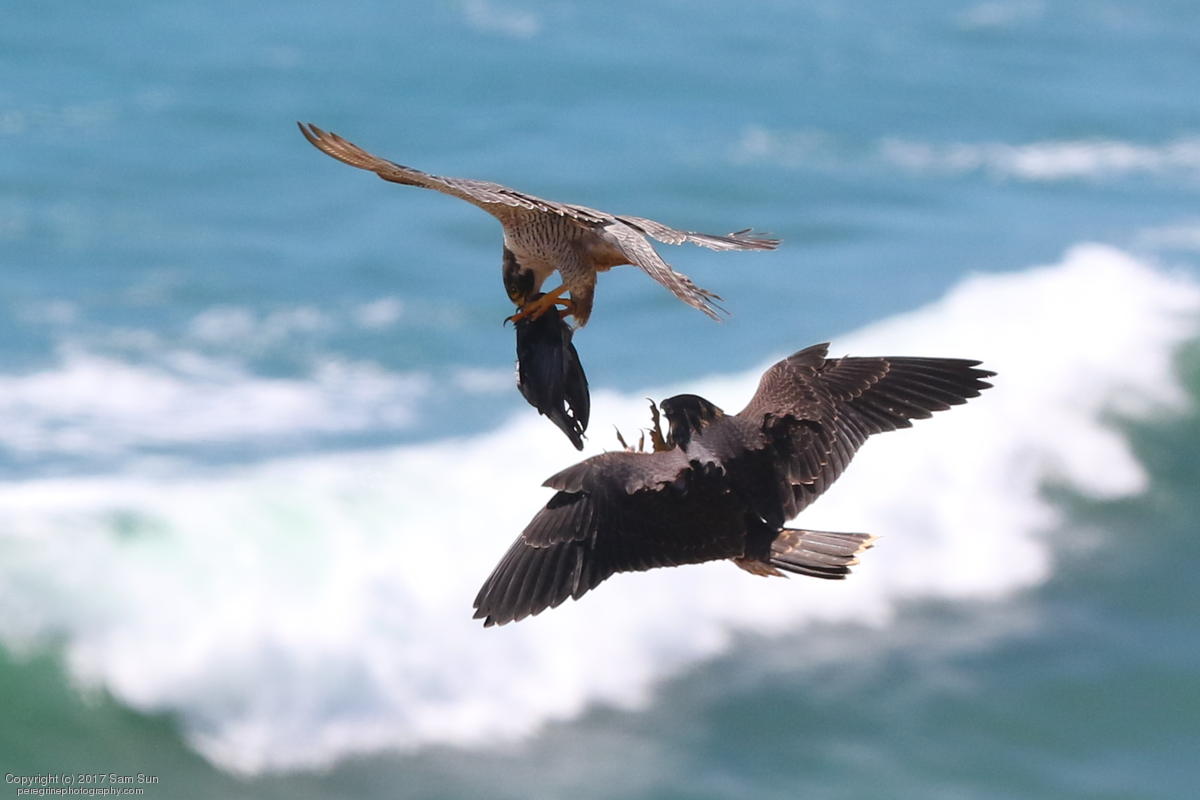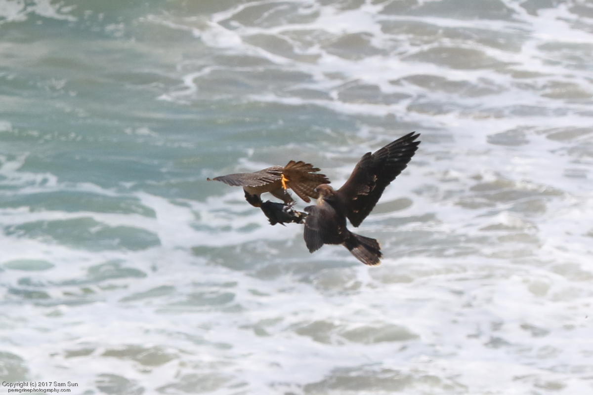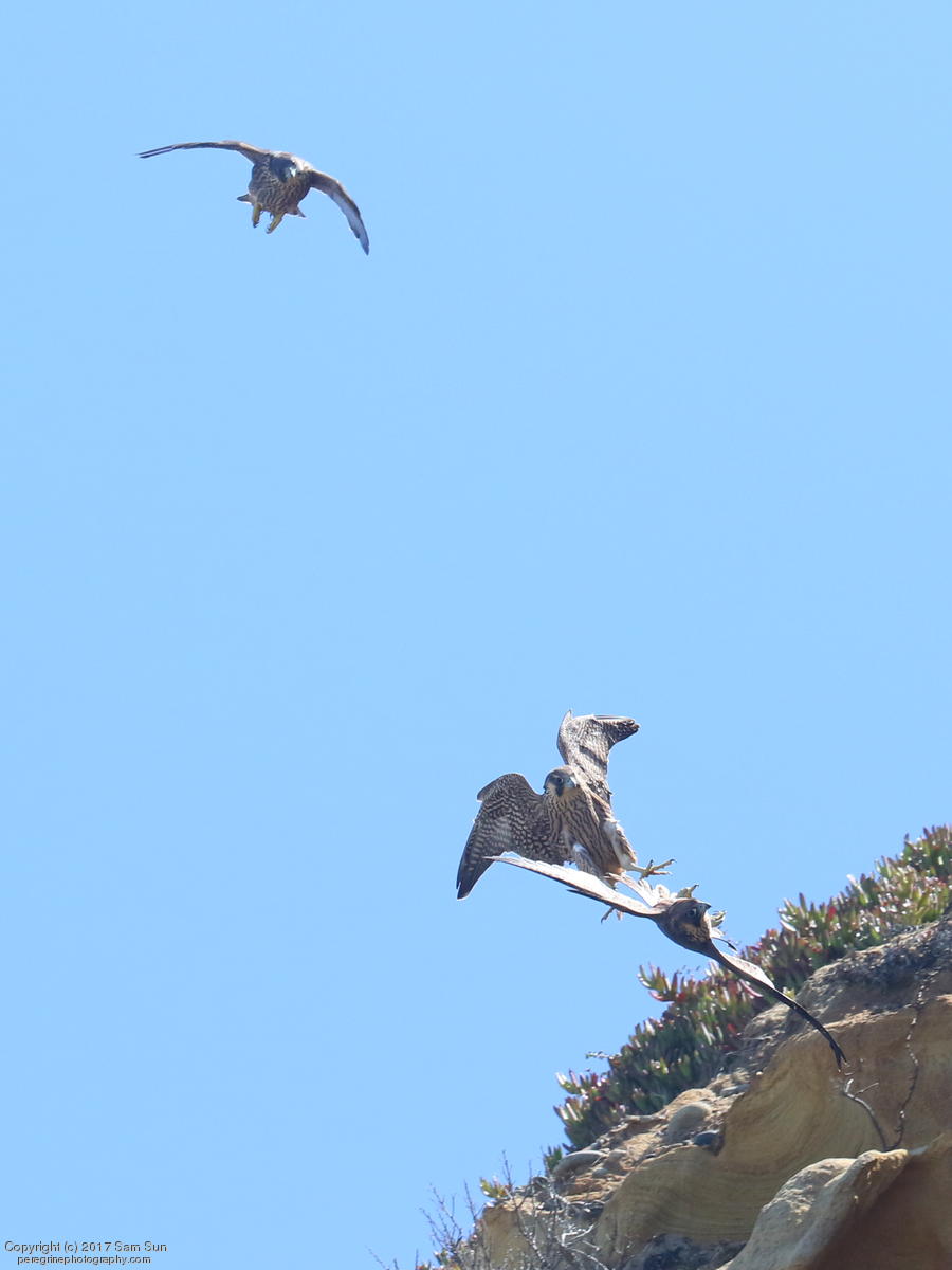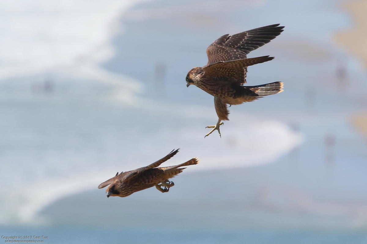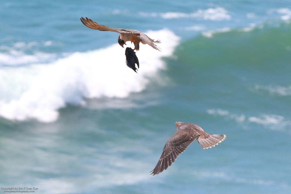 I was out at Torrey Pines for a long 10 hour day! Quite a bit of activity with a juvenile exploring the beach, some dogfights, chases, and food exchanges. A juvenile had gone swimming around mid-day yesterday, so several photographers were waiting on the beach hoping for a repeat. It seemed a bit more shy of the water today.