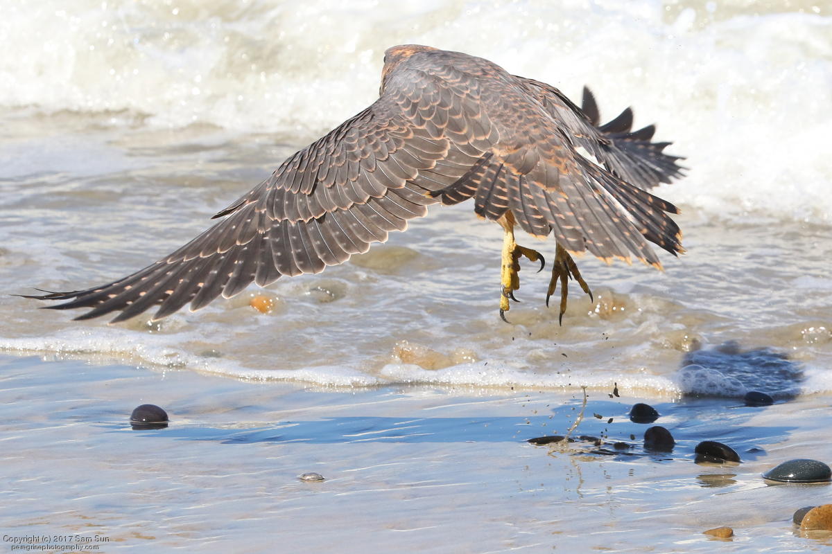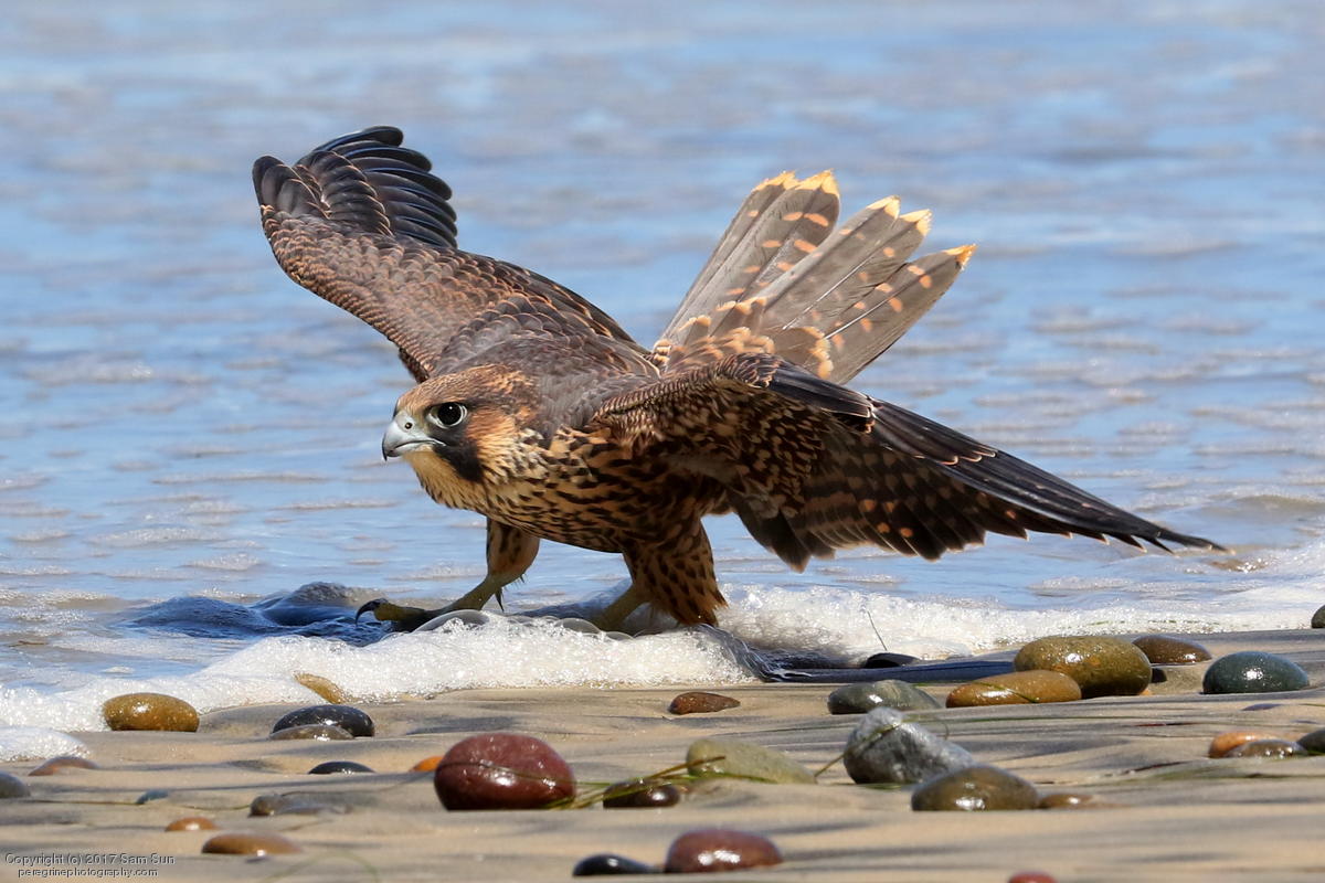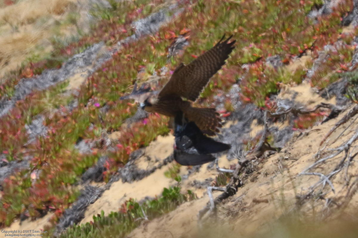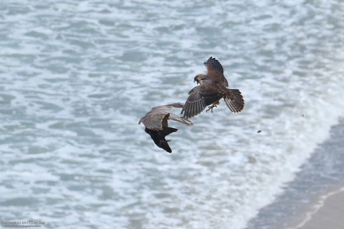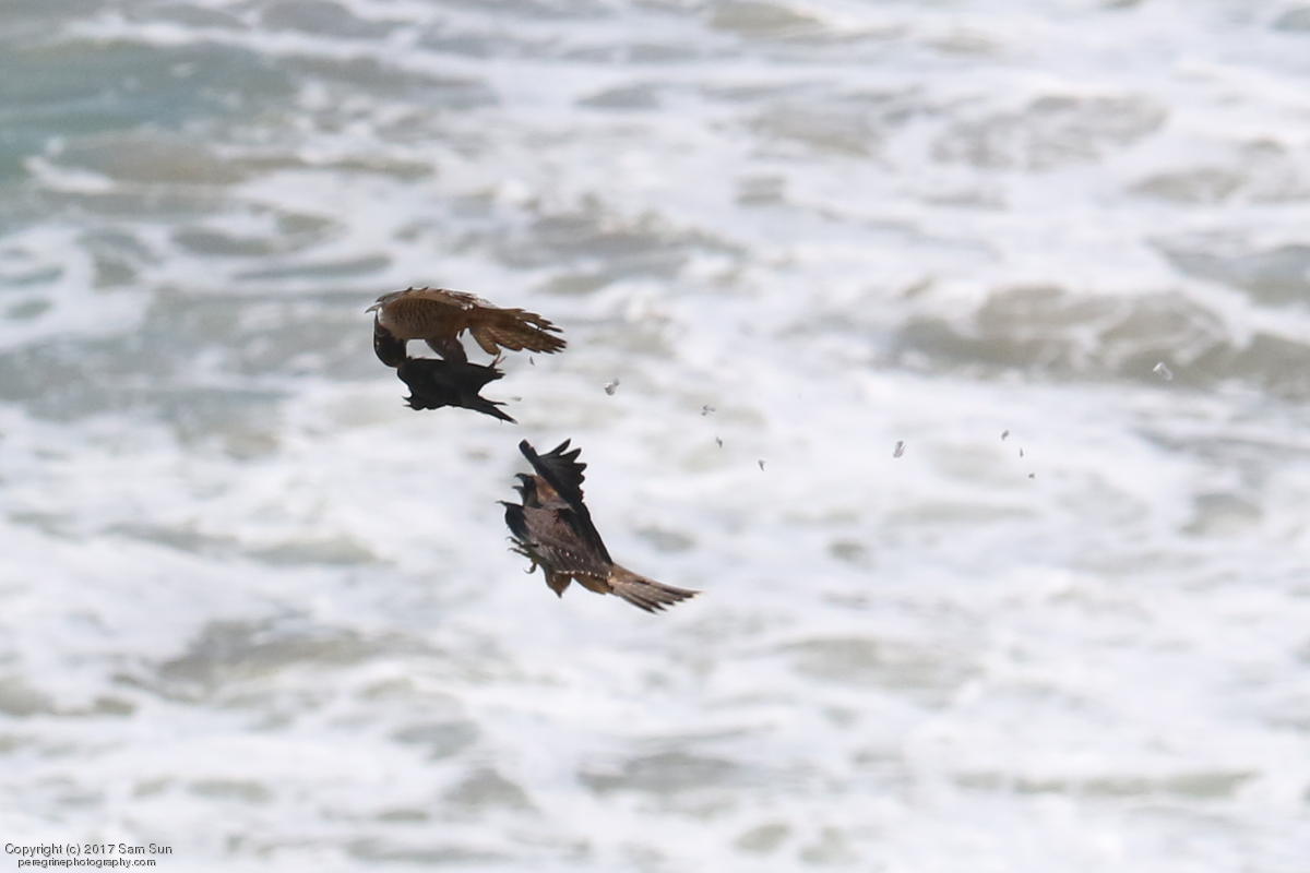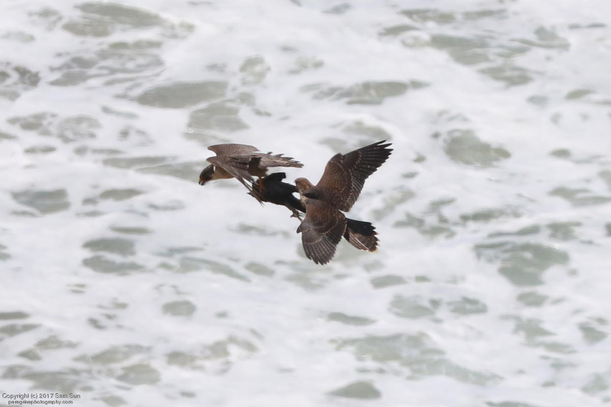 I was out at Torrey Pines for a long 10 hour day! Quite a bit of activity with a juvenile exploring the beach, some dogfights, chases, and food exchanges. A juvenile had gone swimming around mid-day yesterday, so several photographers were waiting on the beach hoping for a repeat. It seemed a bit more shy of the water today.