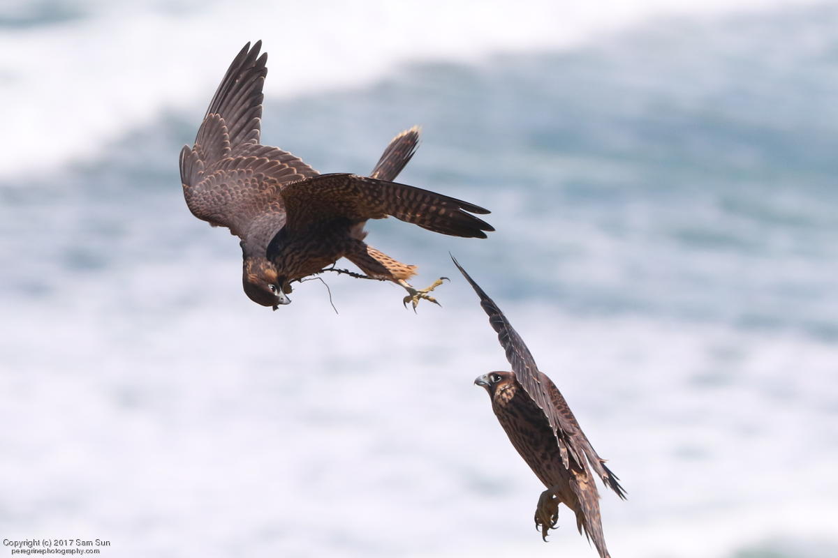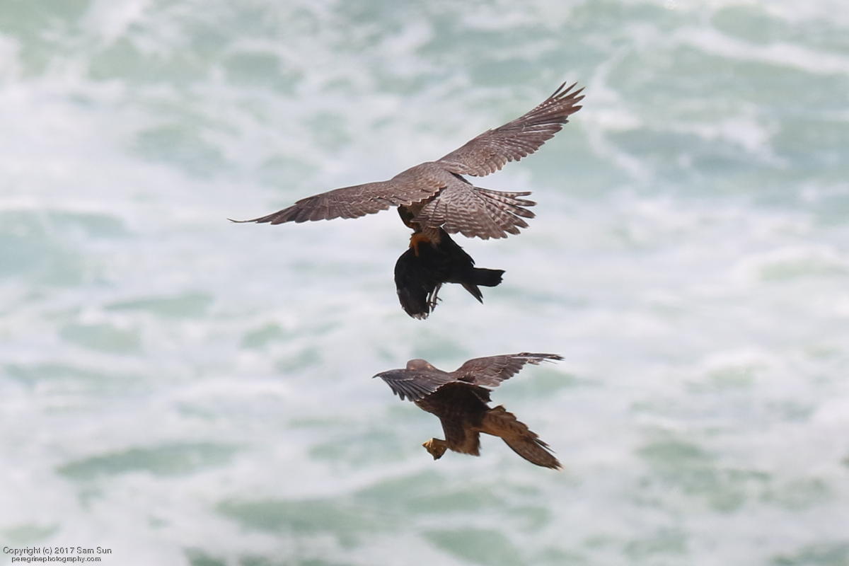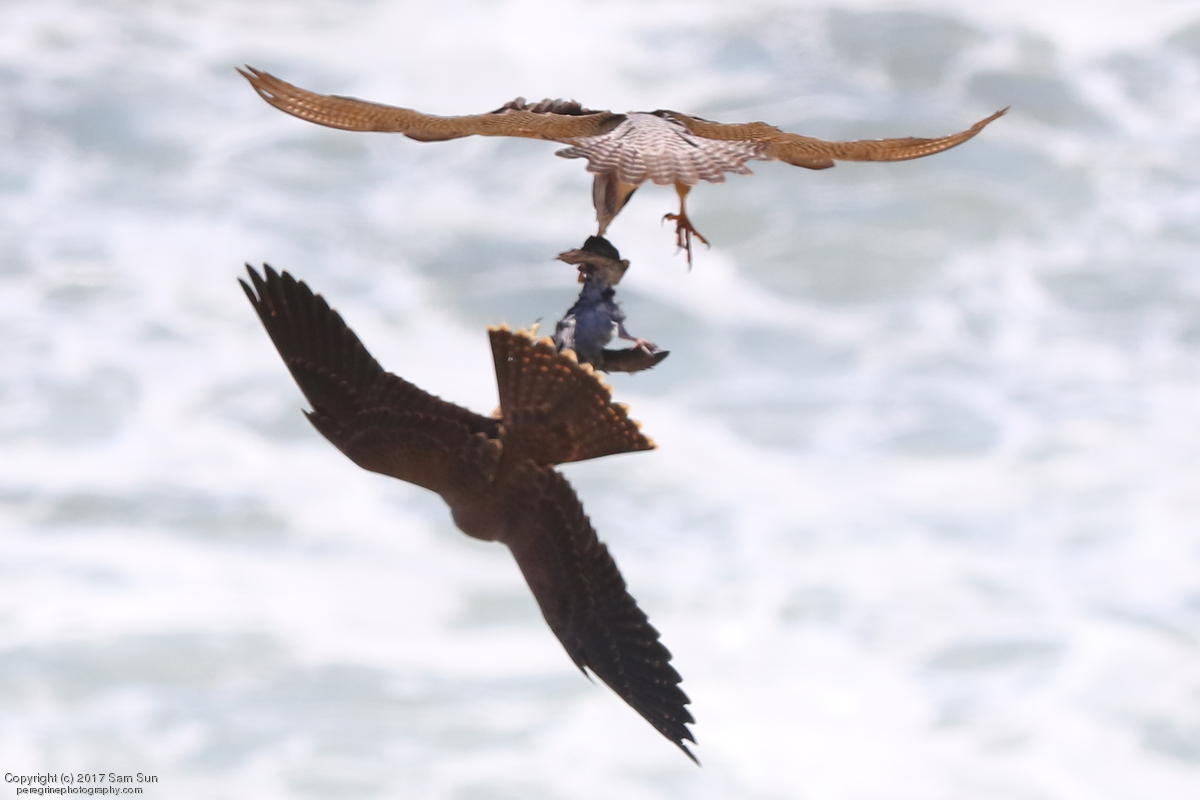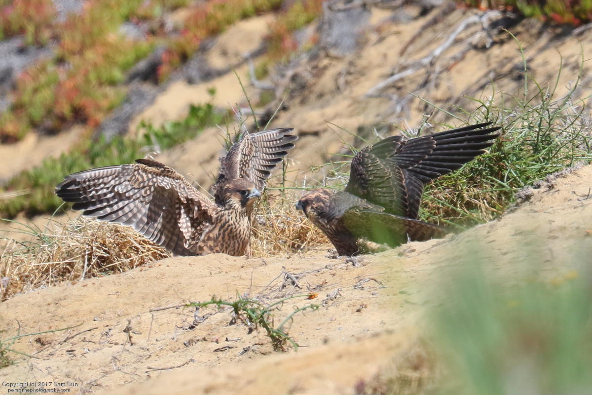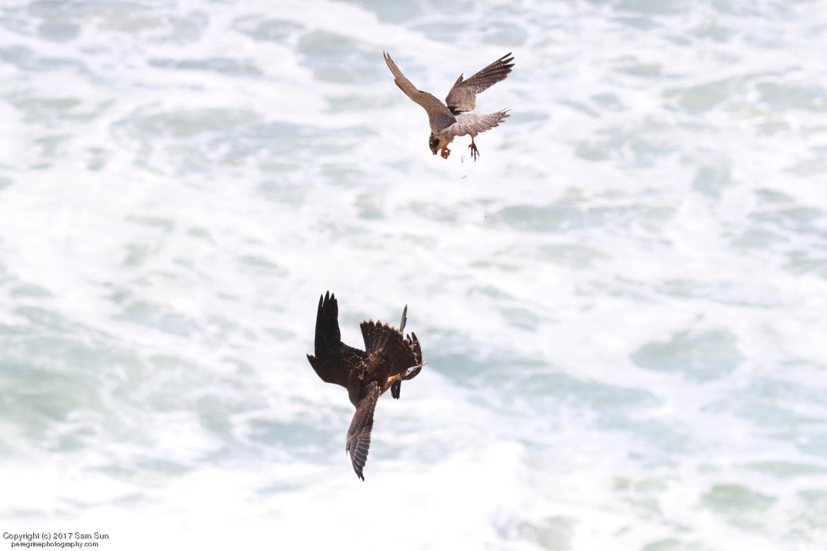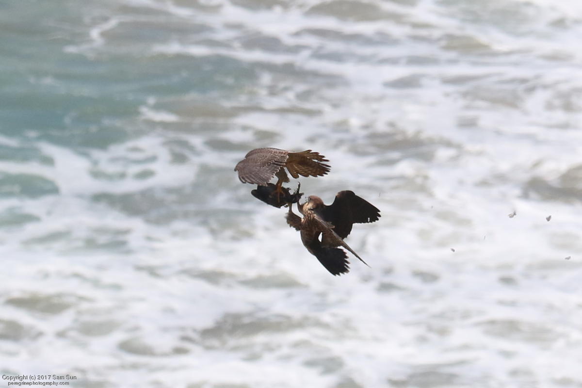 I was out at Torrey Pines for a long 10 hour day! Quite a bit of activity with a juvenile exploring the beach, some dogfights, chases, and food exchanges. A juvenile had gone swimming around mid-day yesterday, so several photographers were waiting on the beach hoping for a repeat. It seemed a bit more shy of the water today.