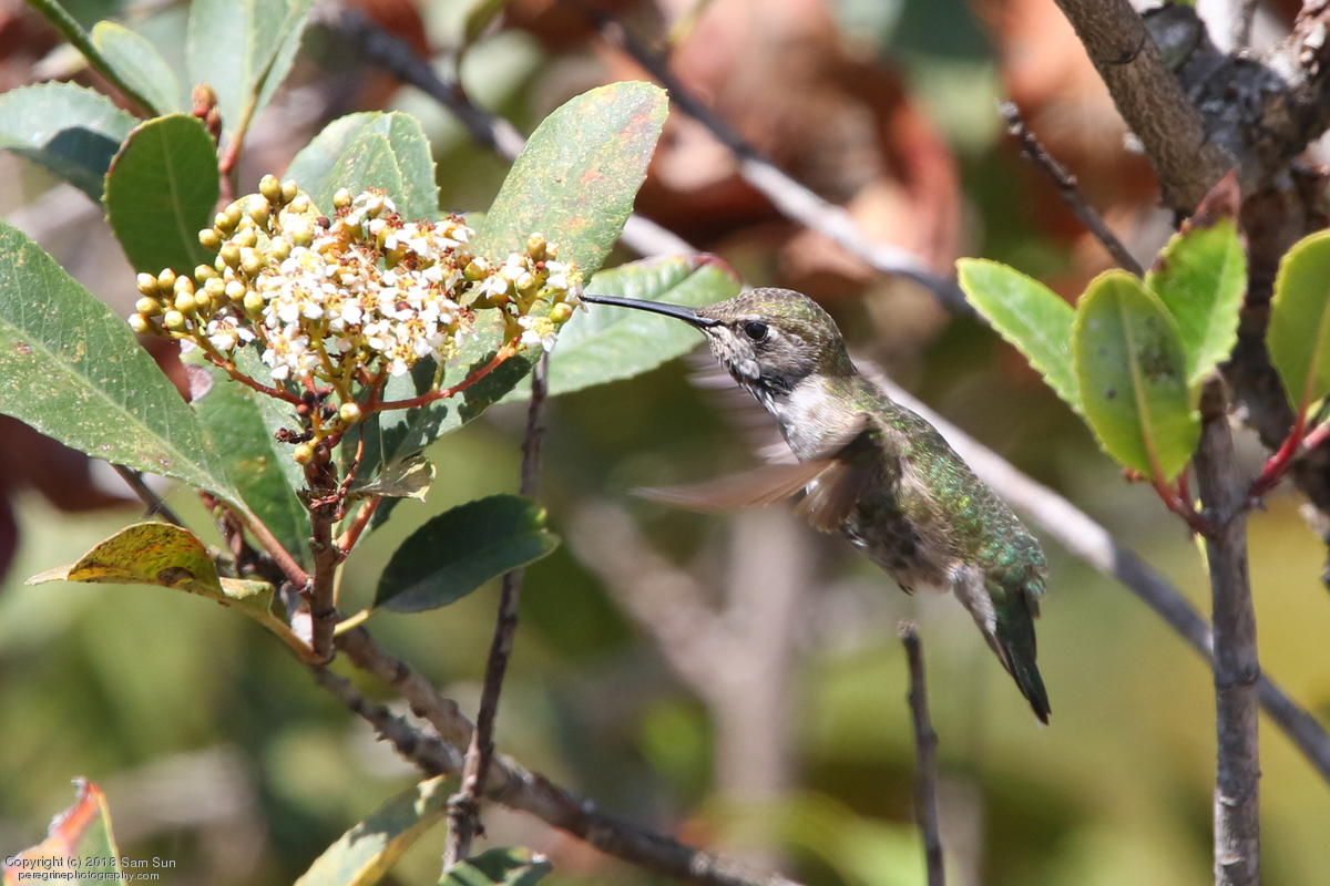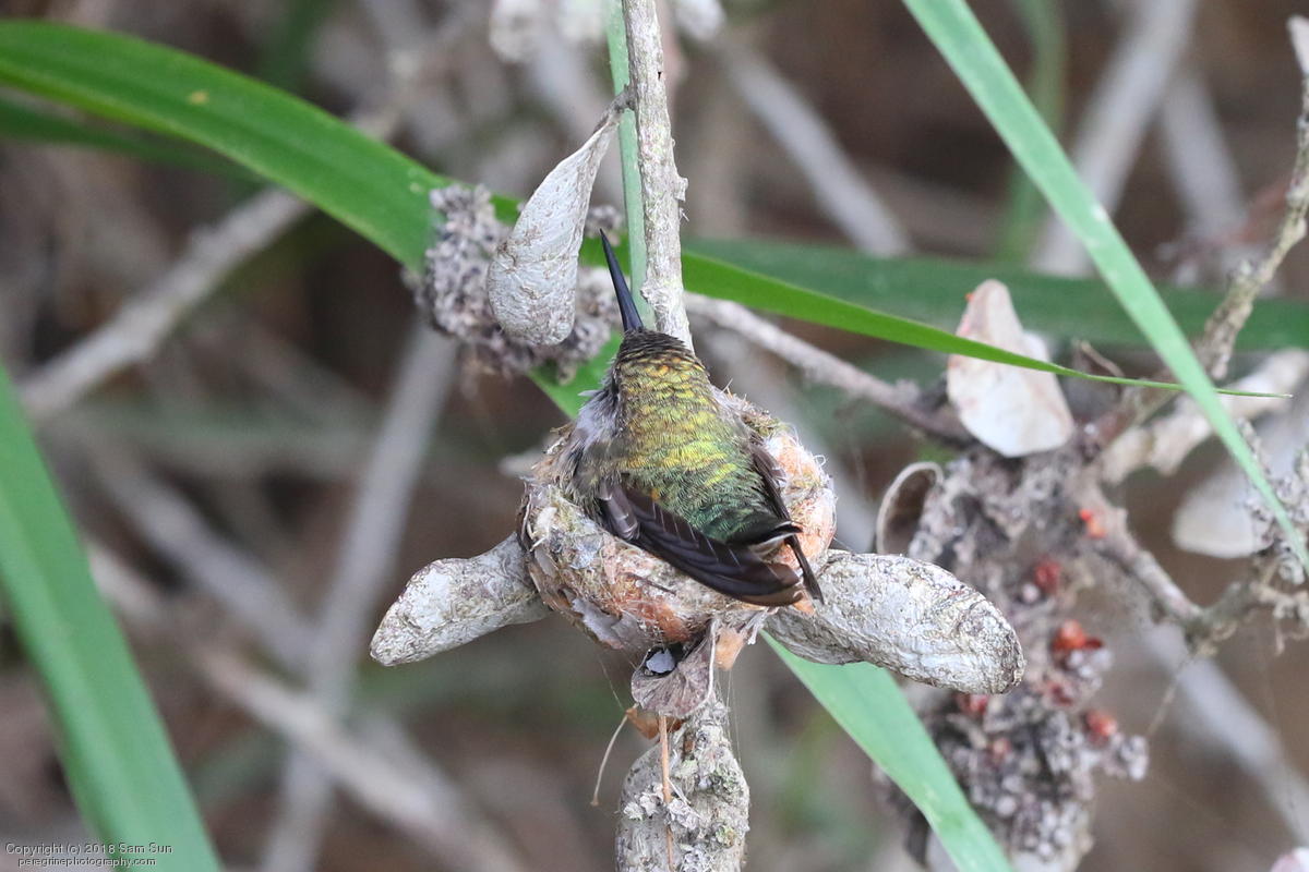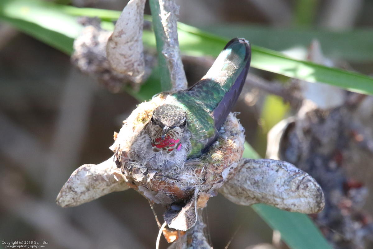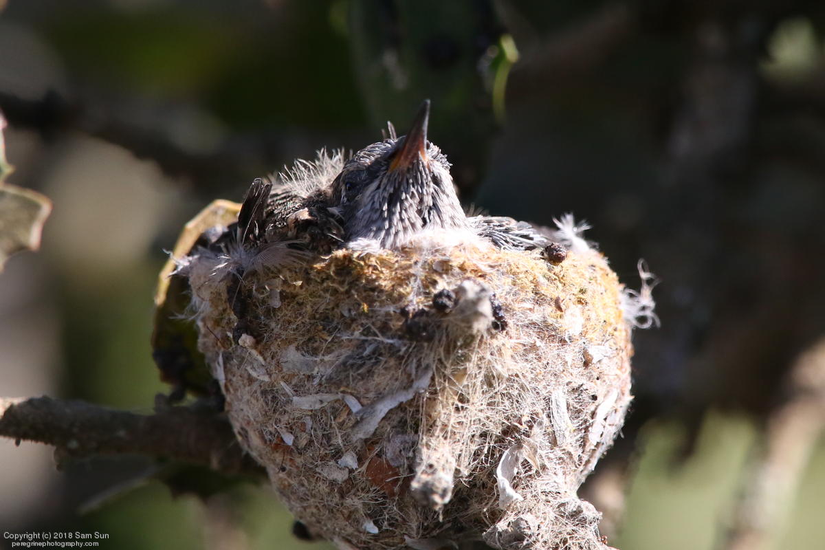 Not a lot of activity this morning - a botched food exchange and a juvenile taking a bath. A hummingbird nest with chicks was a good diversion while waiting.