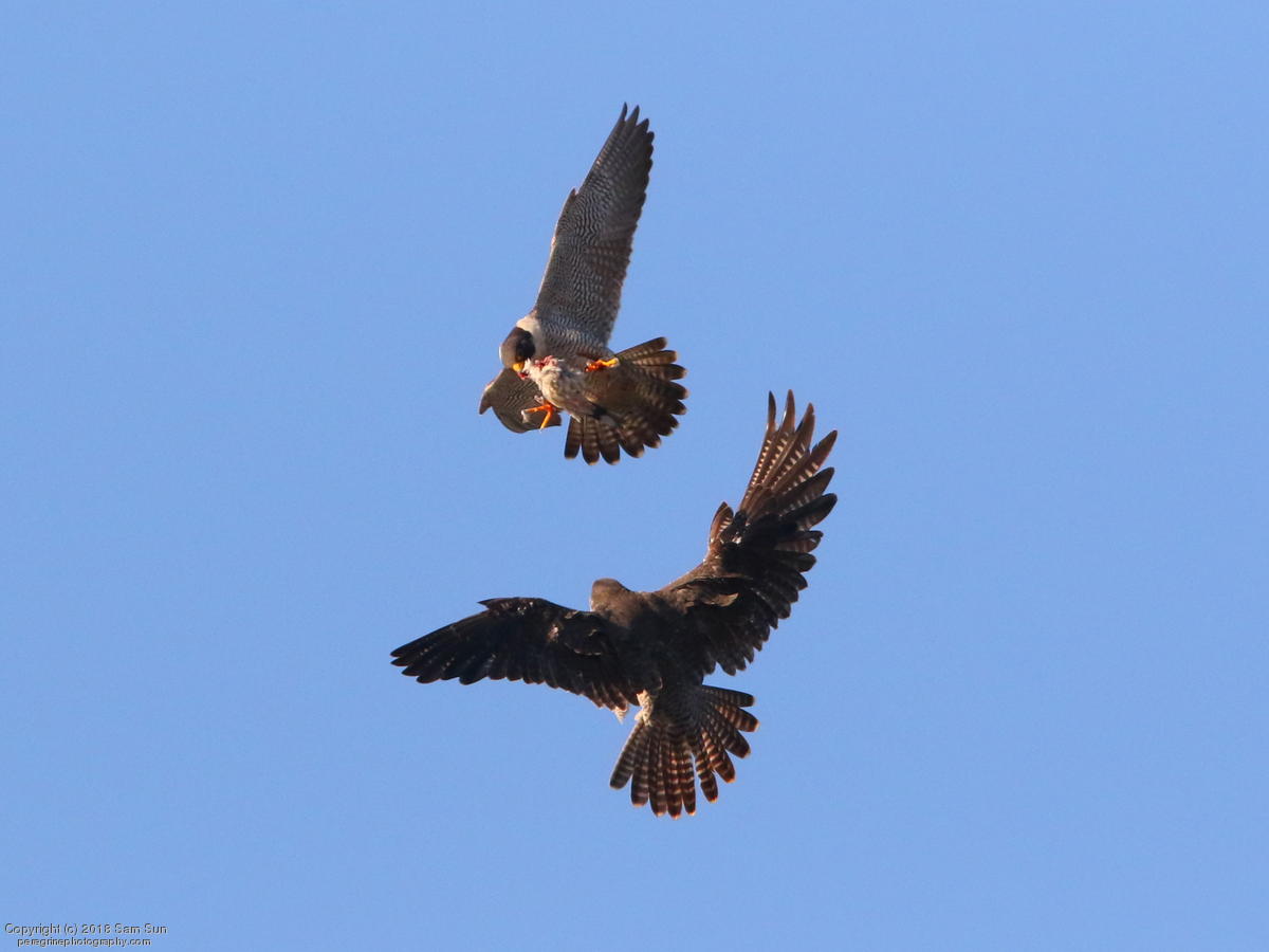 One food exchange this evening that was almost lost. This female hasn't had a good track record of catching the exchanges.