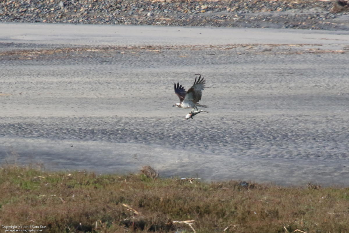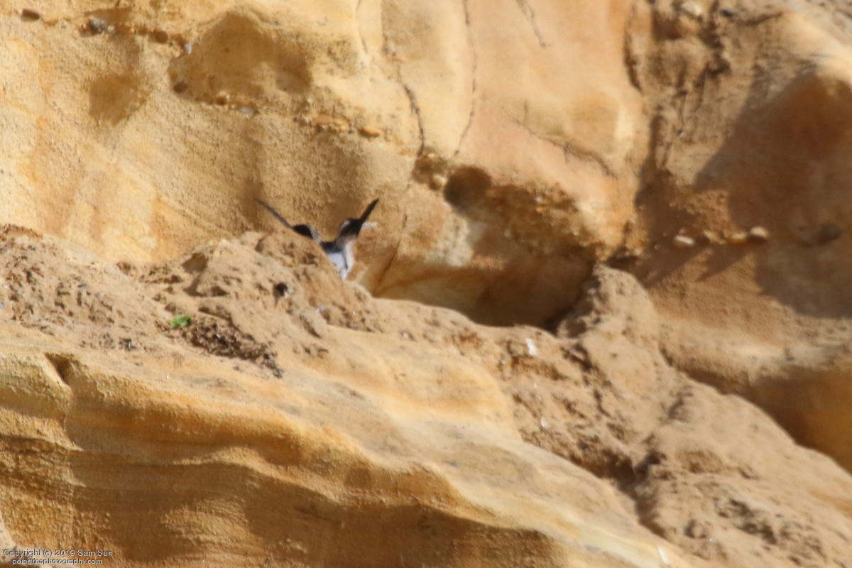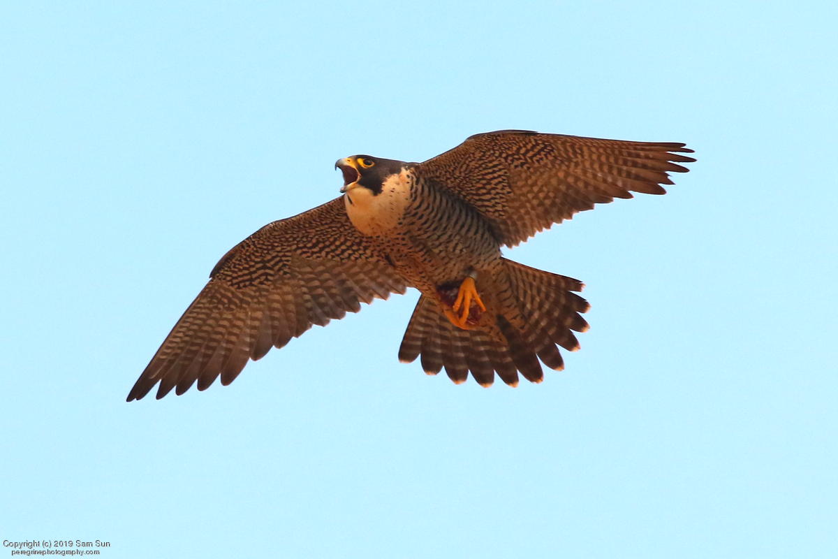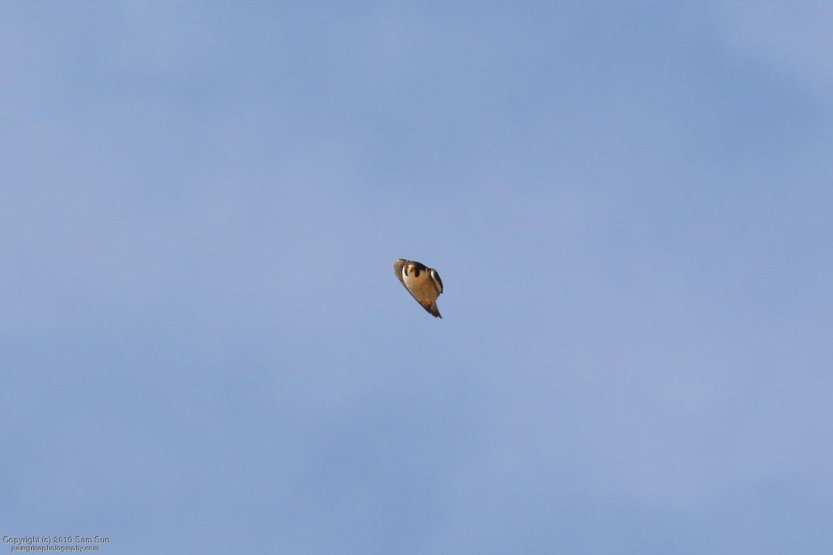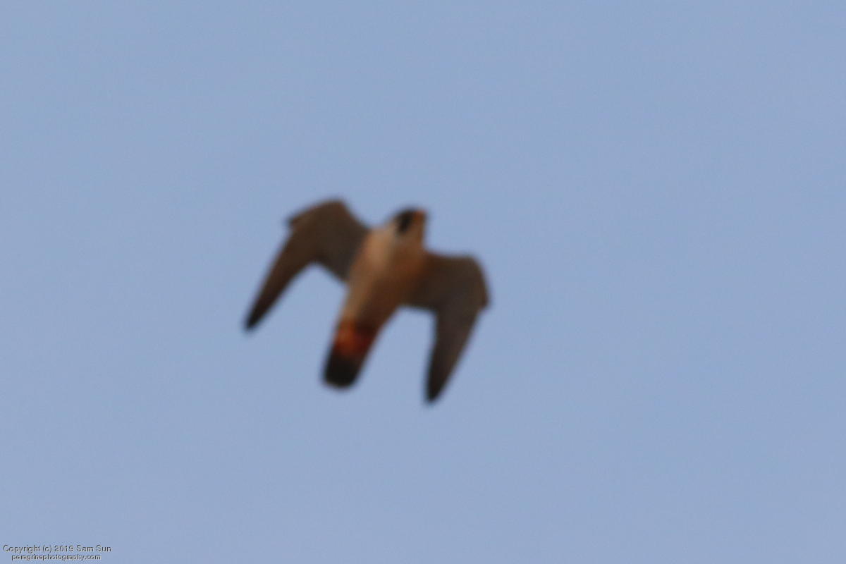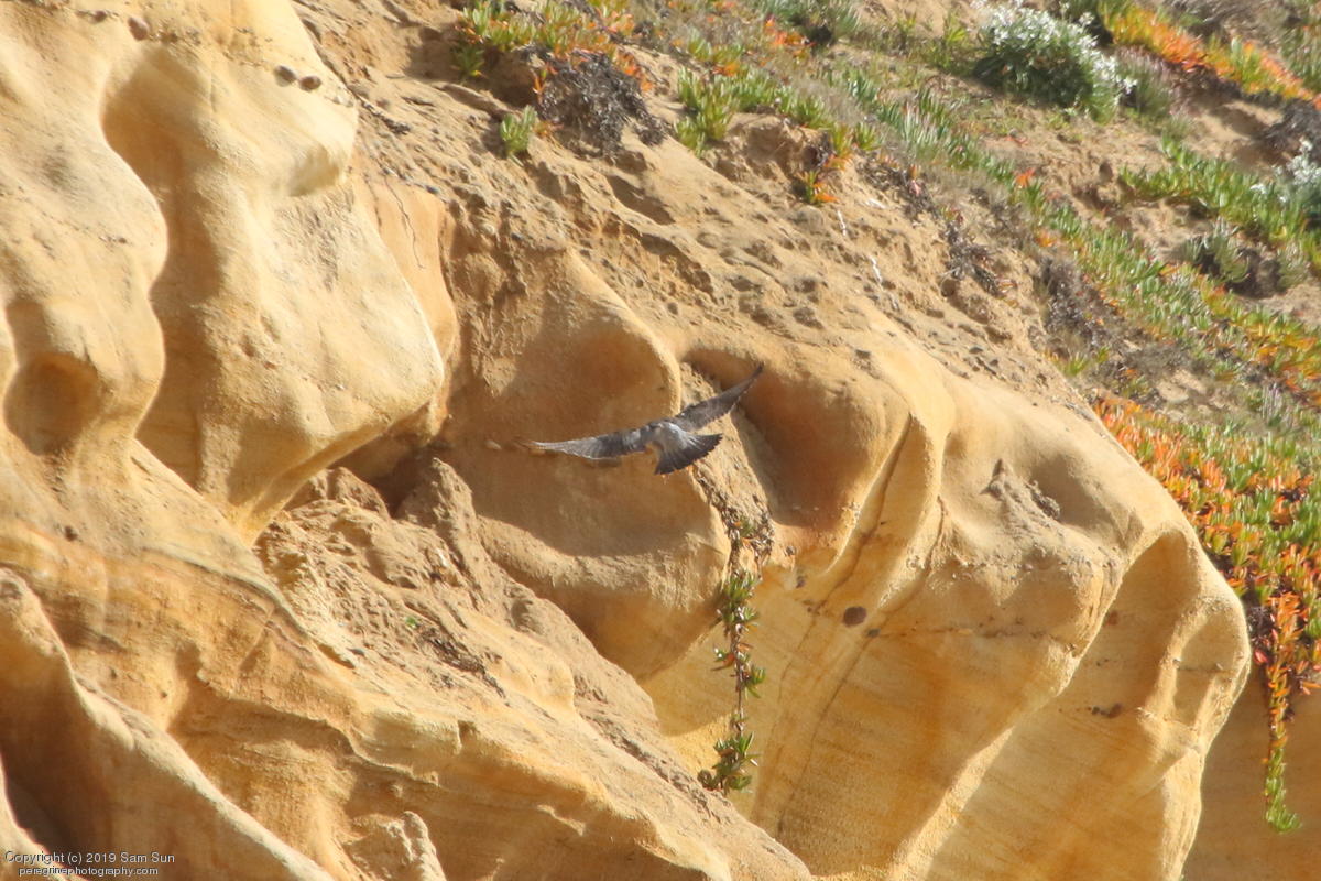 It was a long wait this afternoon. Both adults flew briefly as I arrived. It looked like the female disappeared into the new suspected nest ledge, so I staked it out. Three hours later, the male came by with food and they did an exchange right overhead! Unfortunately, my autofocus decided to lose the handoff shot.