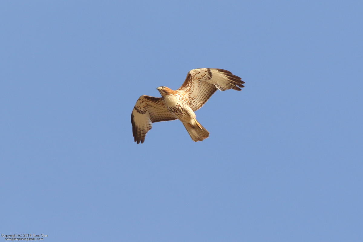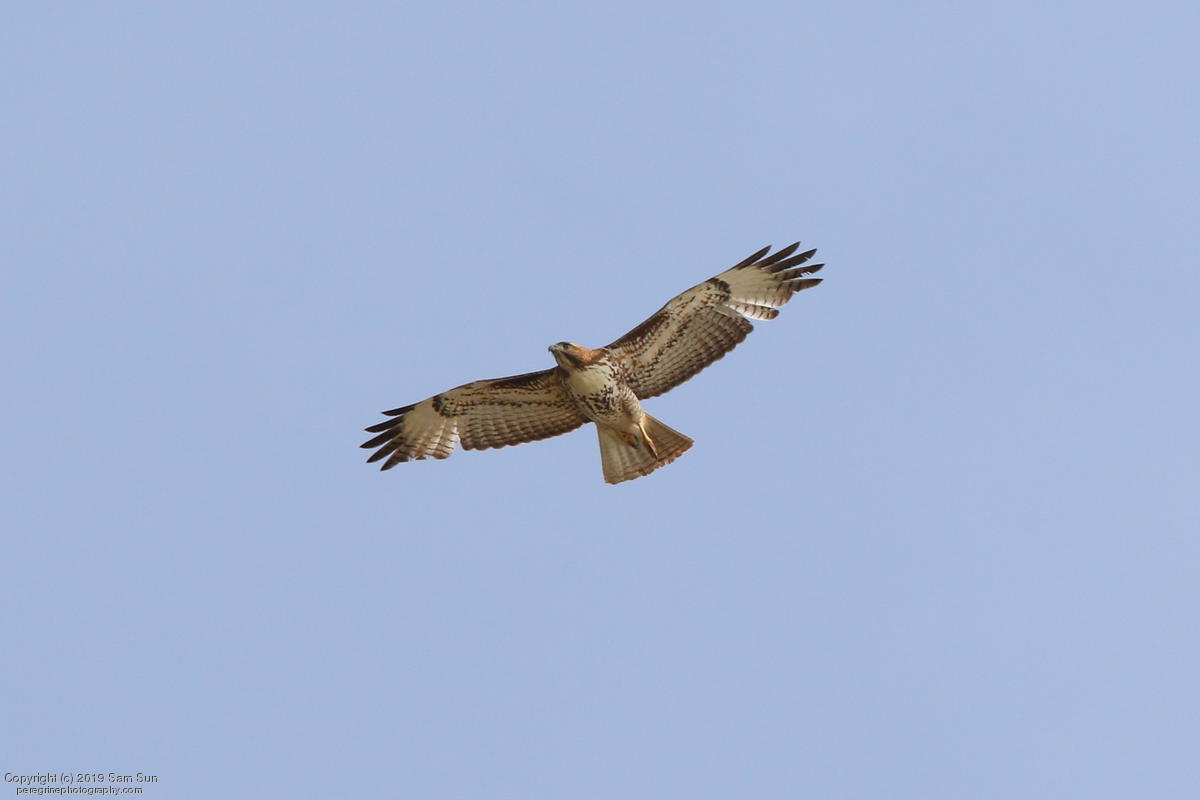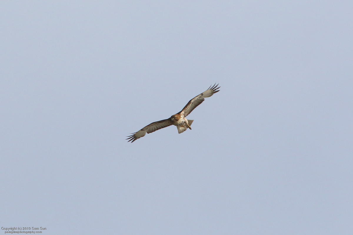 (5:57p) Apparently the same Red-tailed, trailing its left leg.