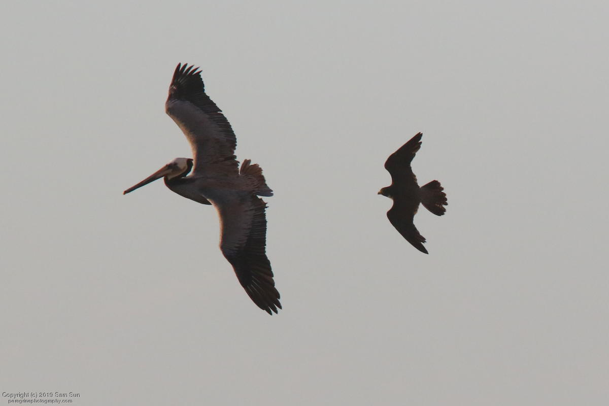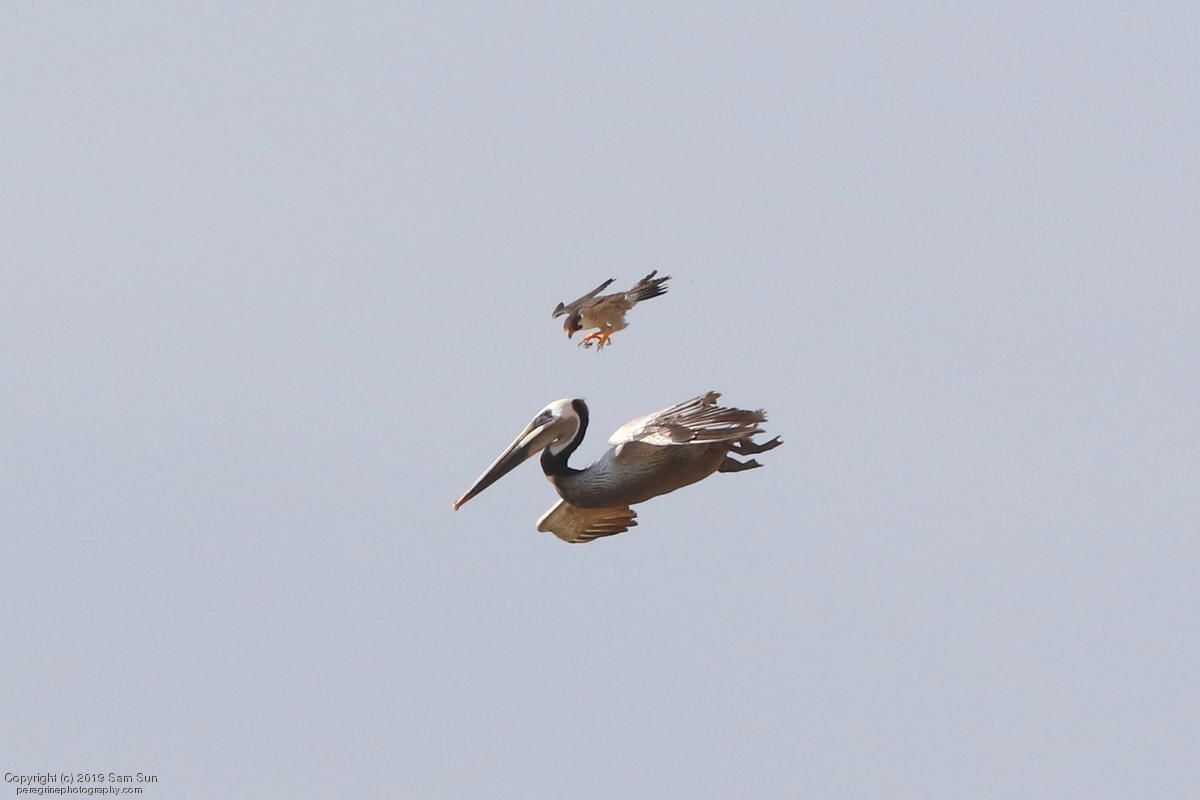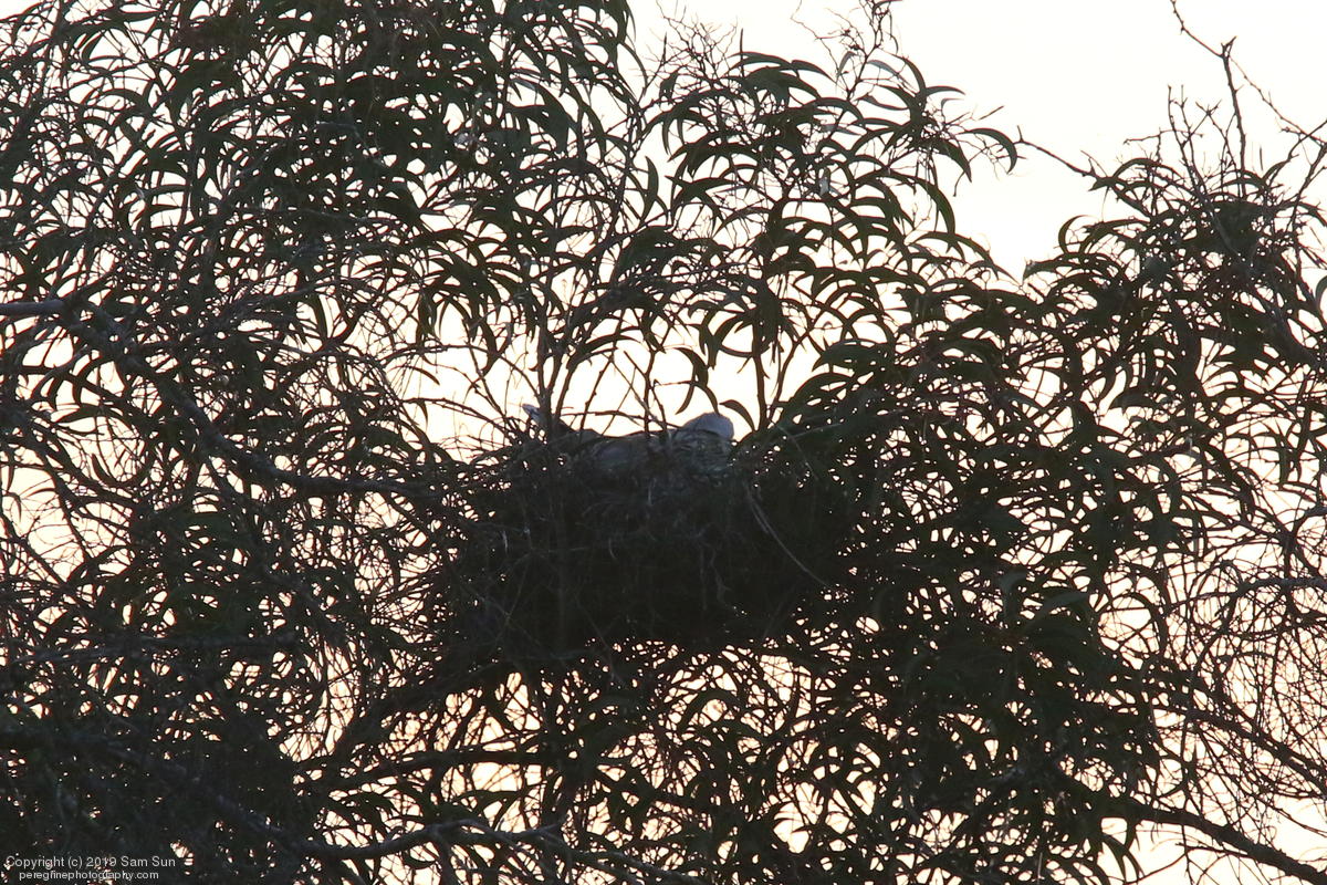 Saw a nice food exchange this afternoon, after which the female appeared to stash it. Both adults then took turns chasing pelicans and doing nest duty. What looked like a sub-adult showed up later and got chased off.