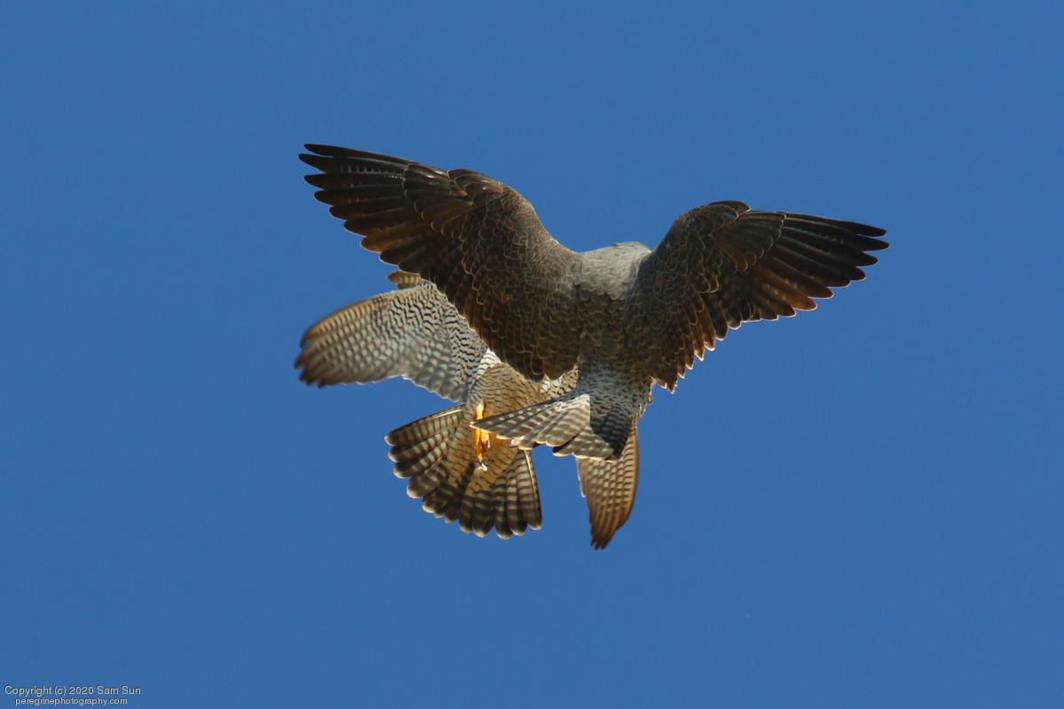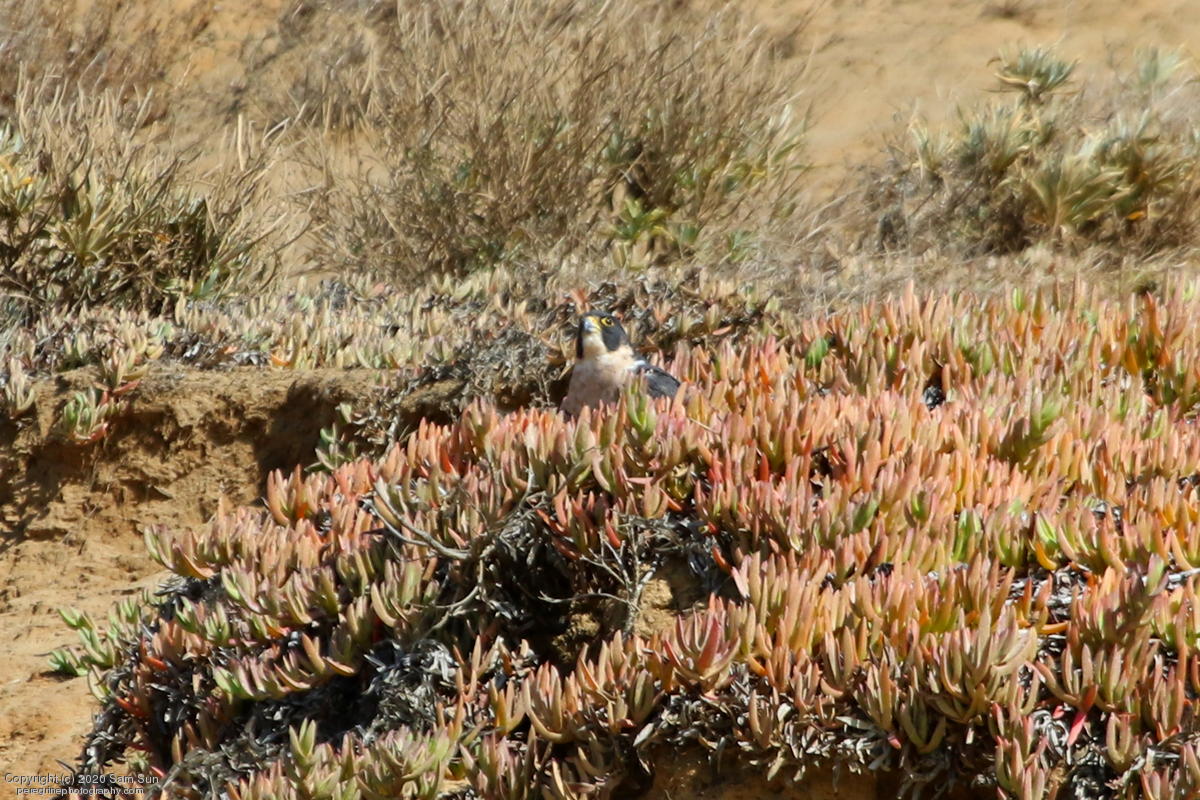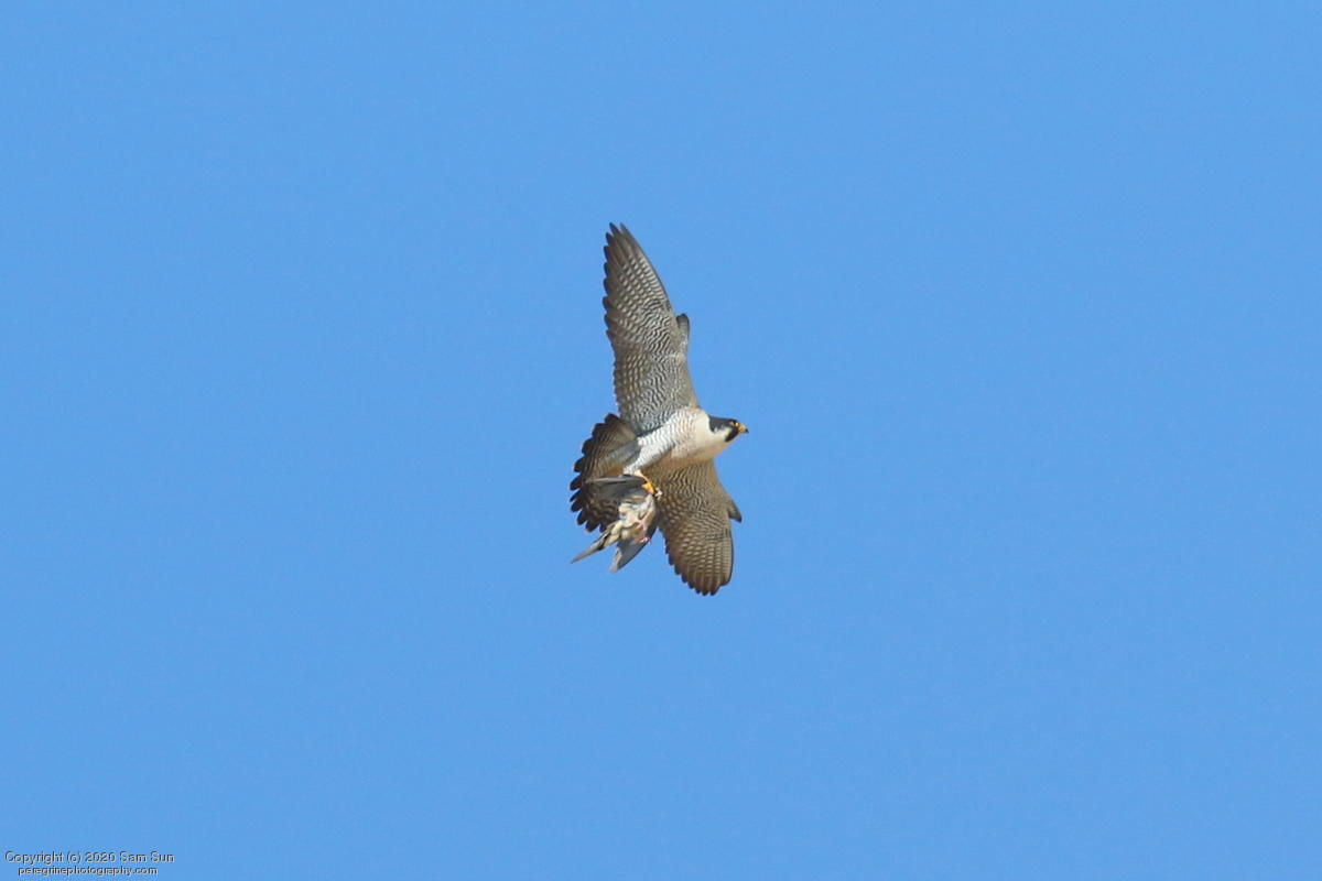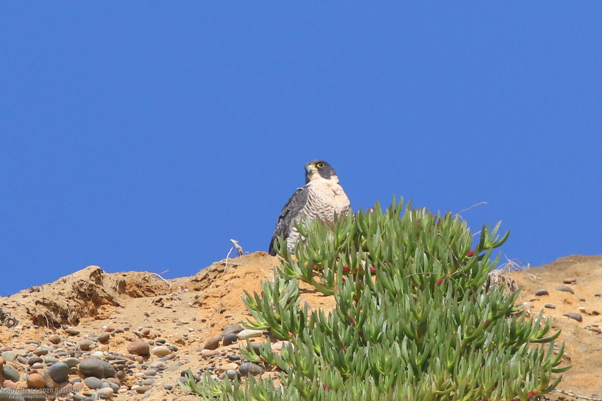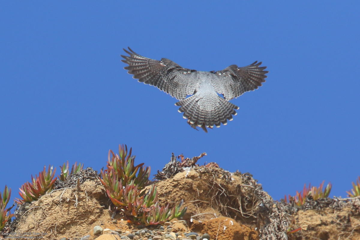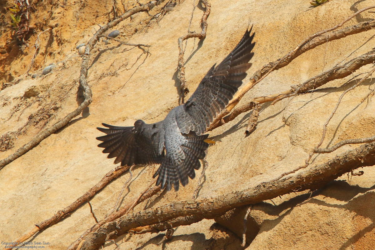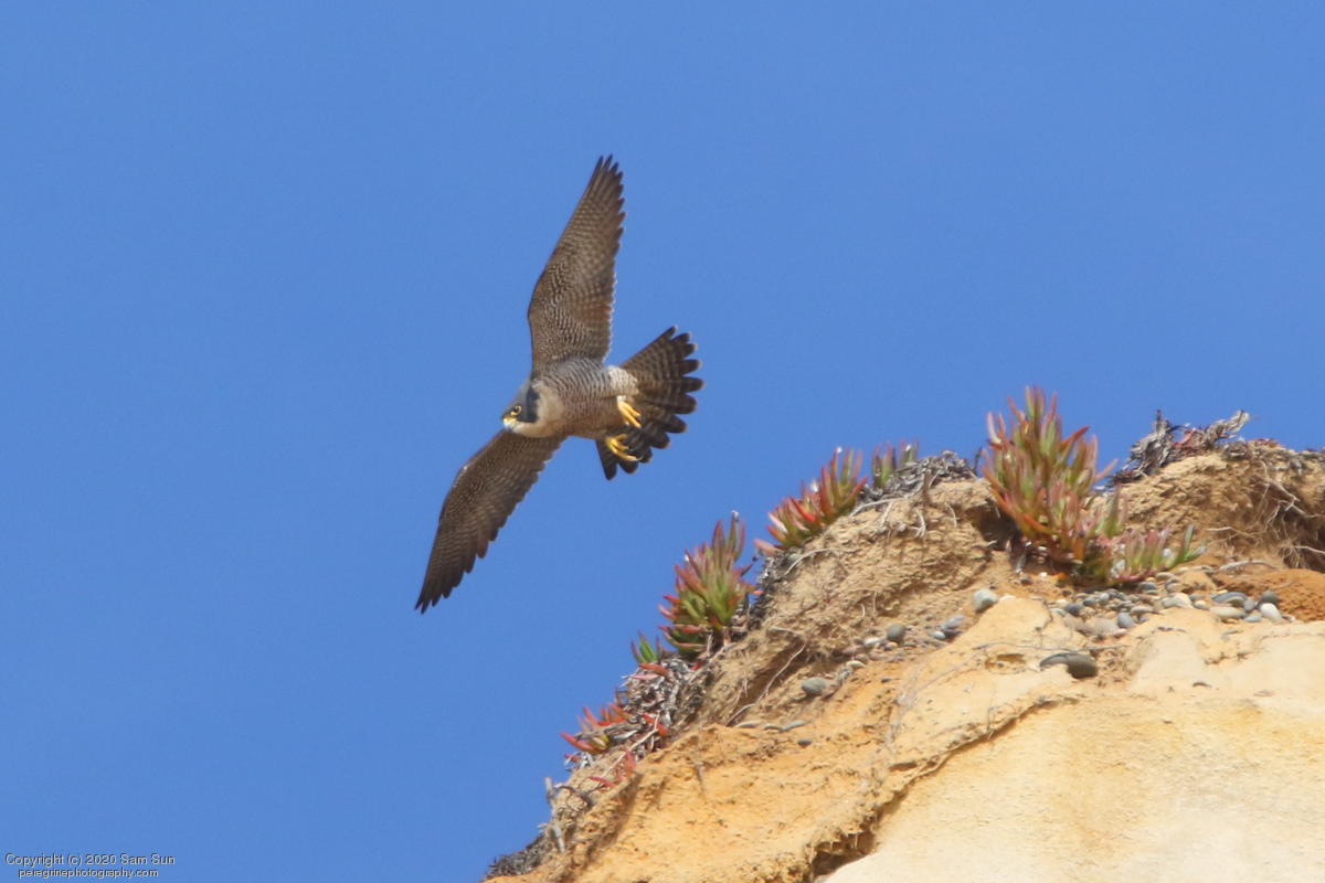 The male brought in some food and played keep away from the female for a bit, then went towards the north end of the cliff to eat. He eventually transfered the leftovers to the female, then went to preen. After a long wait, they mated twice in about half an hour (~3:55, 4:20p).