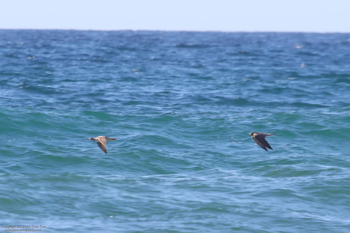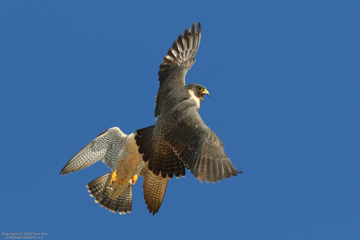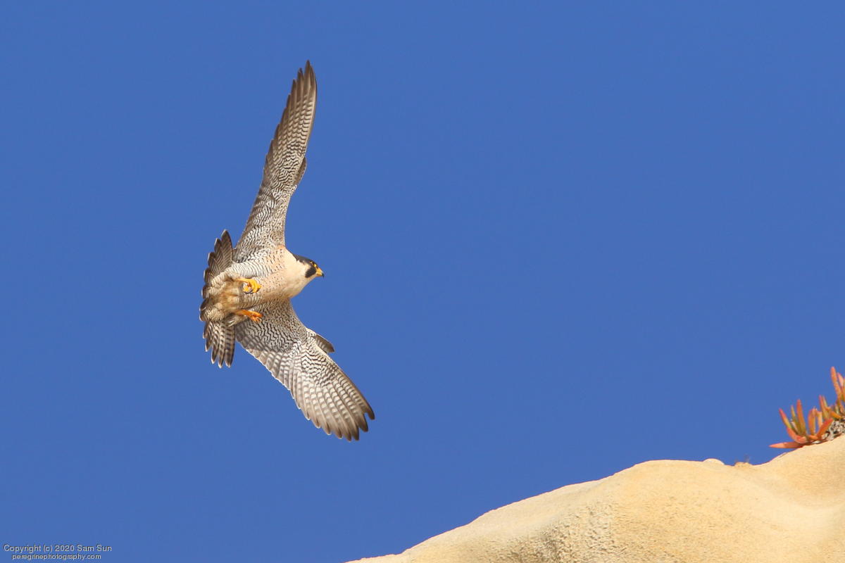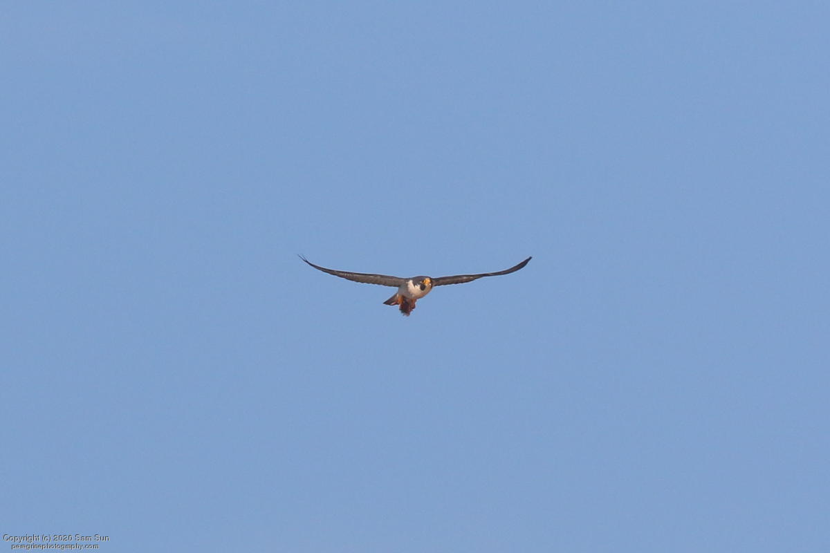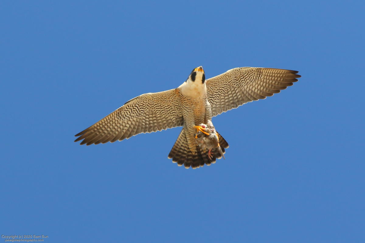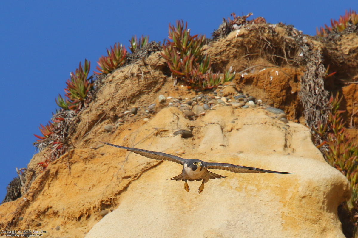 The male brought in some food and played keep away from the female for a bit, then went towards the north end of the cliff to eat. He eventually transfered the leftovers to the female, then went to preen. After a long wait, they mated twice in about half an hour (~3:55, 4:20p).