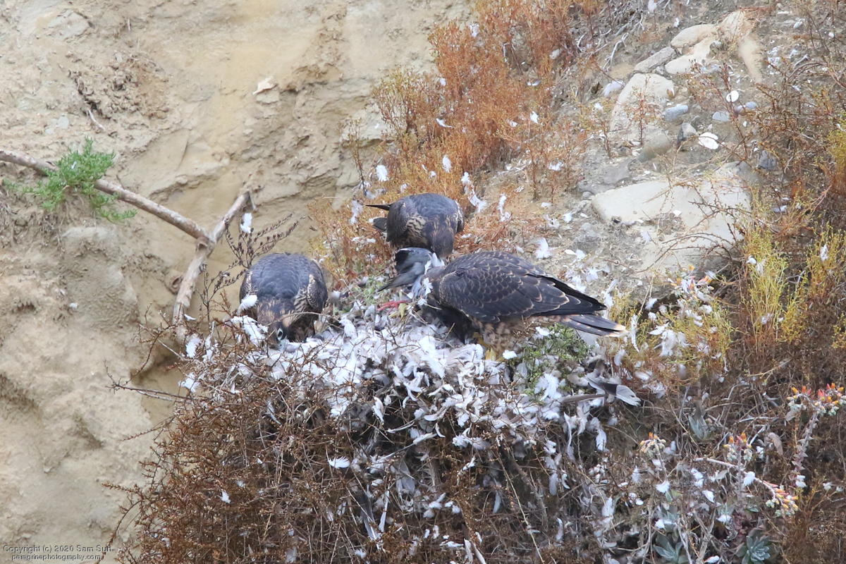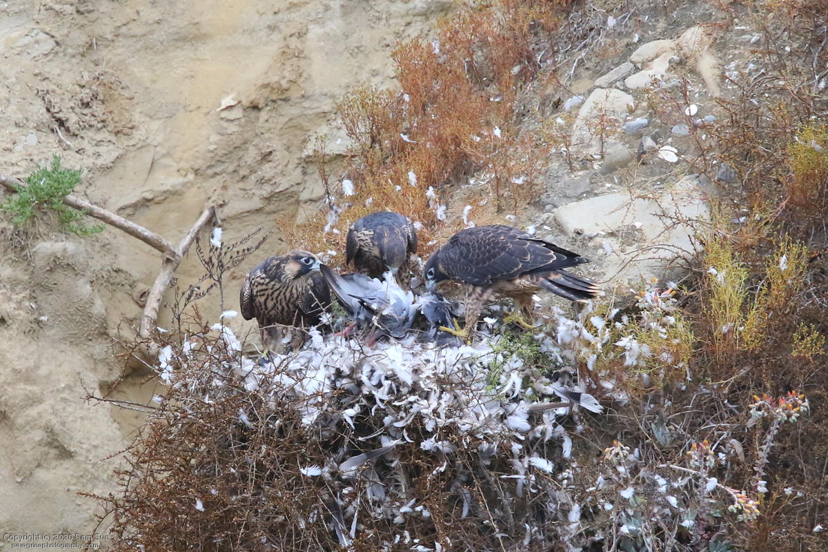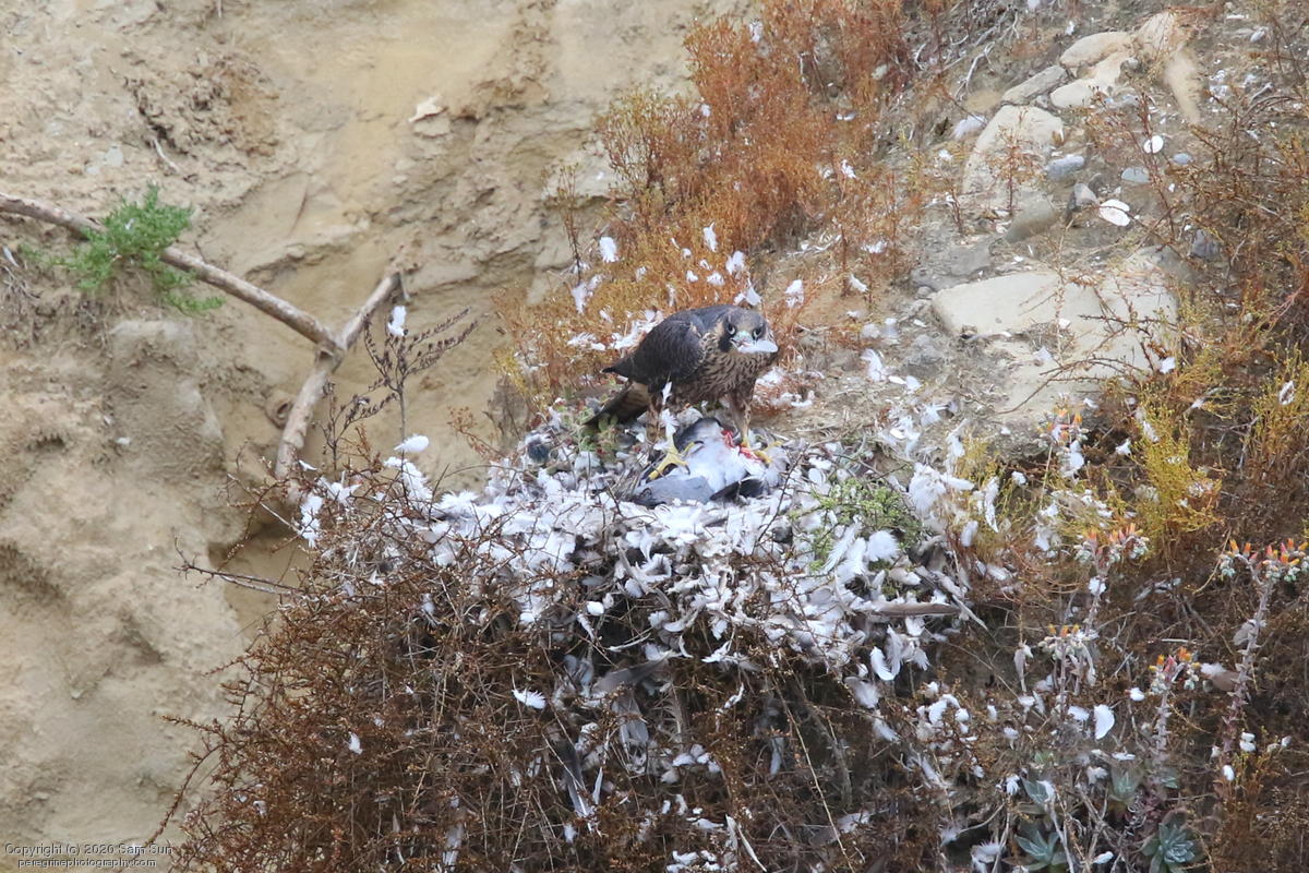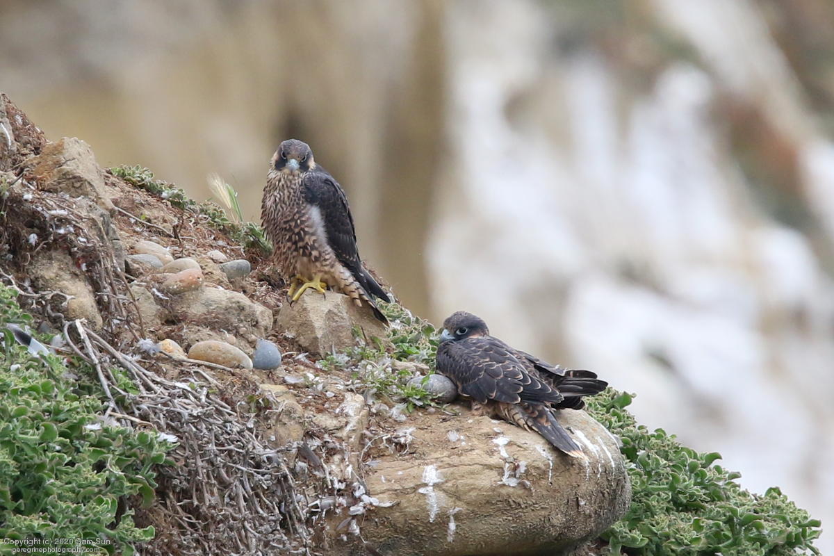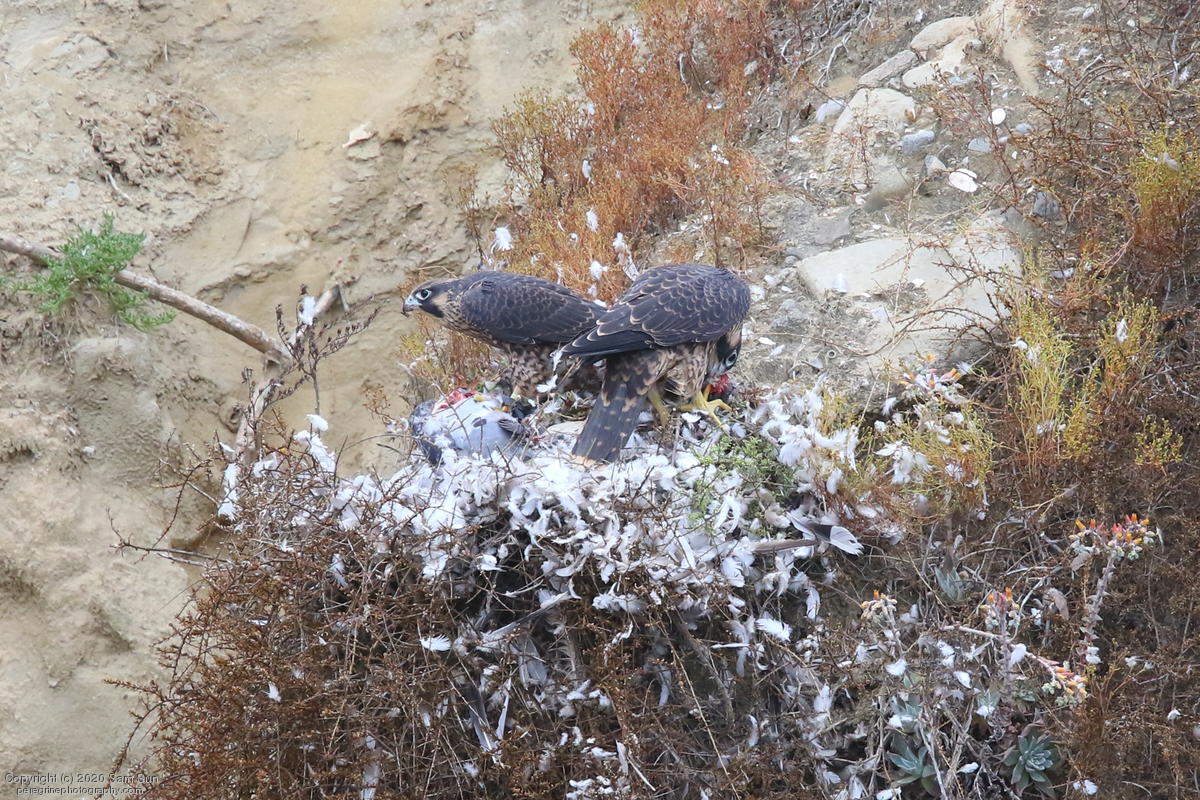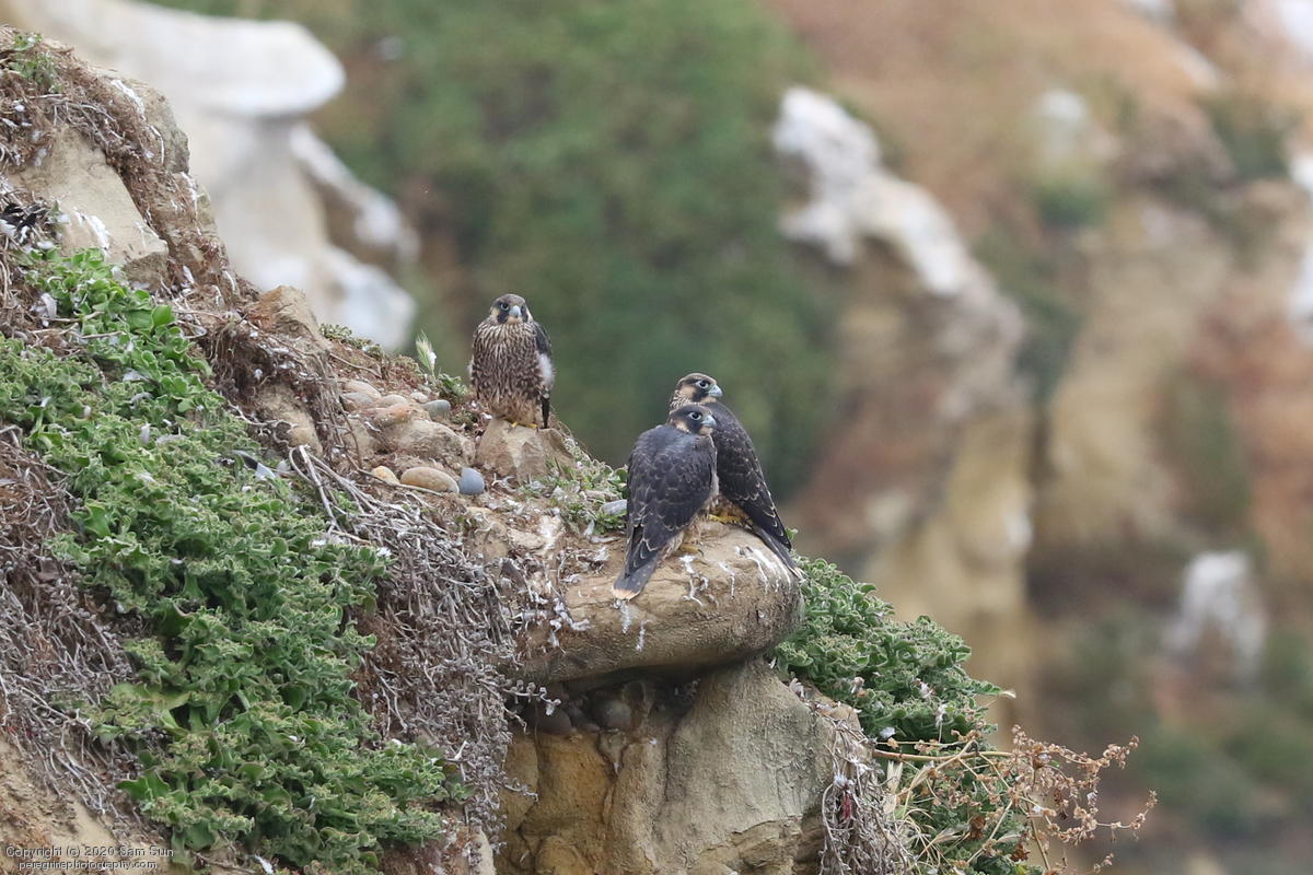 Three chicks at La Jolla have fledged - about 2-3 days ago according to other photographers. They were making some short flights today. The parents made two food deliveries during the afternoon.
