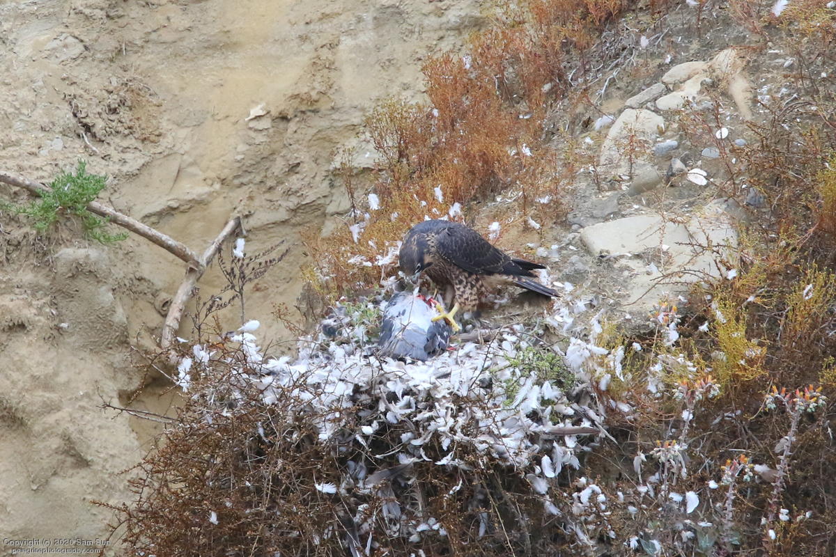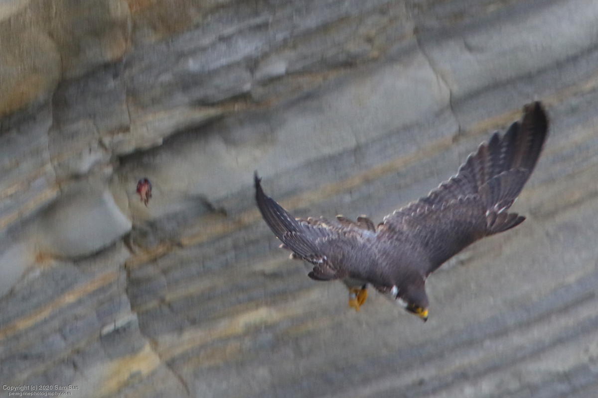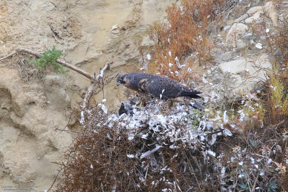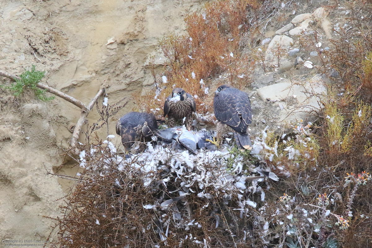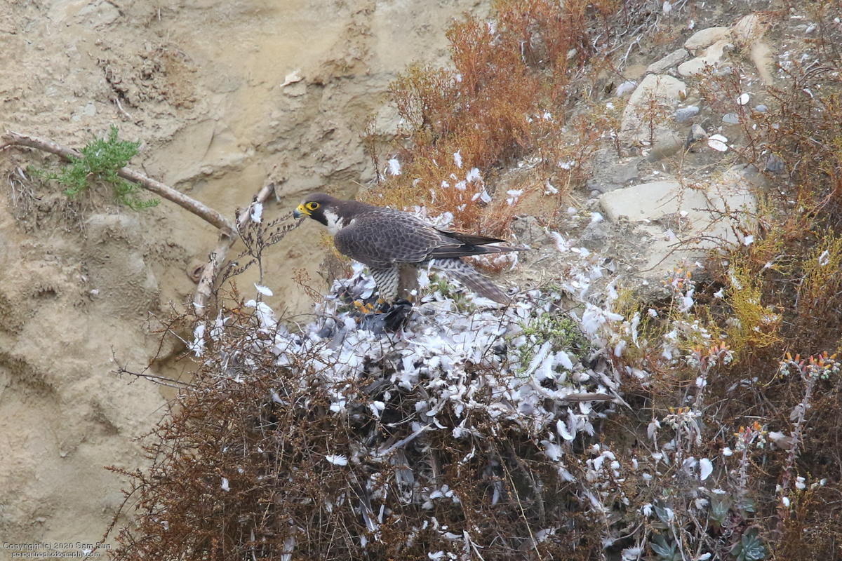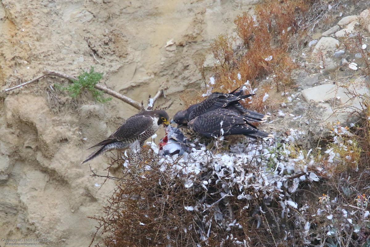 Three chicks at La Jolla have fledged - about 2-3 days ago according to other photographers. They were making some short flights today. The parents made two food deliveries during the afternoon.