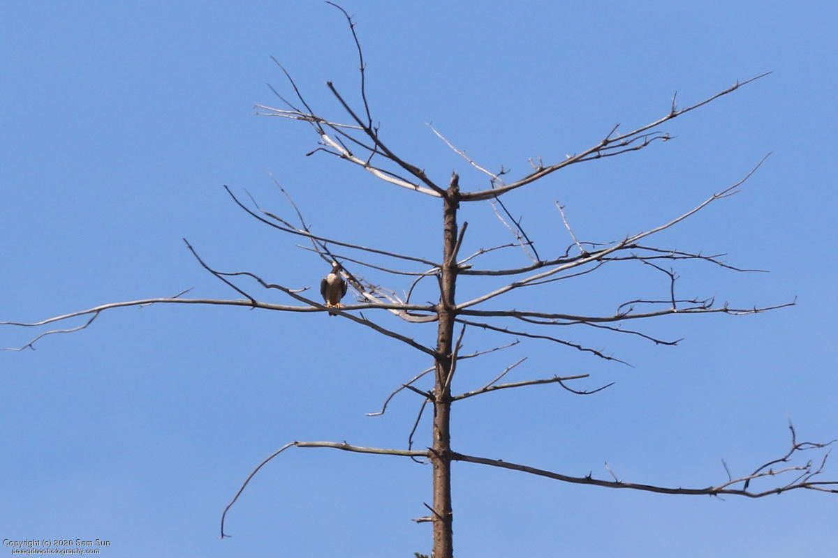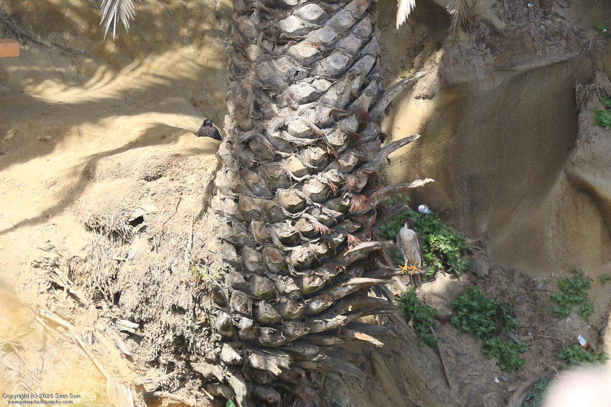 Part of the trail was closed for work so visibility of some perches was limited. The male brought in some food, but the juveniles mostly hid behind a palm tree with it.