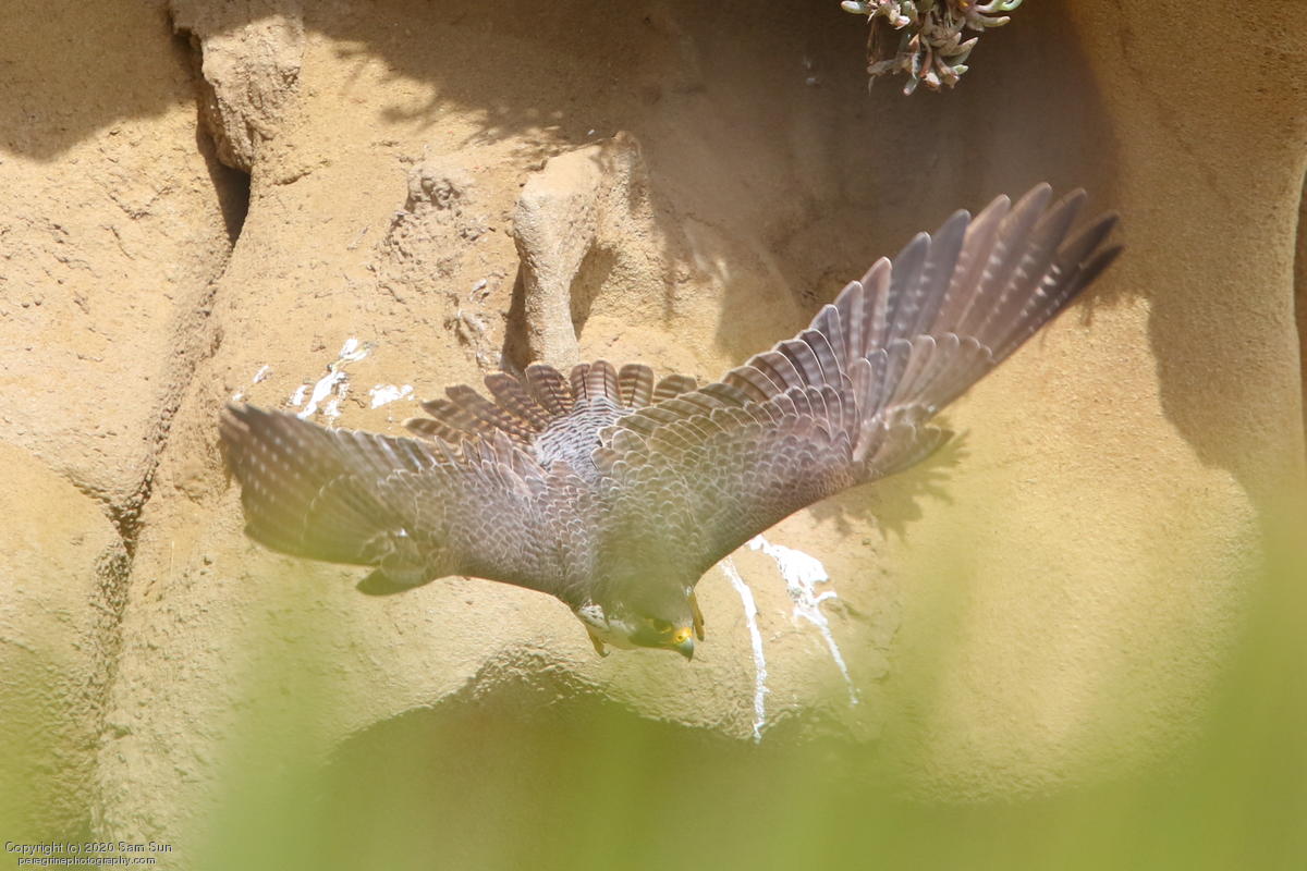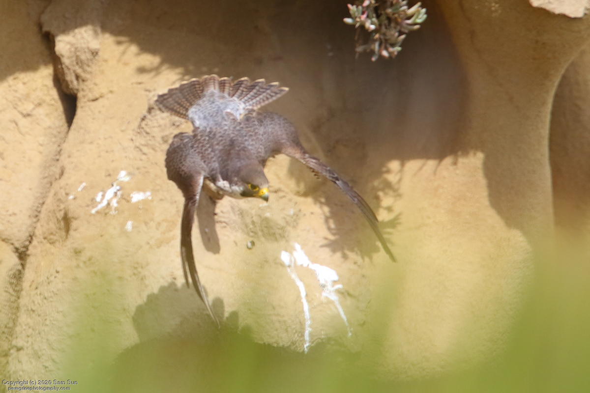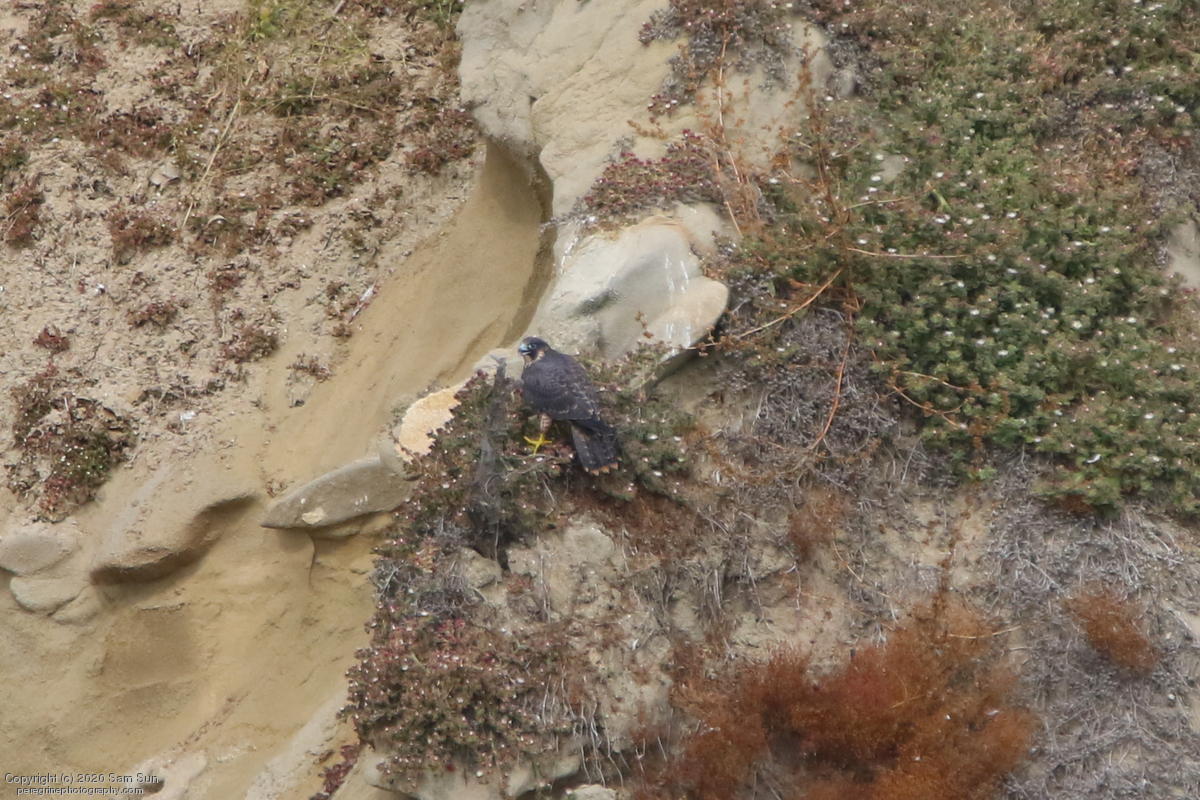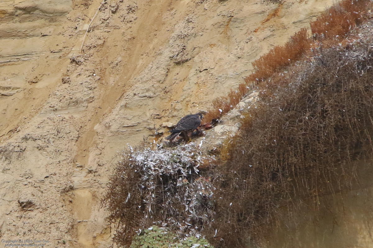 A gloomy and drizzling morning. Two feedings were reported before I got there. The male brought in a third to a low ledge.