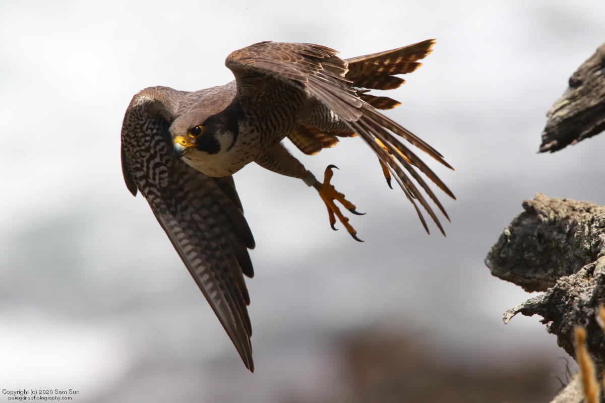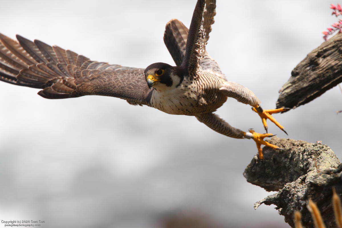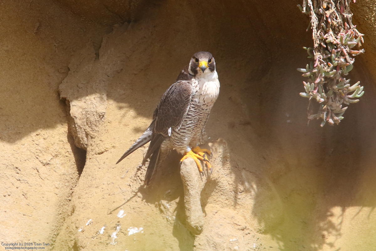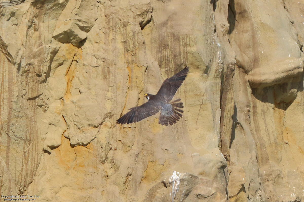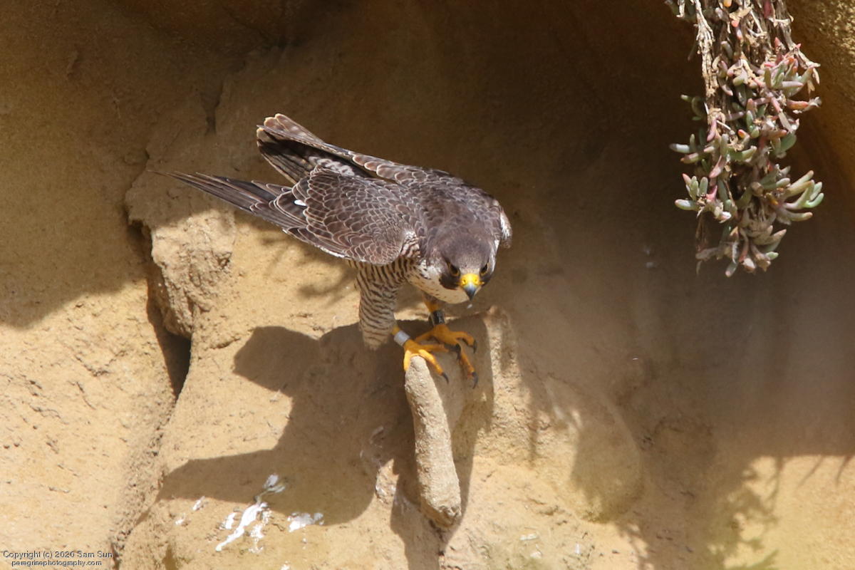 A gloomy and drizzling morning. Two feedings were reported before I got there. The male brought in a third to a low ledge.