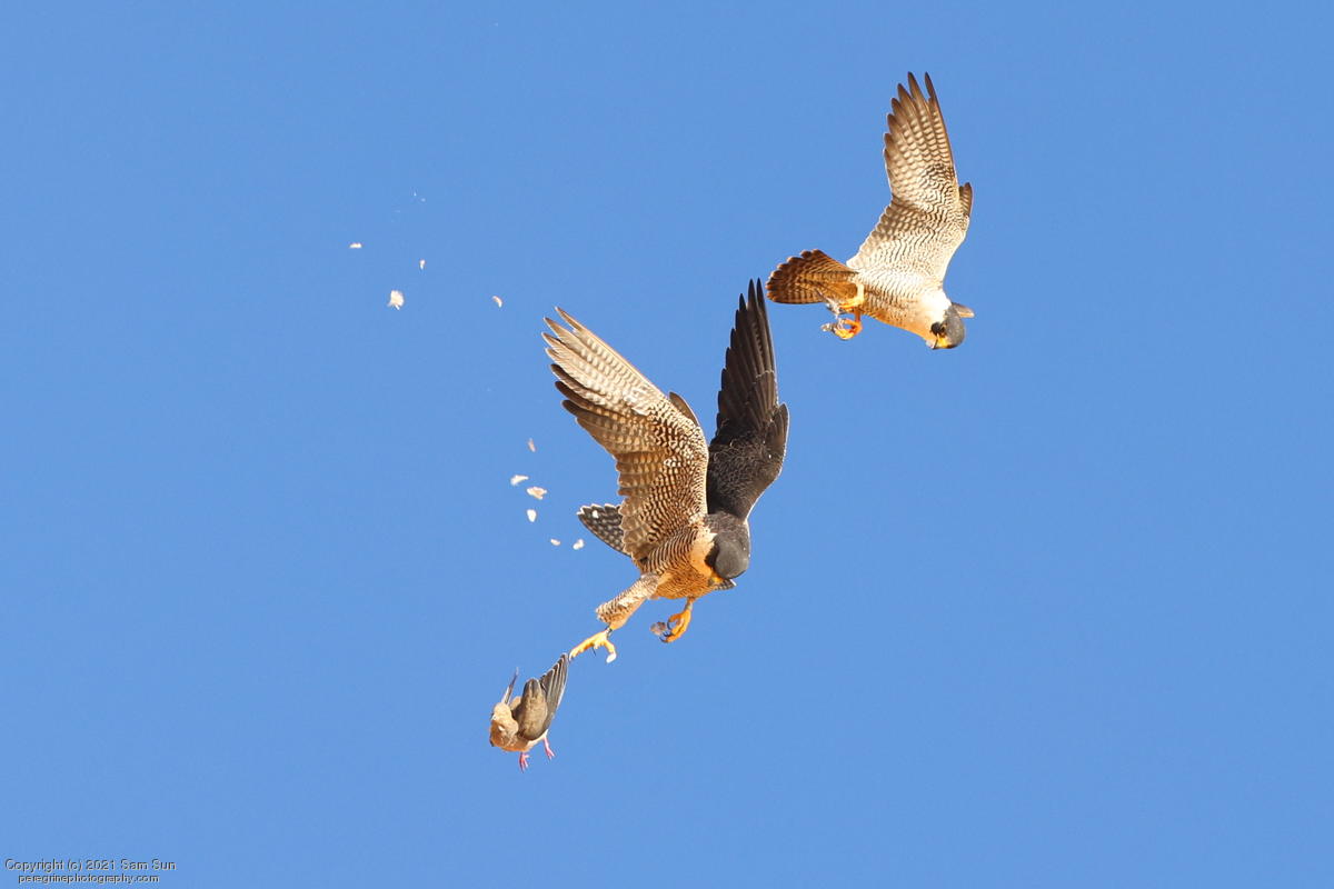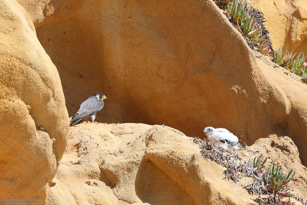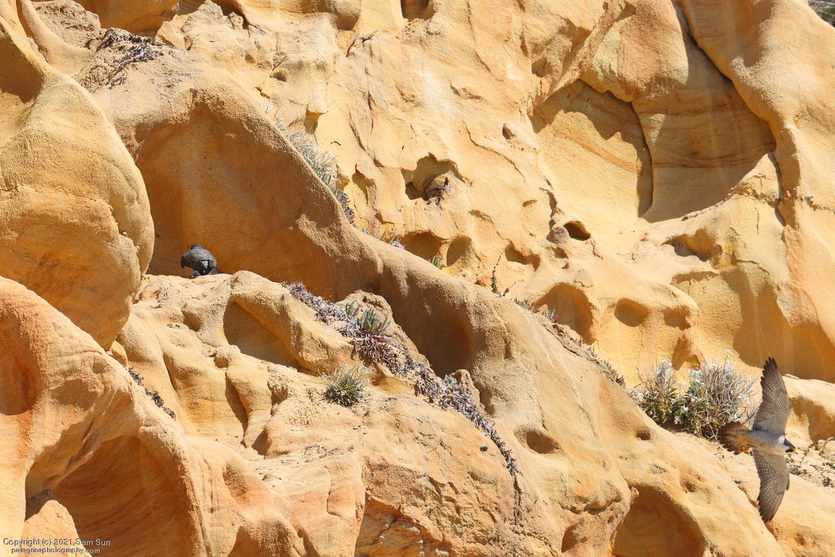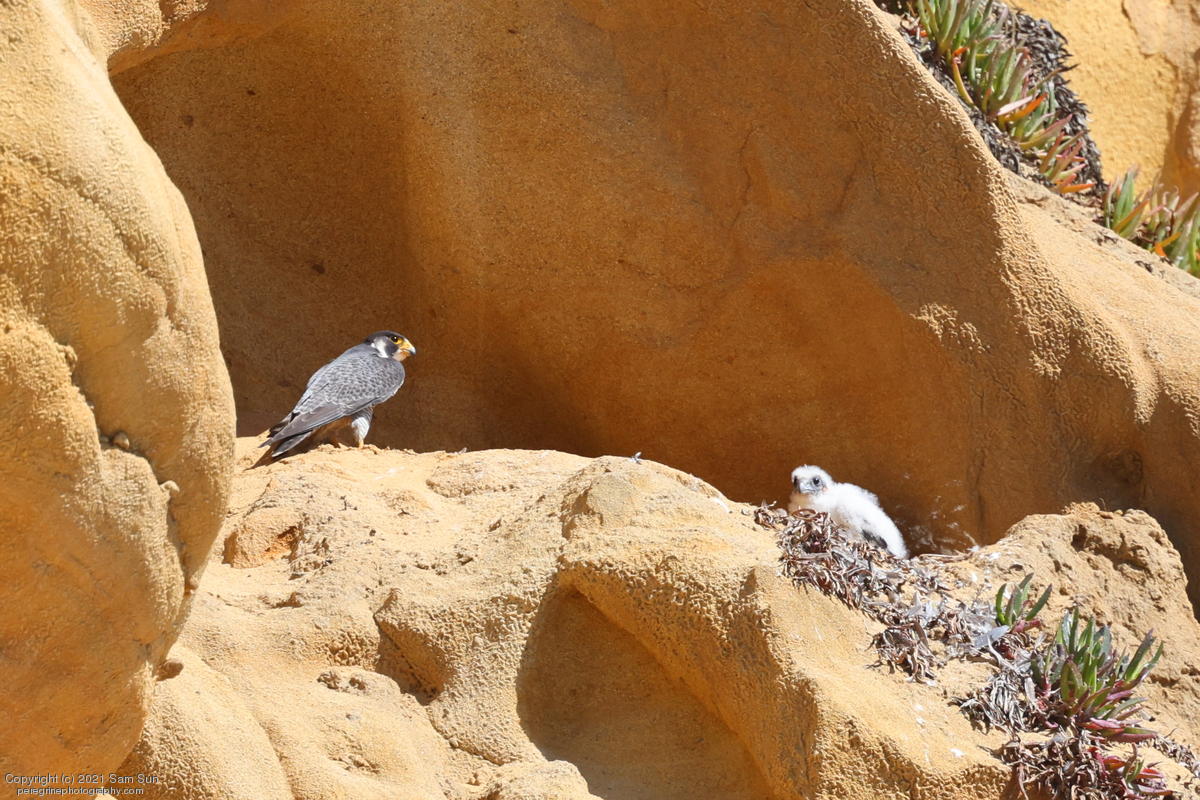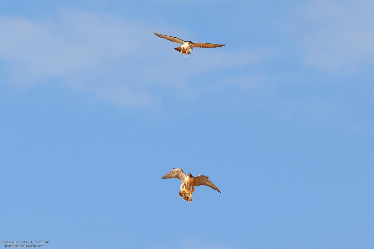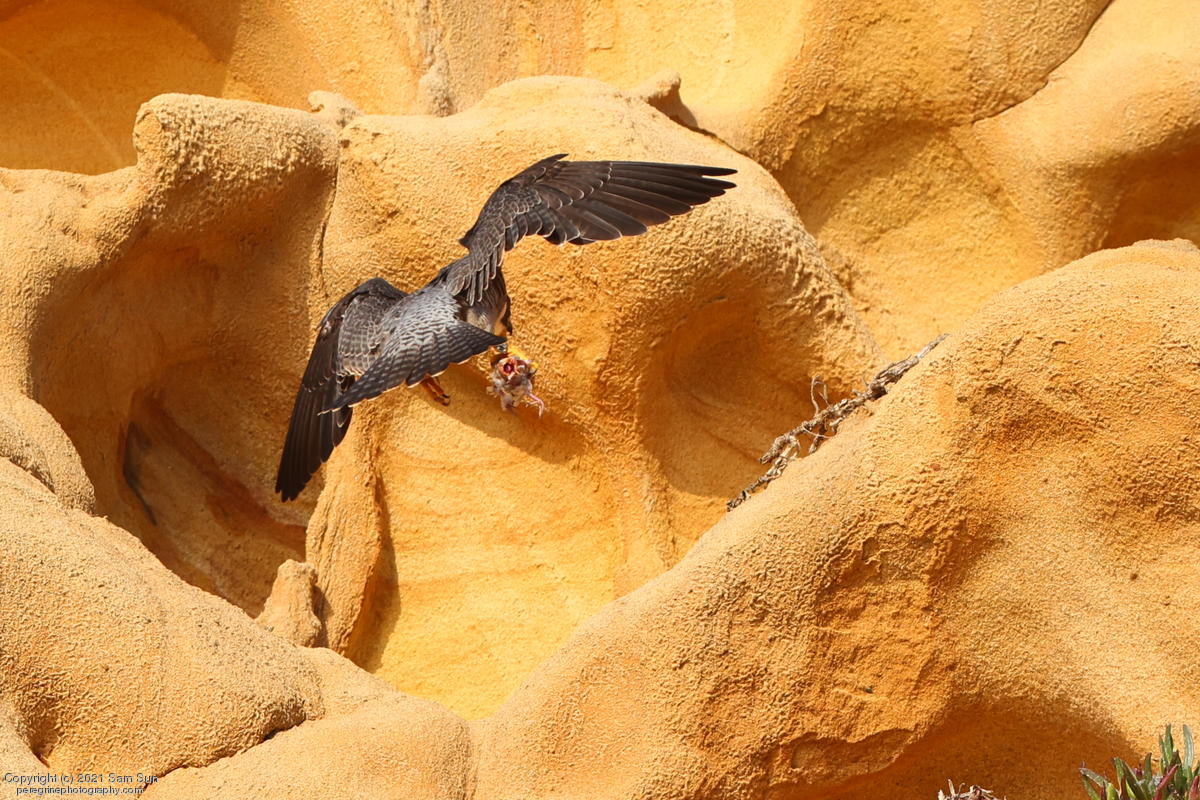 Food exchange sequence. Mom drops the first attempt, and misses grabbing it as it bounces off a cliff ledge. Dad retrieved it (out of the frame, unfortunately) and they did another transfer. Total time elapsed in this sequence - 7 seconds!