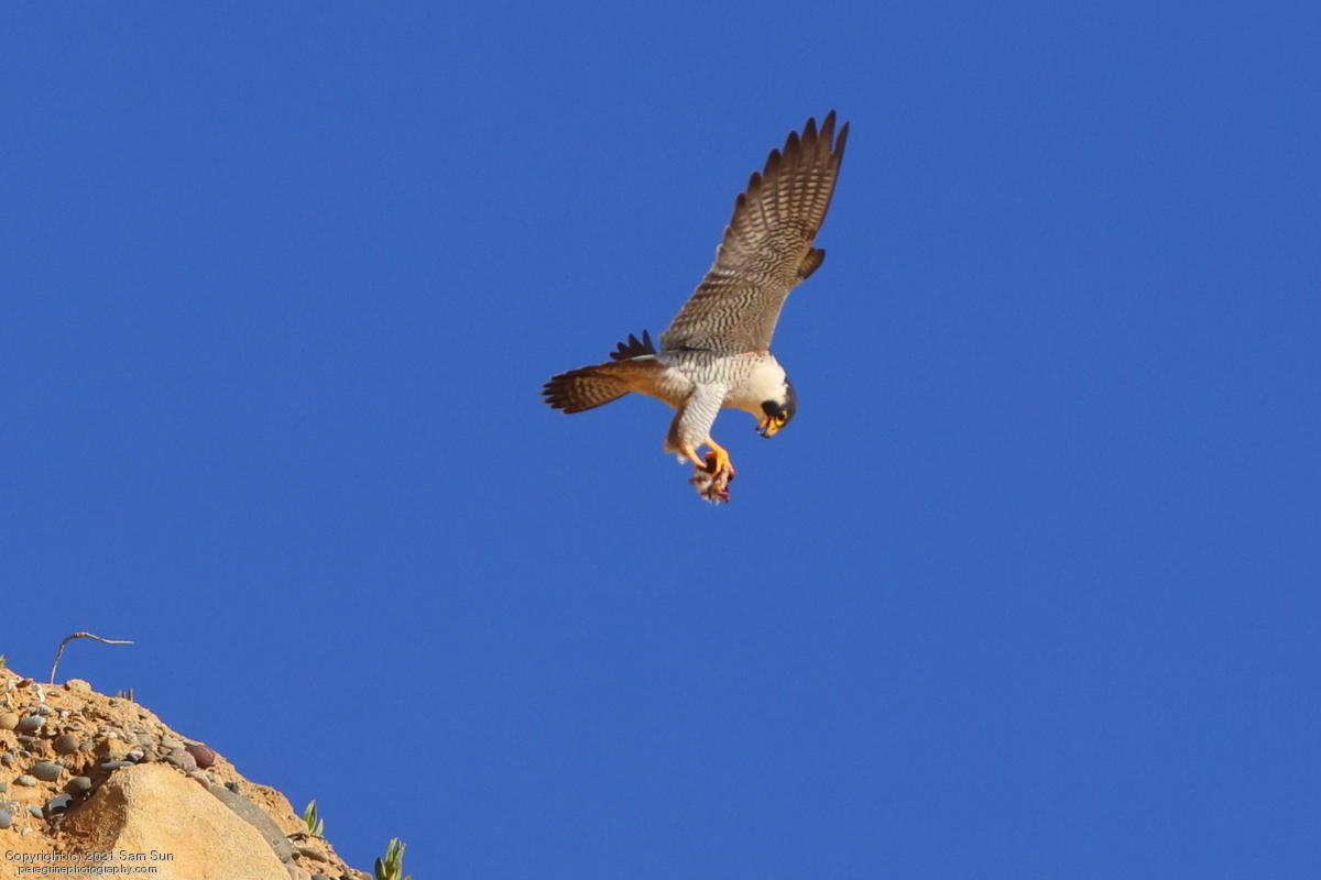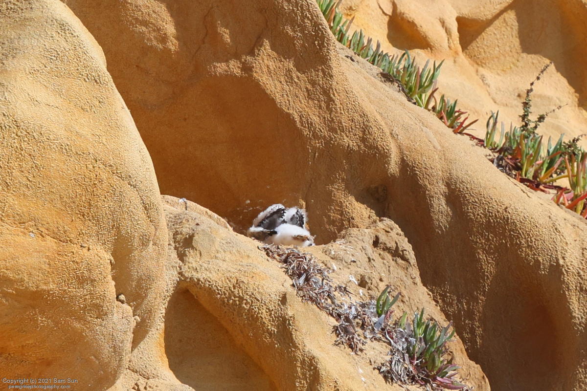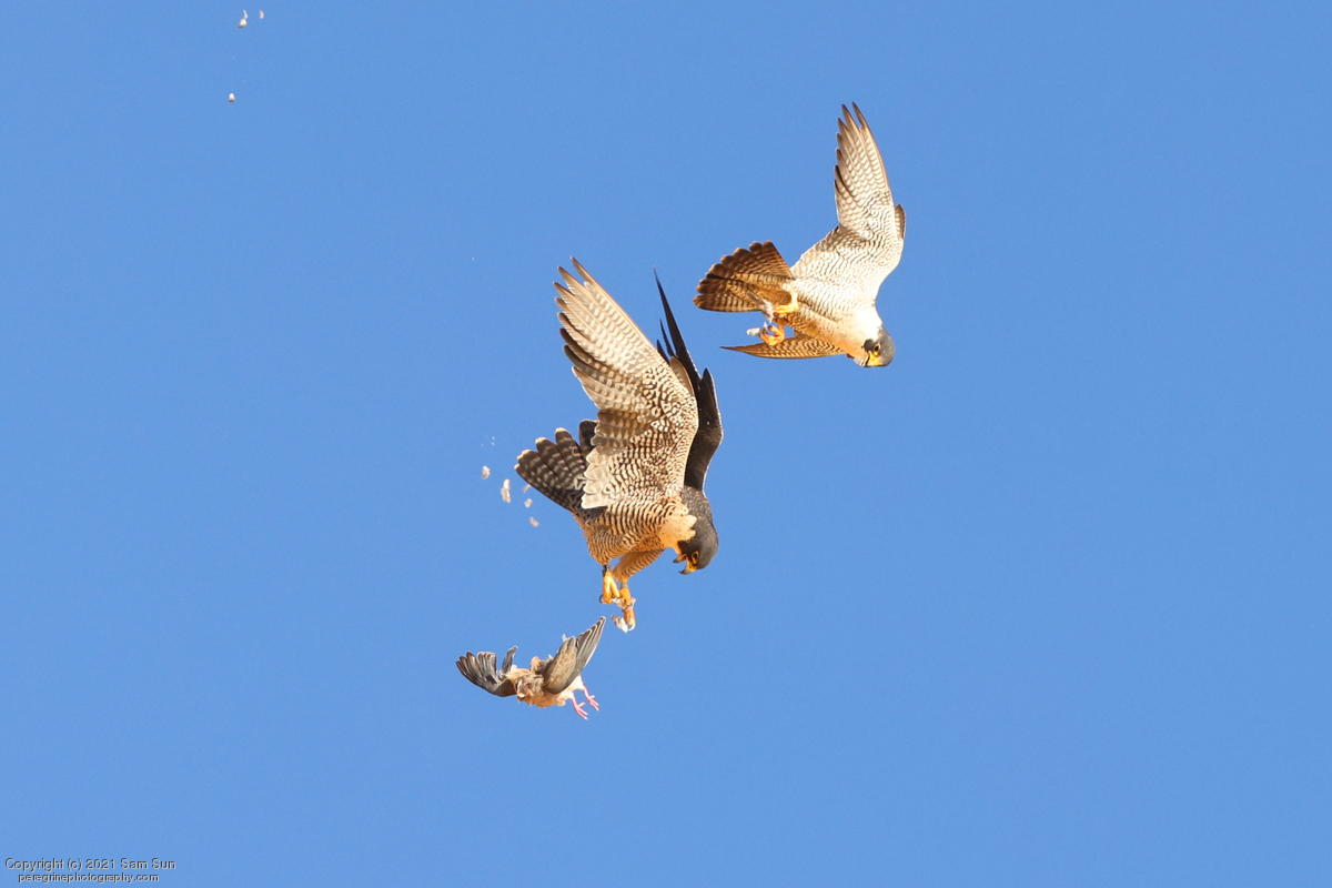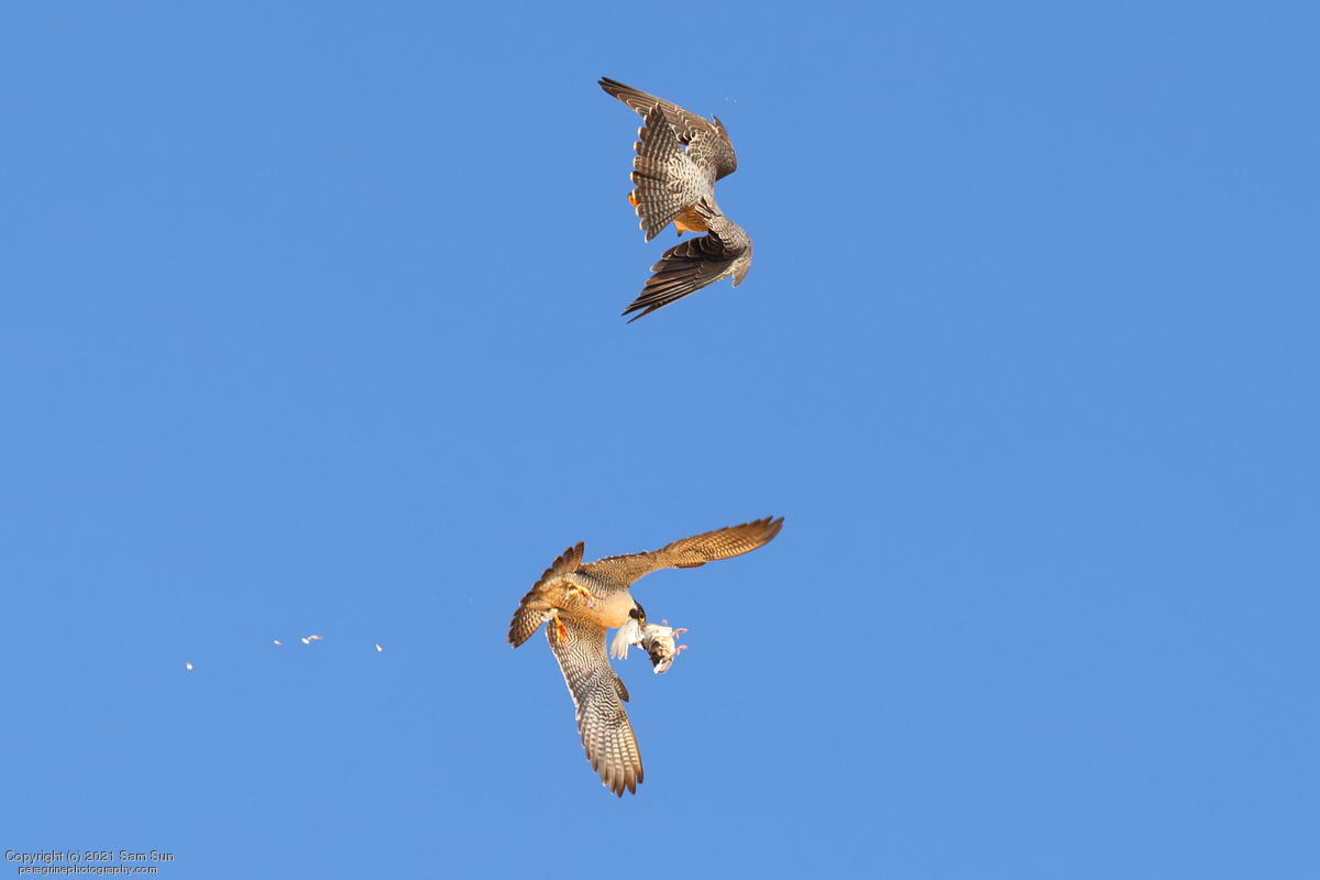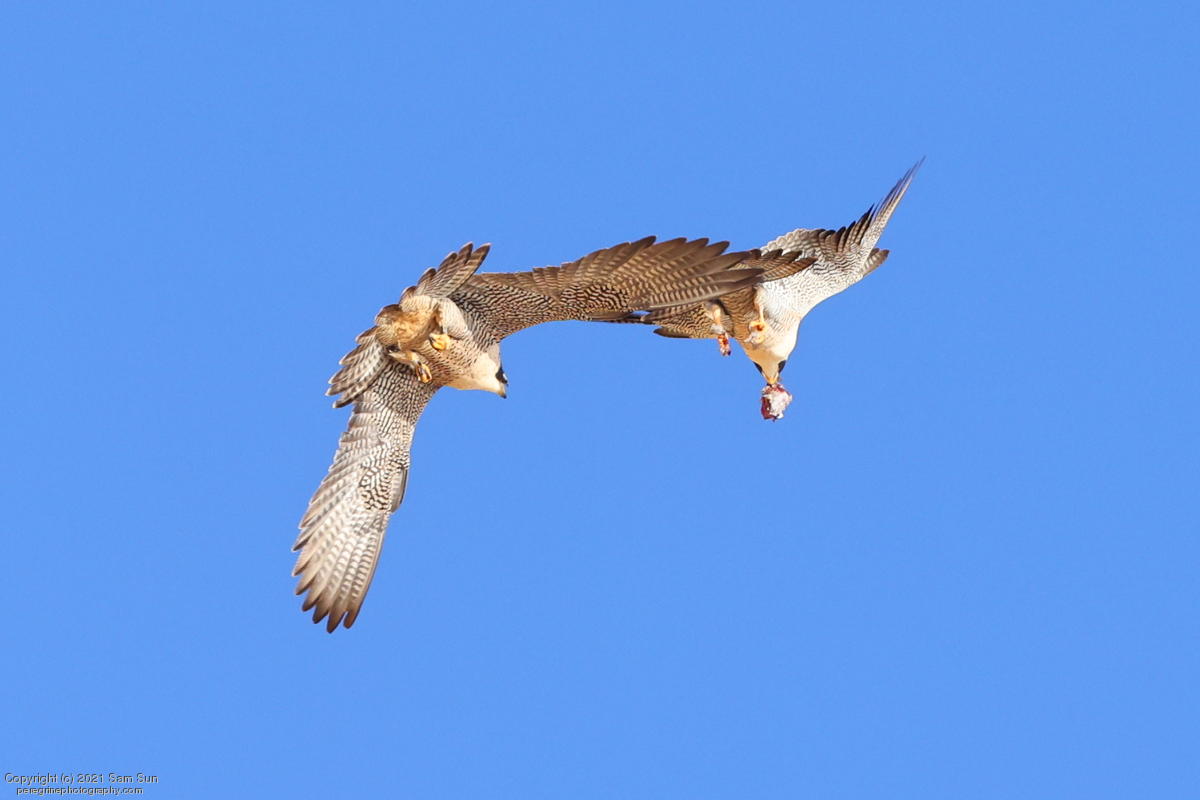 Food exchange sequence. Mom drops the first attempt, and misses grabbing it as it bounces off a cliff ledge. Dad retrieved it (out of the frame, unfortunately) and they did another transfer. Total time elapsed in this sequence - 7 seconds!