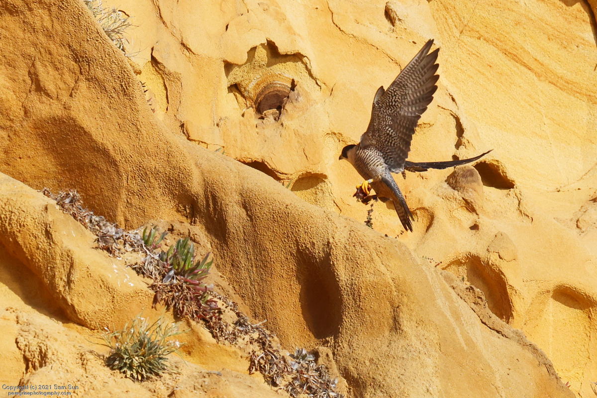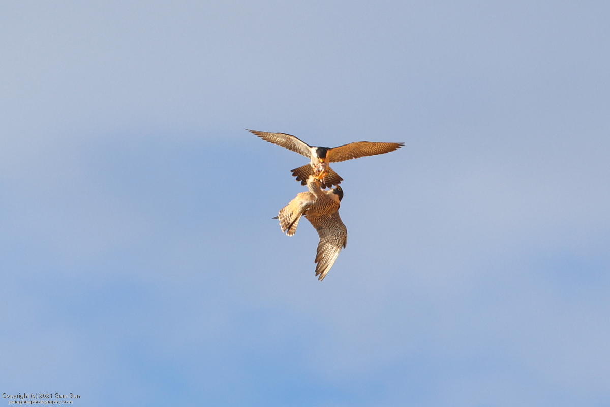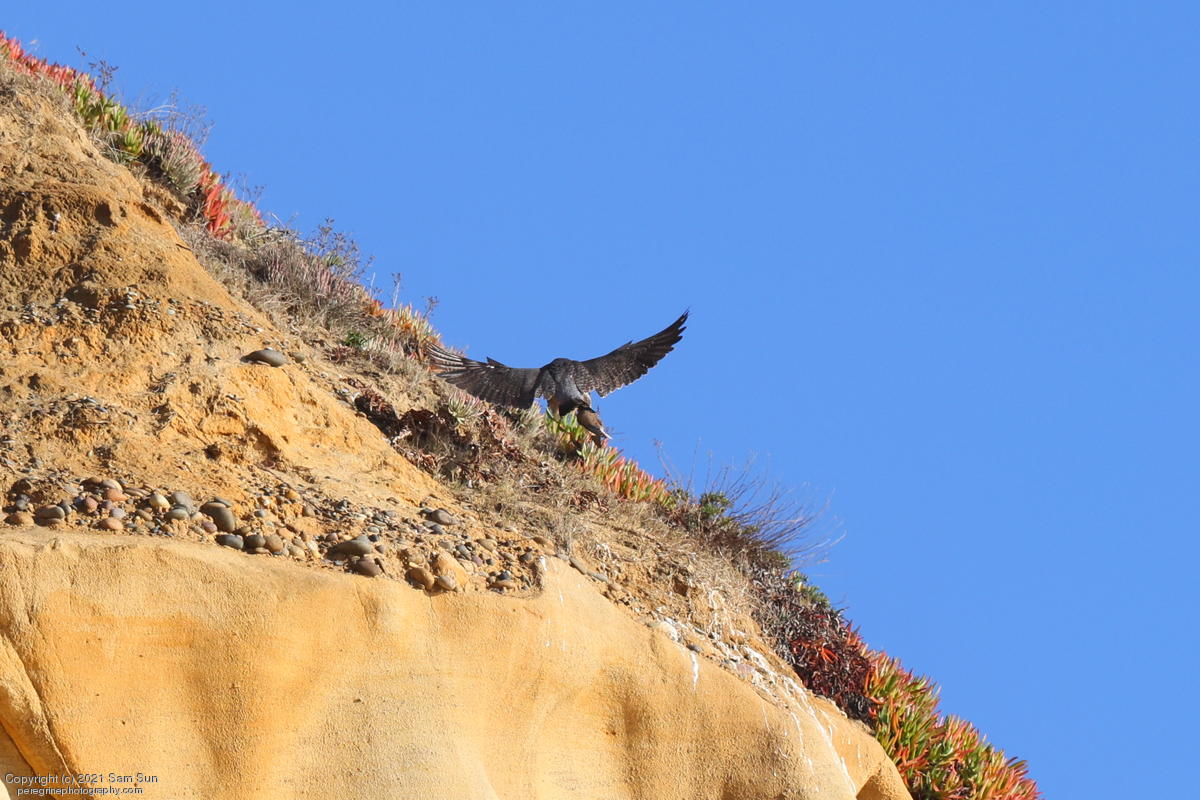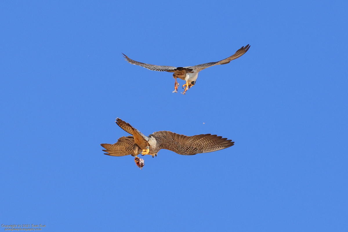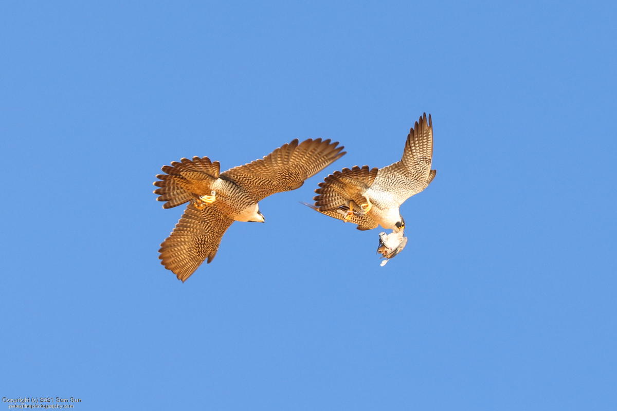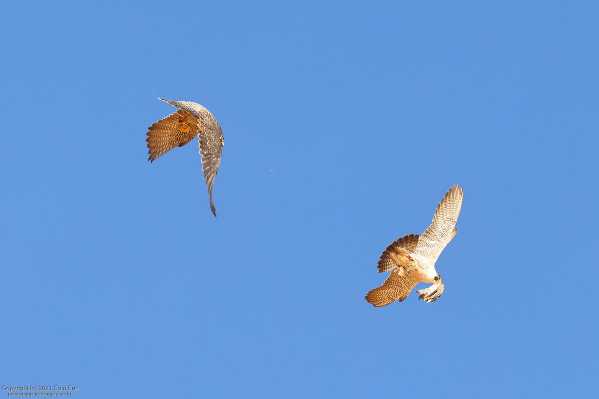Food exchange sequence. Mom drops the first attempt, and misses grabbing it as it bounces off a cliff ledge. Dad retrieved it (out of the frame, unfortunately) and they did another transfer. Total time elapsed in this sequence - 7 seconds!