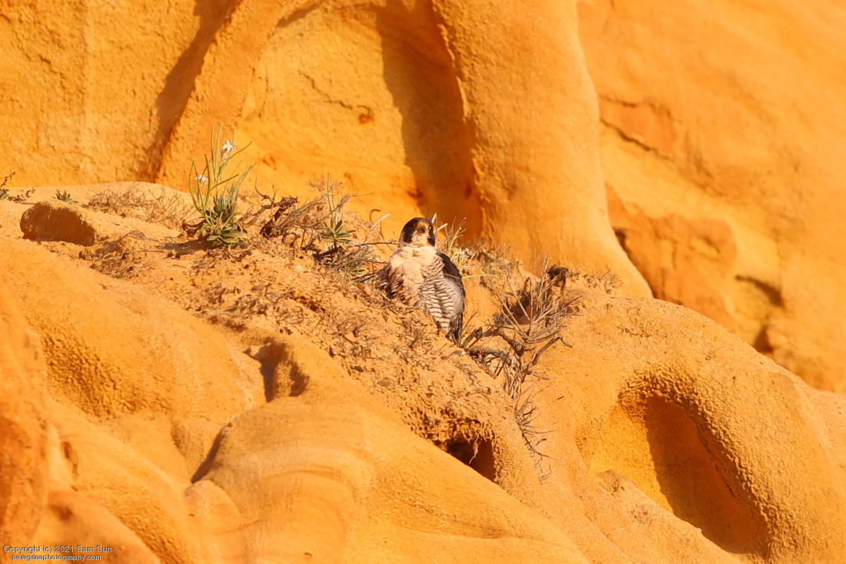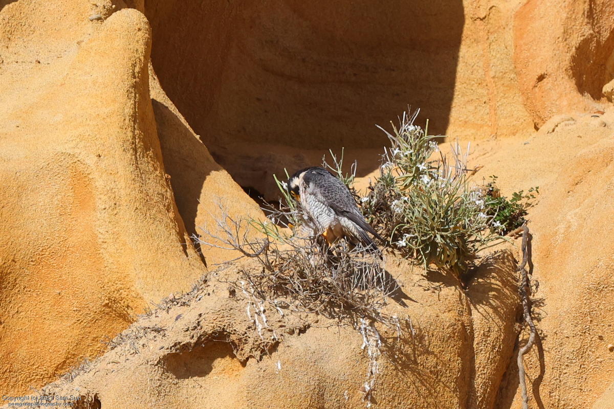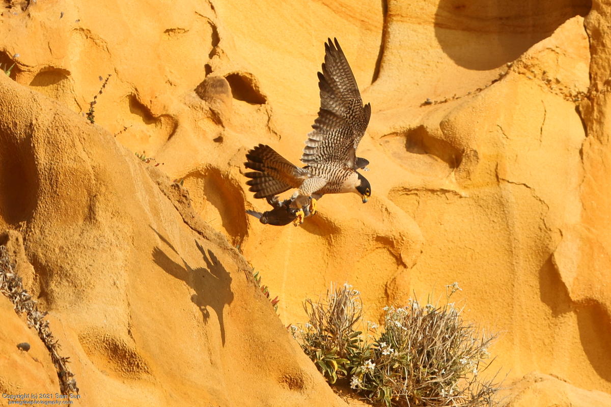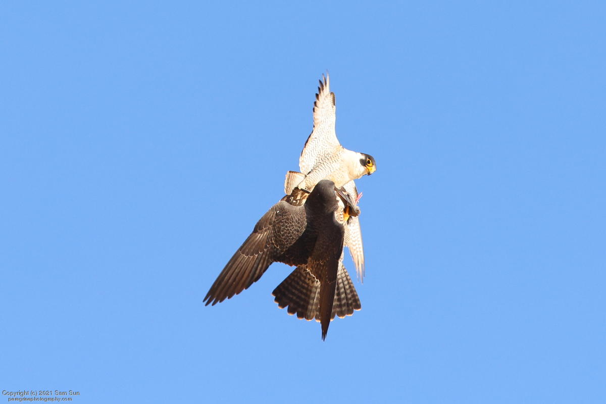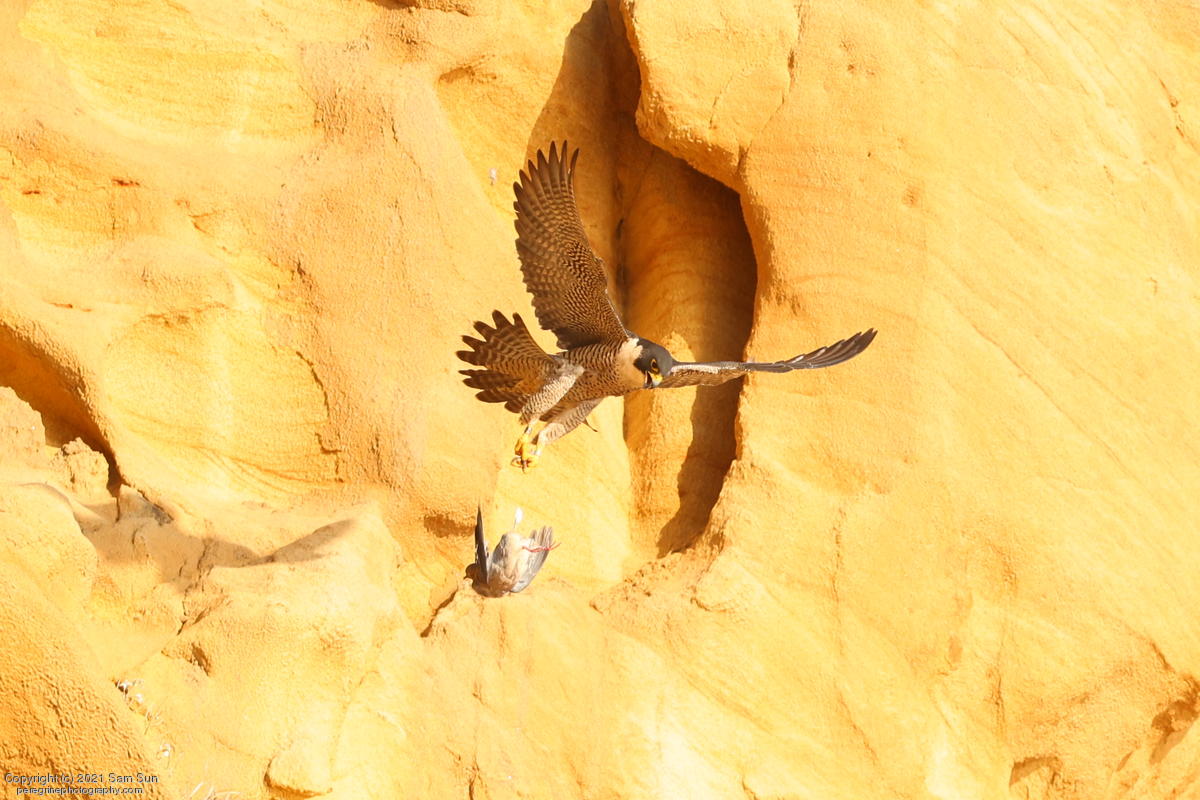 Food exchange sequence. Mom drops the first attempt, and misses grabbing it as it bounces off a cliff ledge. Dad retrieved it (out of the frame, unfortunately) and they did another transfer. Total time elapsed in this sequence - 7 seconds!