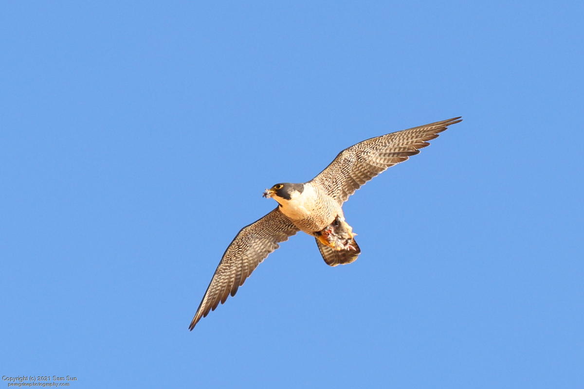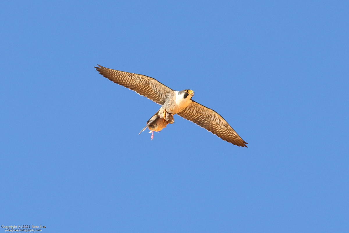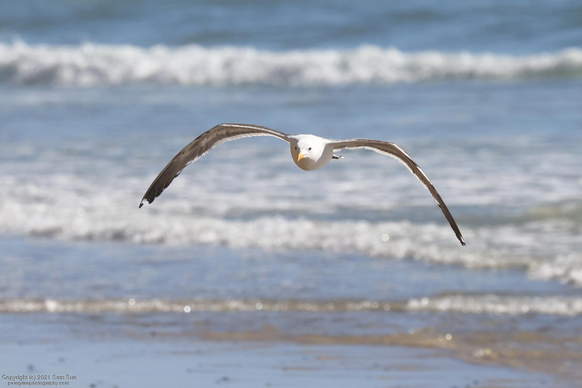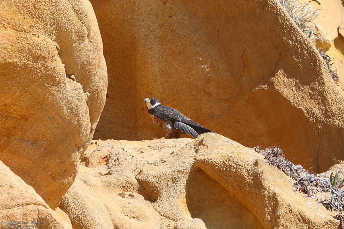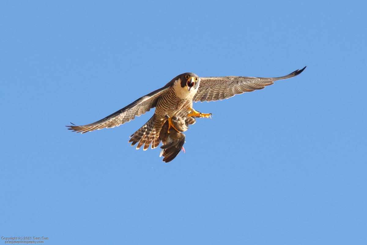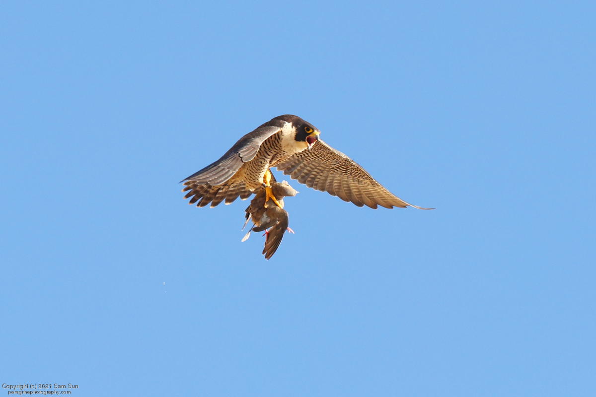 The chick posed for the cameras today separately with Dad and then Mom. There were a couple pelican chases, but the winds were pretty calm and not many came by. Dad brought in food for an exchange at 6:04p. Mom dropped it, and they both dove to recover it. I missed the recovery, but Dad apparently got it off the beach and they did another transfer within seconds.